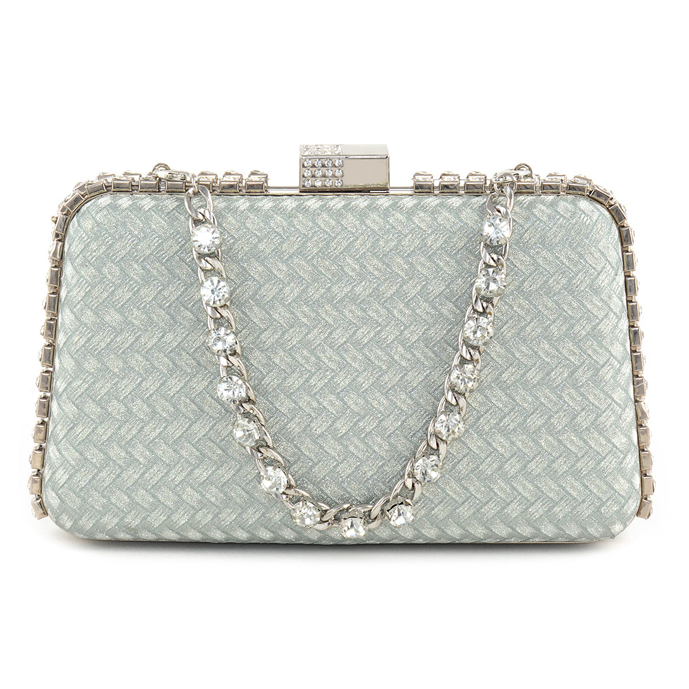 Elevate your evening ensemble with our exquisite party wear clutch, a perfect fusion of style and sophistication. Impeccably crafted with Synthetic Pu, this clutch boasts a luxurious feel and durability that will accompany you through countless celebrations. The generous dimensions of 9 inches in width, 1.5 inches in depth, and 5 inches in height make it a statement piece that effortlessly complements your party attire. Designed for the fashion-forward, the clutch features a chic chain strap, adding a touch of glamour and allowing you to carry it with ease, leaving your hands free for dancing and mingling. The textured surface of the clutch adds a contemporary edge, ensuring you stand out with its unique and eye-catching design. This clutch doesn't just prioritize style; it also offers practicality with a well-organized compartment. Arrive at your next celebration in style, knowing that your ensemble is complete with this textured beauty.