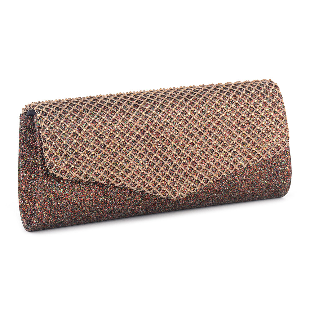Introducing our Synthetic PU clutch, a stunning blend of elegance and practicality. The fabric-lined interior showcases a well-organized compartment, providing compact storage for your essentials. Crafted with precision, this clutch boasts dimensions of 11 inches in width, 1 inch in depth, and 4.2 inches in height. The mesmerizing Rhine Stones mesh feature adds a touch of glamour, creating the perfect fusion of style and sophistication. Elevate your ensemble effortlessly with this chic clutch, where every detail is thoughtfully designed to enhance your fashion experience. Immerse yourself in the ideal accessory that seamlessly combines flair and functionality.