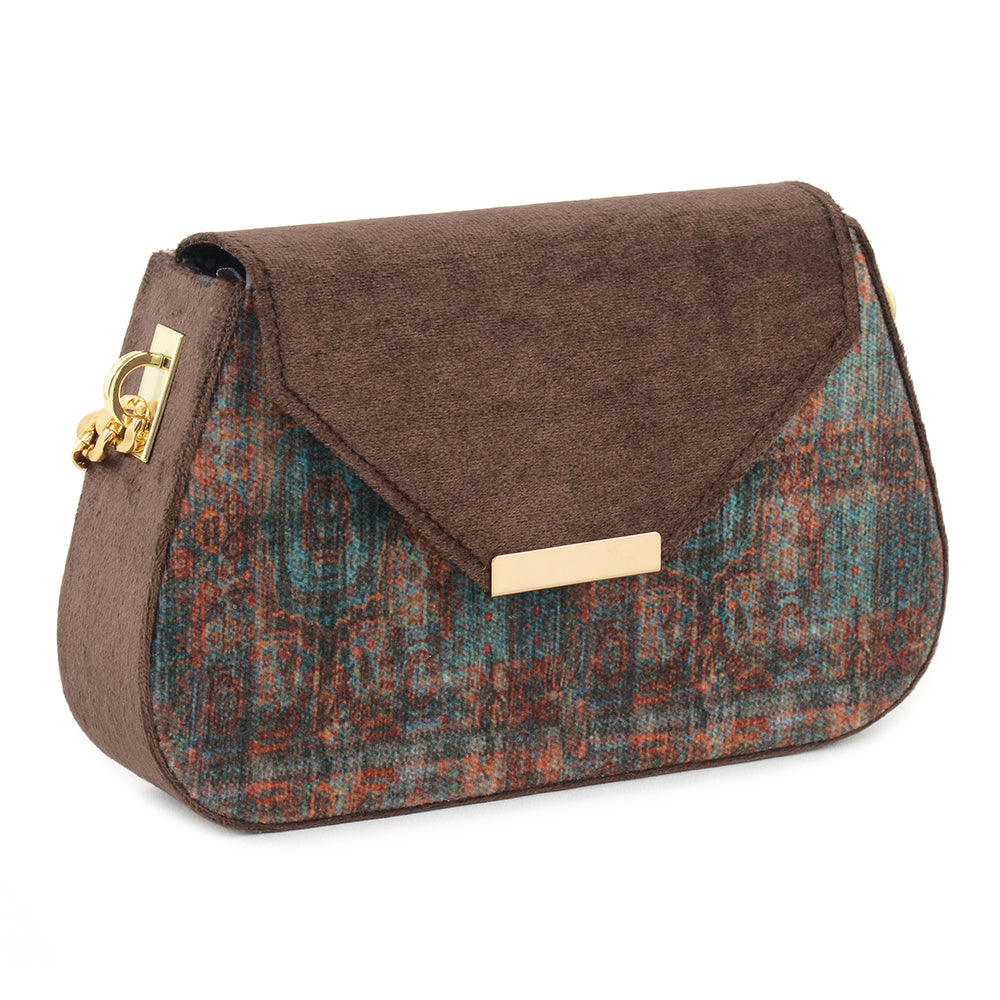 Introducing the "Velvet Print Silky Chain Clutch" – a luxurious and stylish accessory designed to make a statement. Crafted from plush velvet and lined with soft textile, this clutch features a unique printed design that adds an element of charm and personality. The silky finish enhances its elegance, while the convenient magnet fastening ensures easy access to your belongings. With a width of 9 inches, a depth of 2.5 inches, and a height of 6 inches, it offers ample space in a single compartment to hold your essentials. The chic chain strap adds a touch of sophistication, making it perfect for special occasions and evenings out. Elevate your look with the Velvet Print Silky Chain Clutch, a standout piece for your wardrobe.
