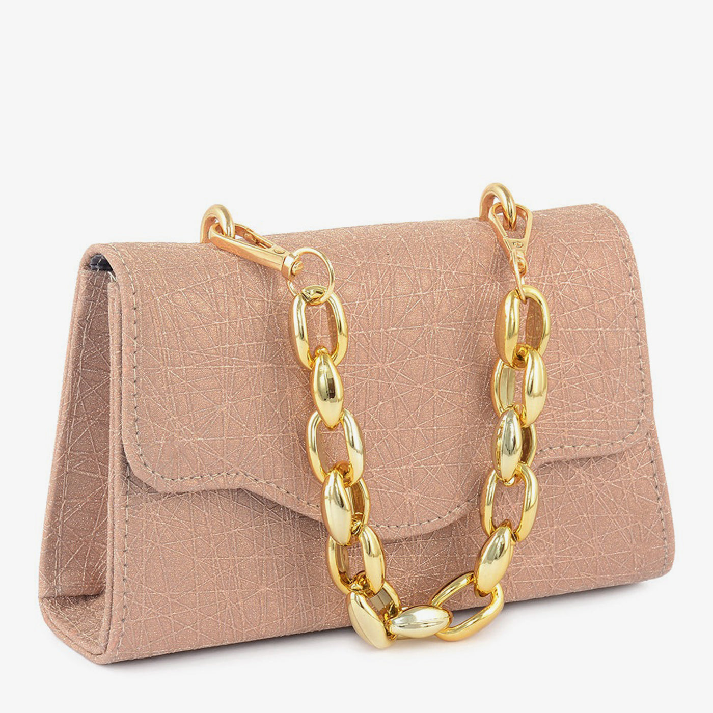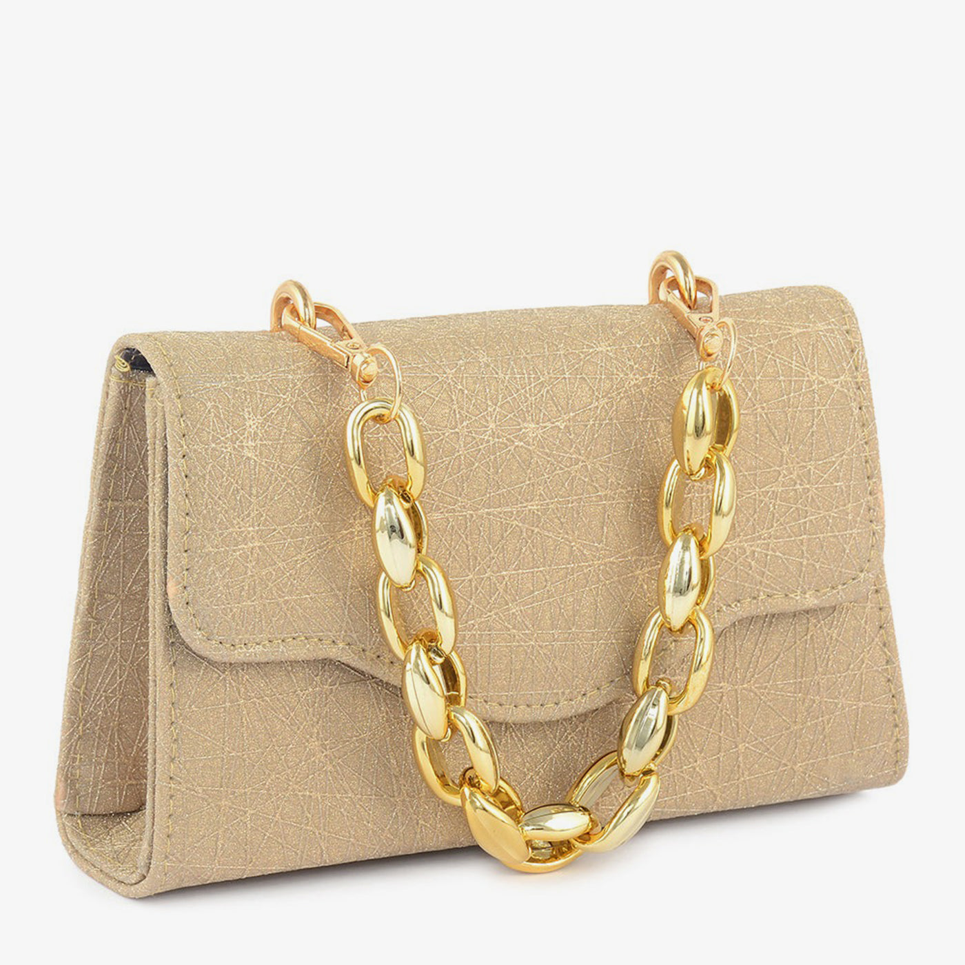 Styling Tip: Carry this with a sleek jumpsuit or a tailored dress for a contemporary and polished look. The gold chain complements both warm and cool tones.