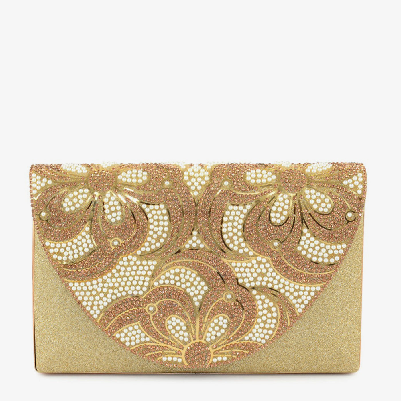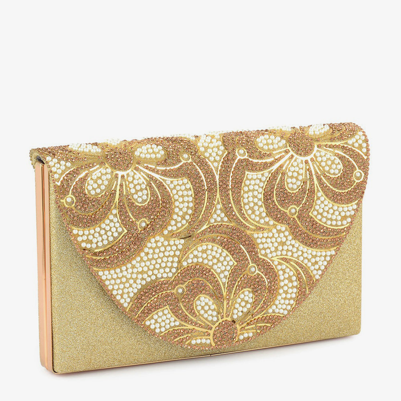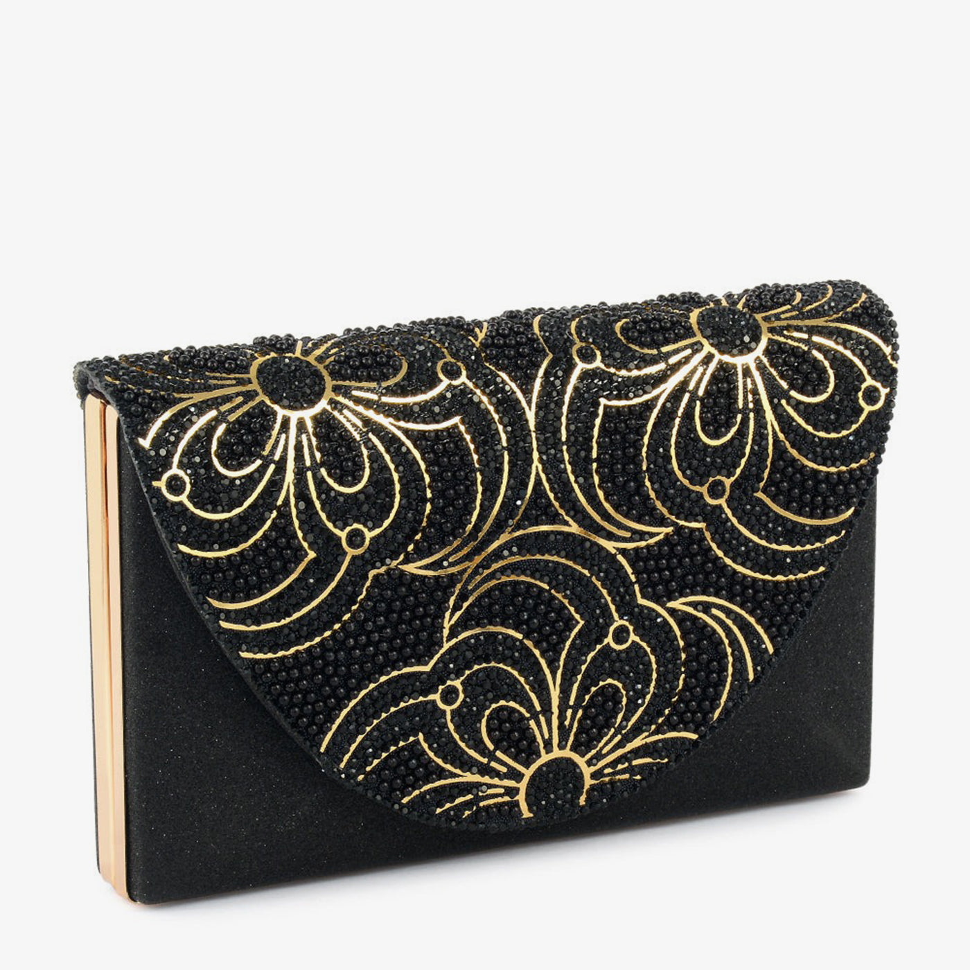 Introducing the Spark Stone Clutch – a dazzling accessory crafted to make a lasting impression. Made from high-quality textile and adorned with elegant stone detailing, this clutch is finished with a glittery texture, adding just the right amount of shimmer. With a sleek profile, it measures 13 cm in height, 20 cm in width, and 2.5 cm in depth, making it perfect for holding essentials in style. The fixed strap provides easy carrying, ideal for evening events and special occasions.