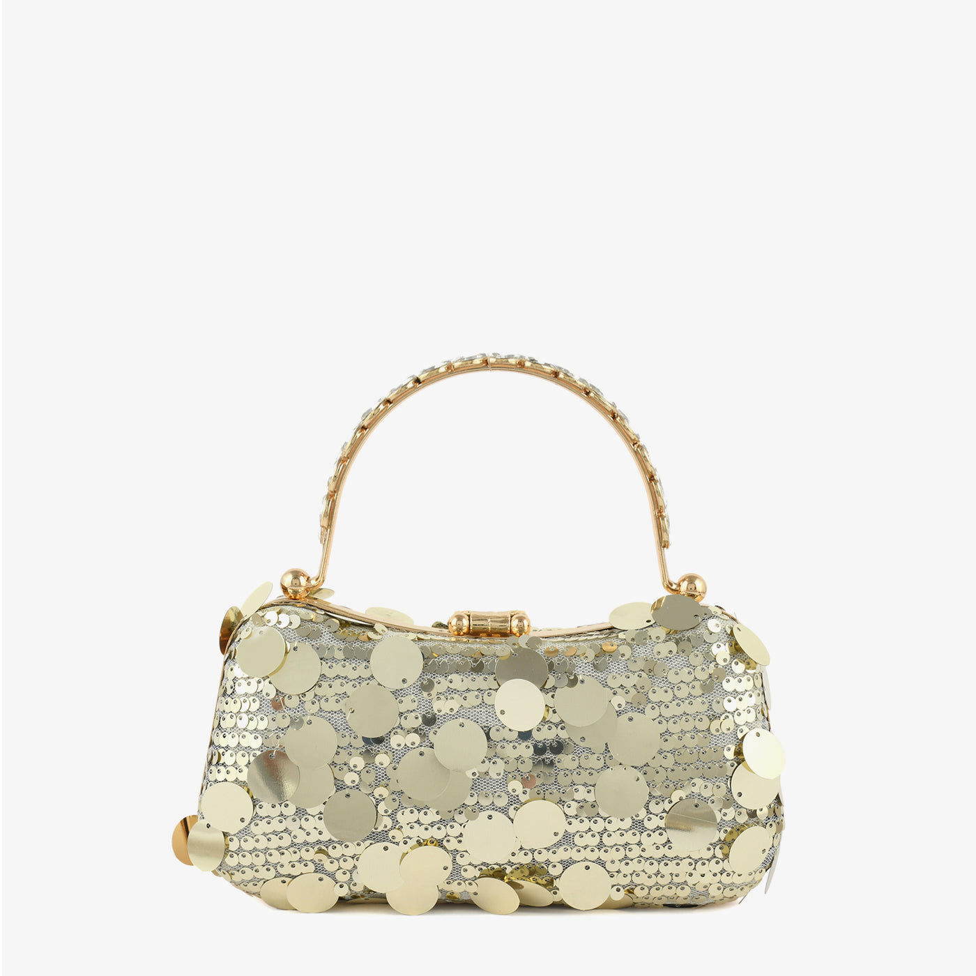 An exquisite clutch designed to dazzle with its sequin-studded surface and metallic clasp. Its sleek frame makes it the perfect companion for formal gatherings and celebrations. A timeless design that balances elegance with modern flair.