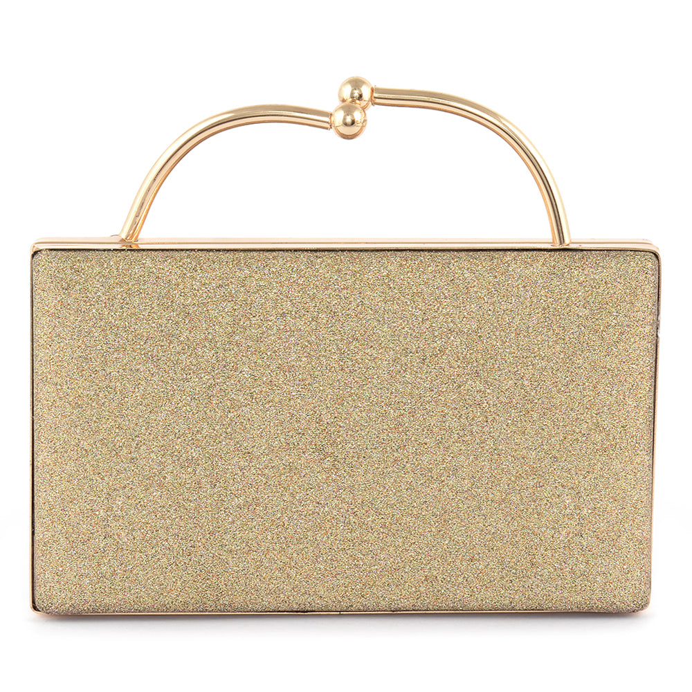 Sleek and radiant, the Orlina Spark Clutch is a modern statement piece crafted with a full glitter finish in a multitone shimmer. The slim rectangular silhouette is paired with a curved gold-tone handle, offering both structure and style for evening events or festive outings.