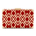Make a striking statement with the Vierra Geo Clutch, featuring a bold red velvet base accented by a symmetrical gold geometric overlay. This sleek and structured clutch exudes...