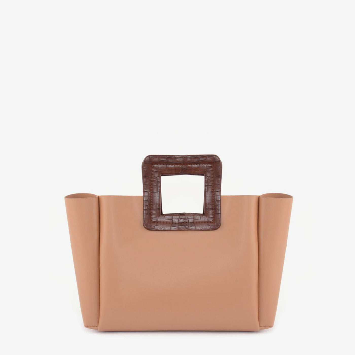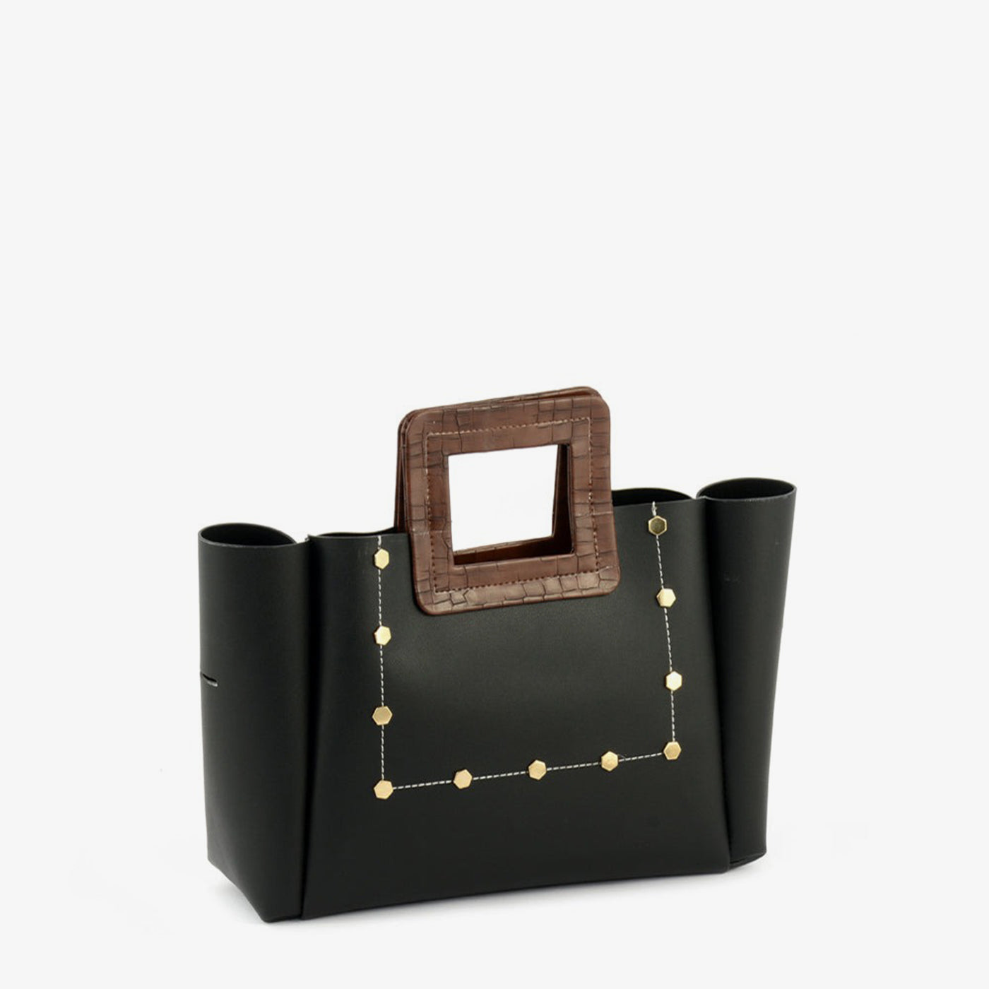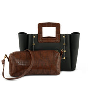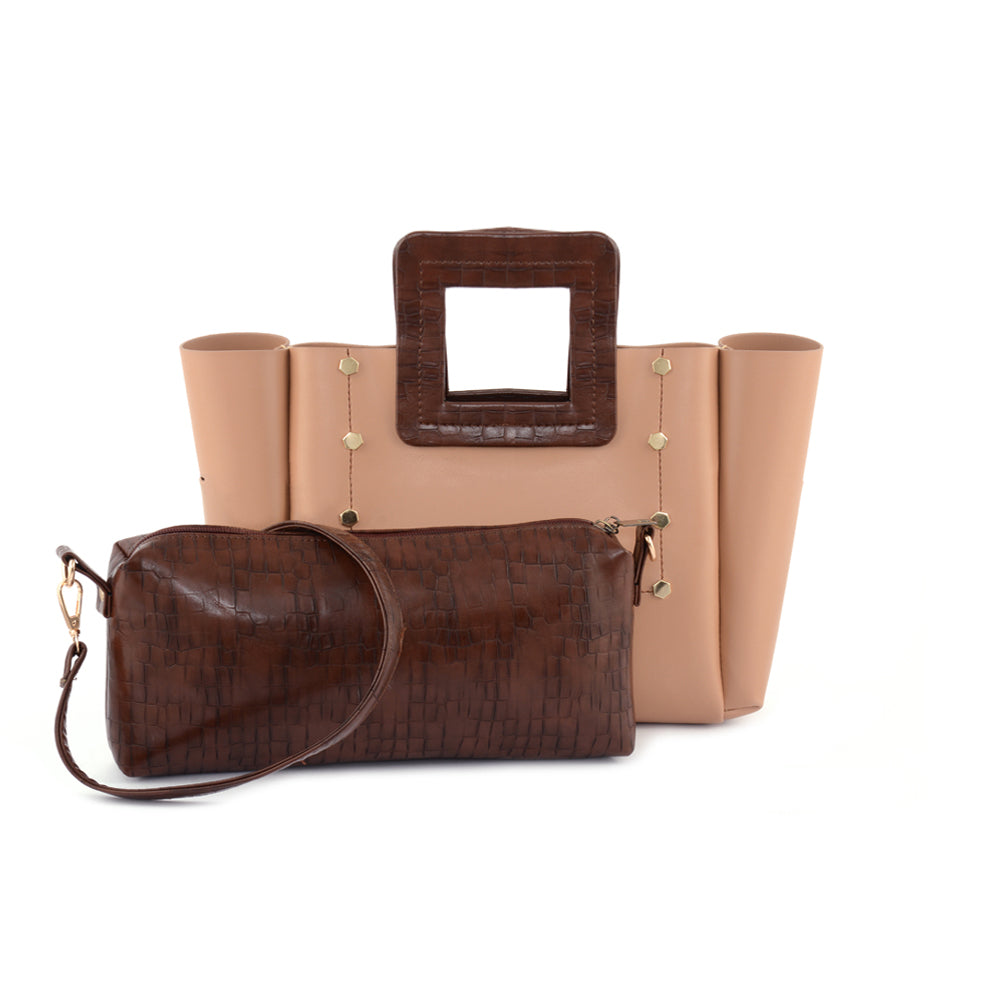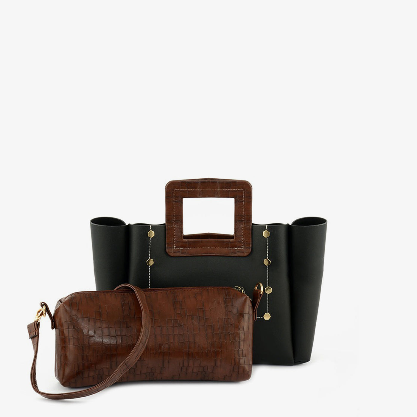 A two-in-one stunner, this set includes a sculptural tote with a matching pouch—both practical and fashion-forward. The squared handle adds an architectural edge to your daily wardrobe.