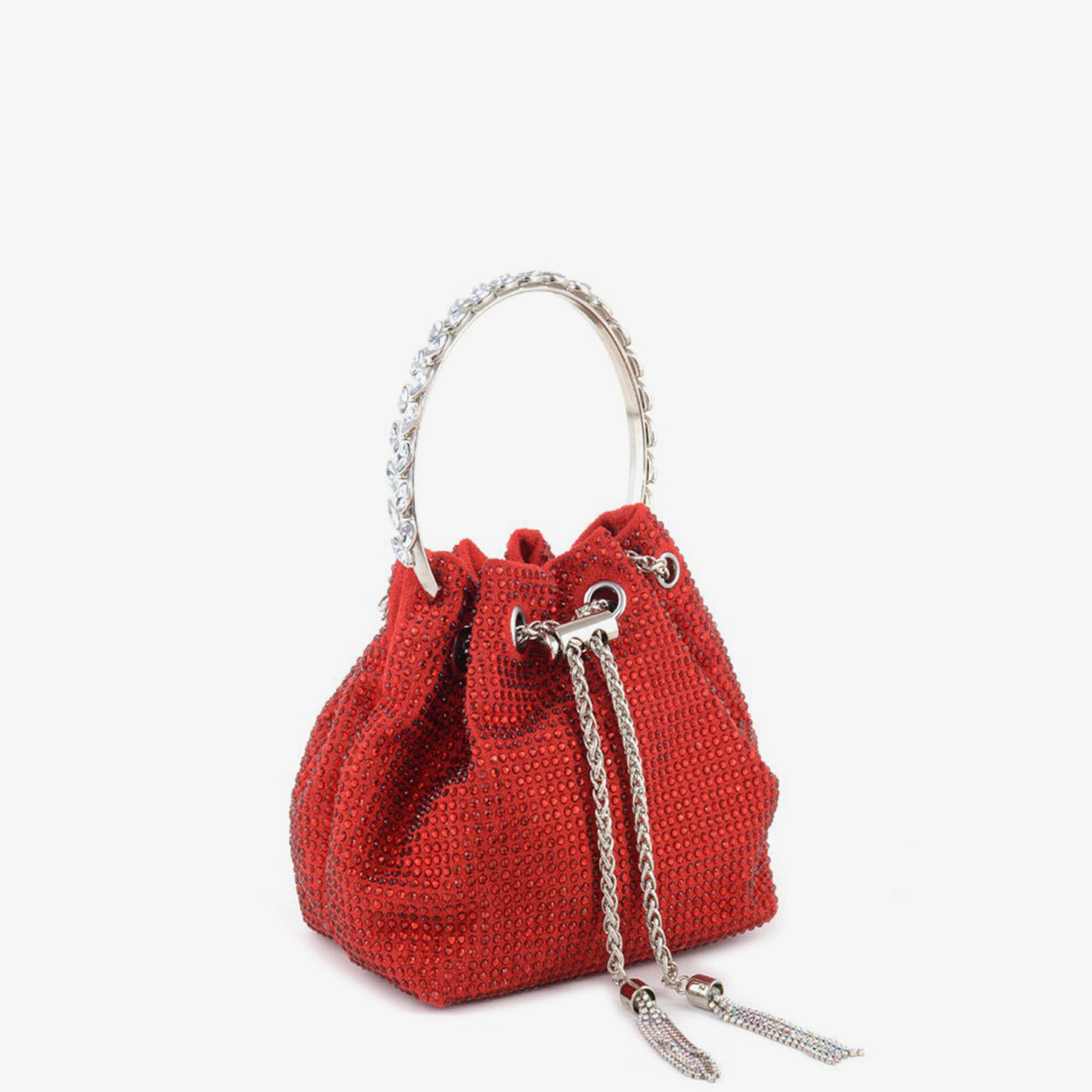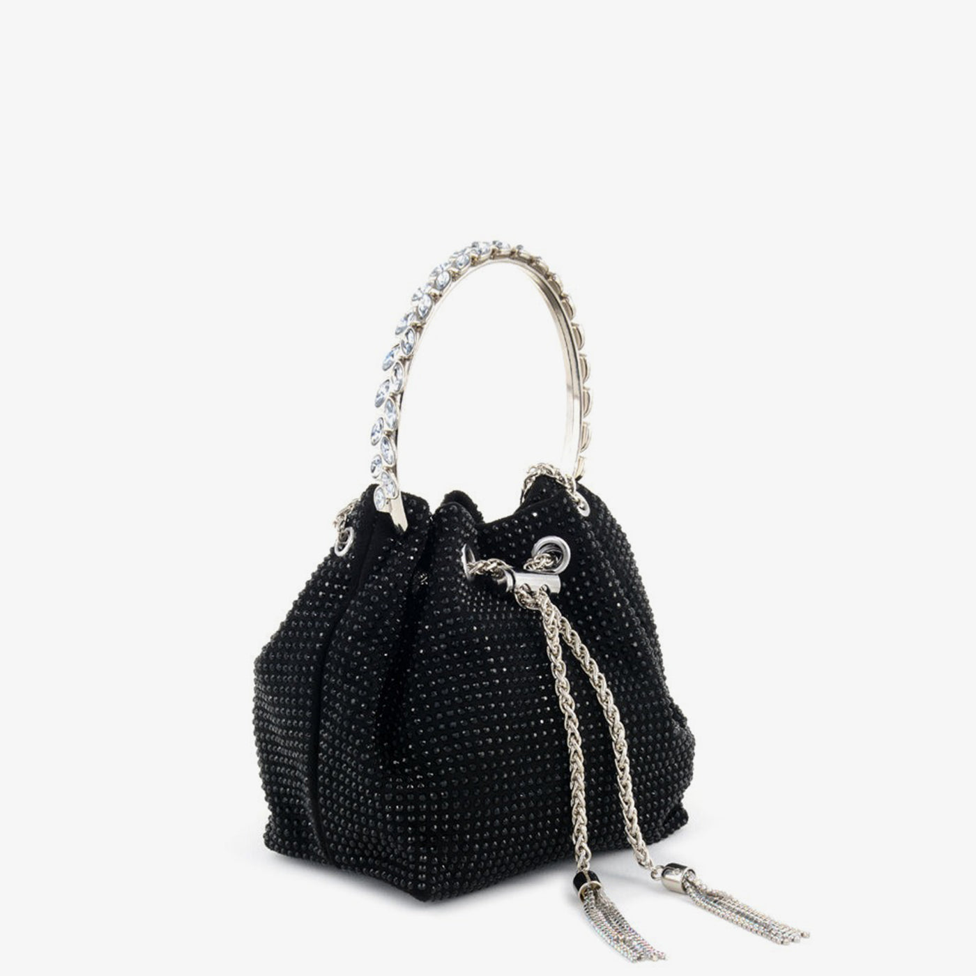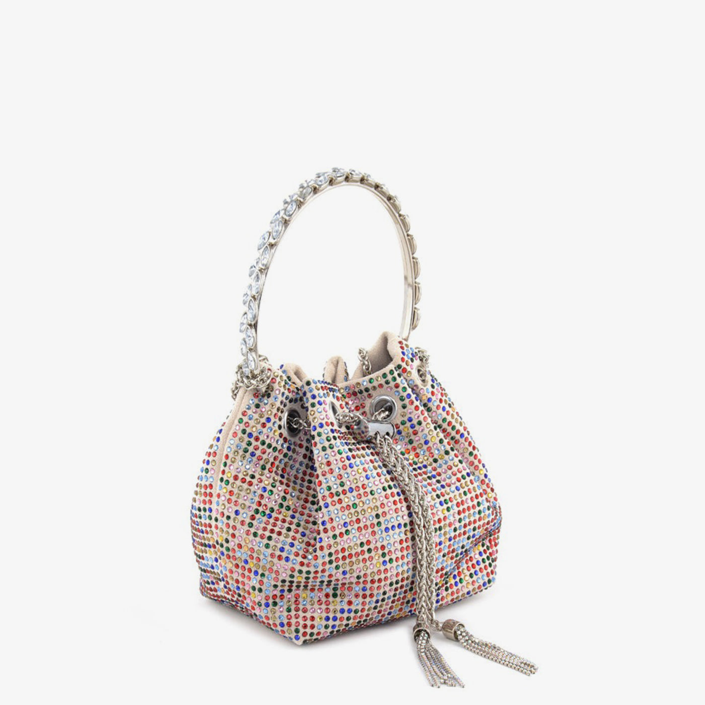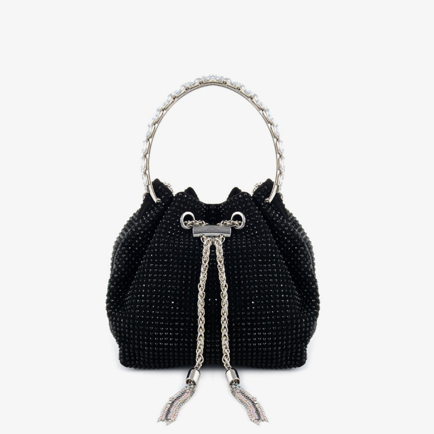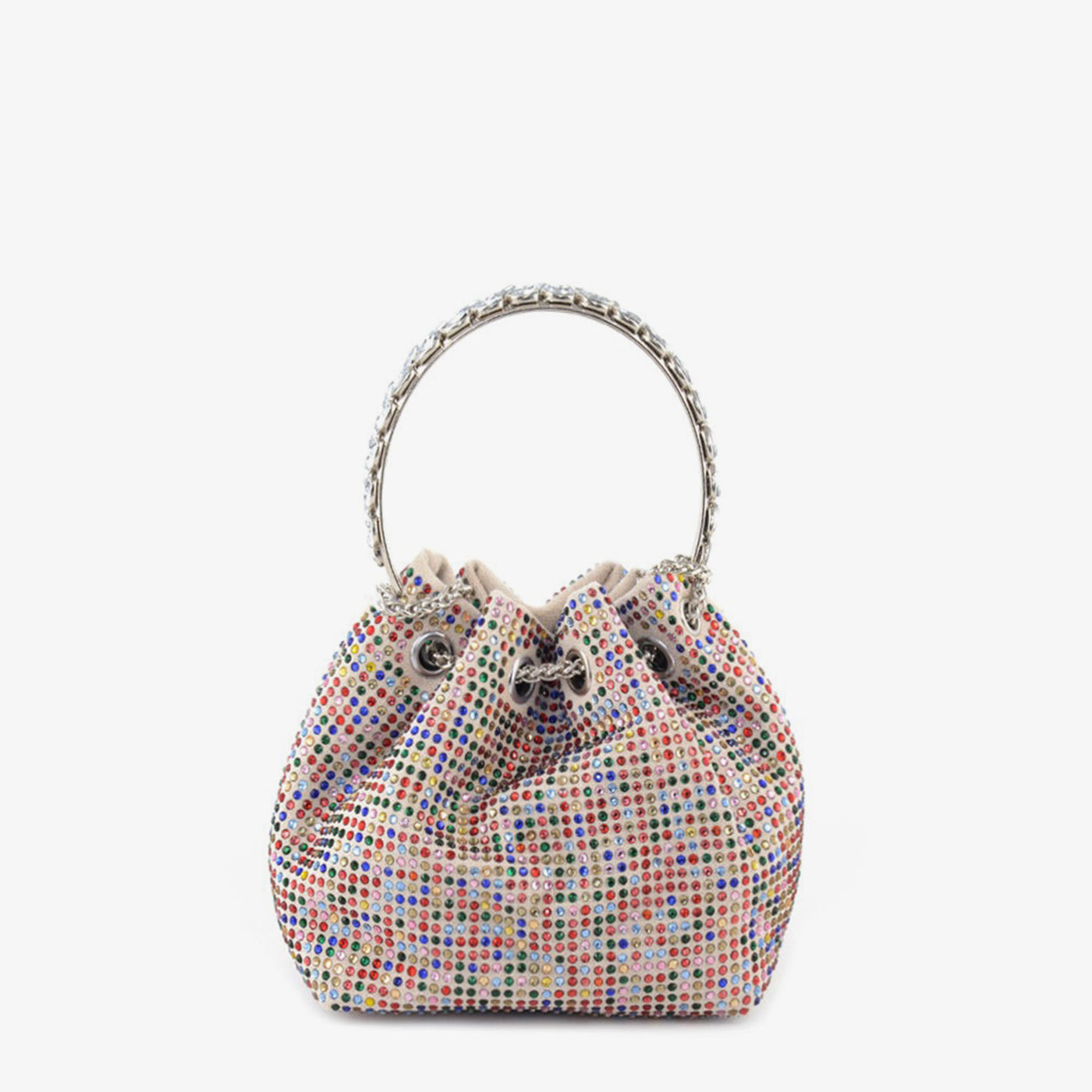 A radiant accessory, the Gleam Charm bag features a crystal-accented handle and shimmering embellishments, perfect for uplifting occasion wear with elegance and ease.