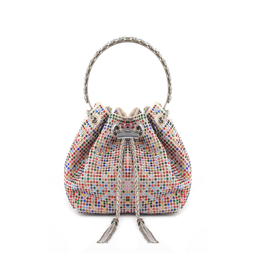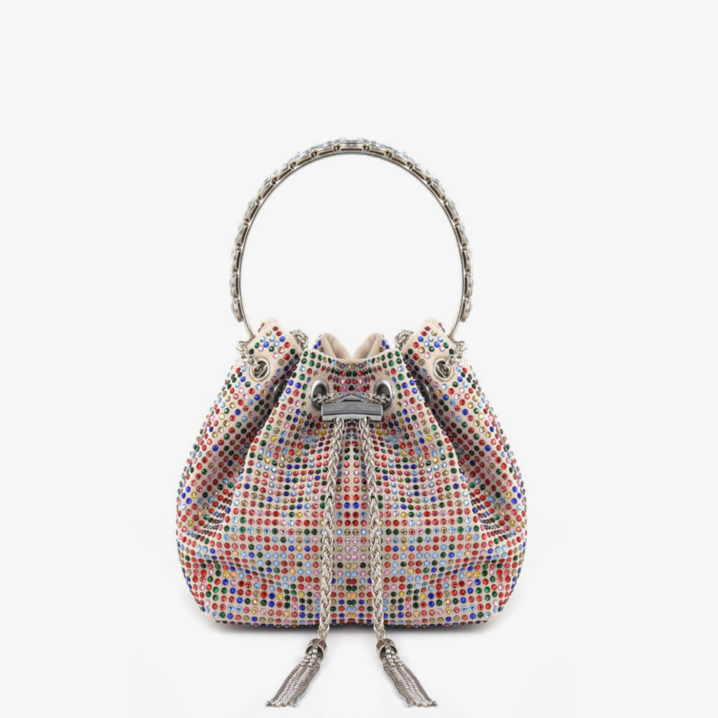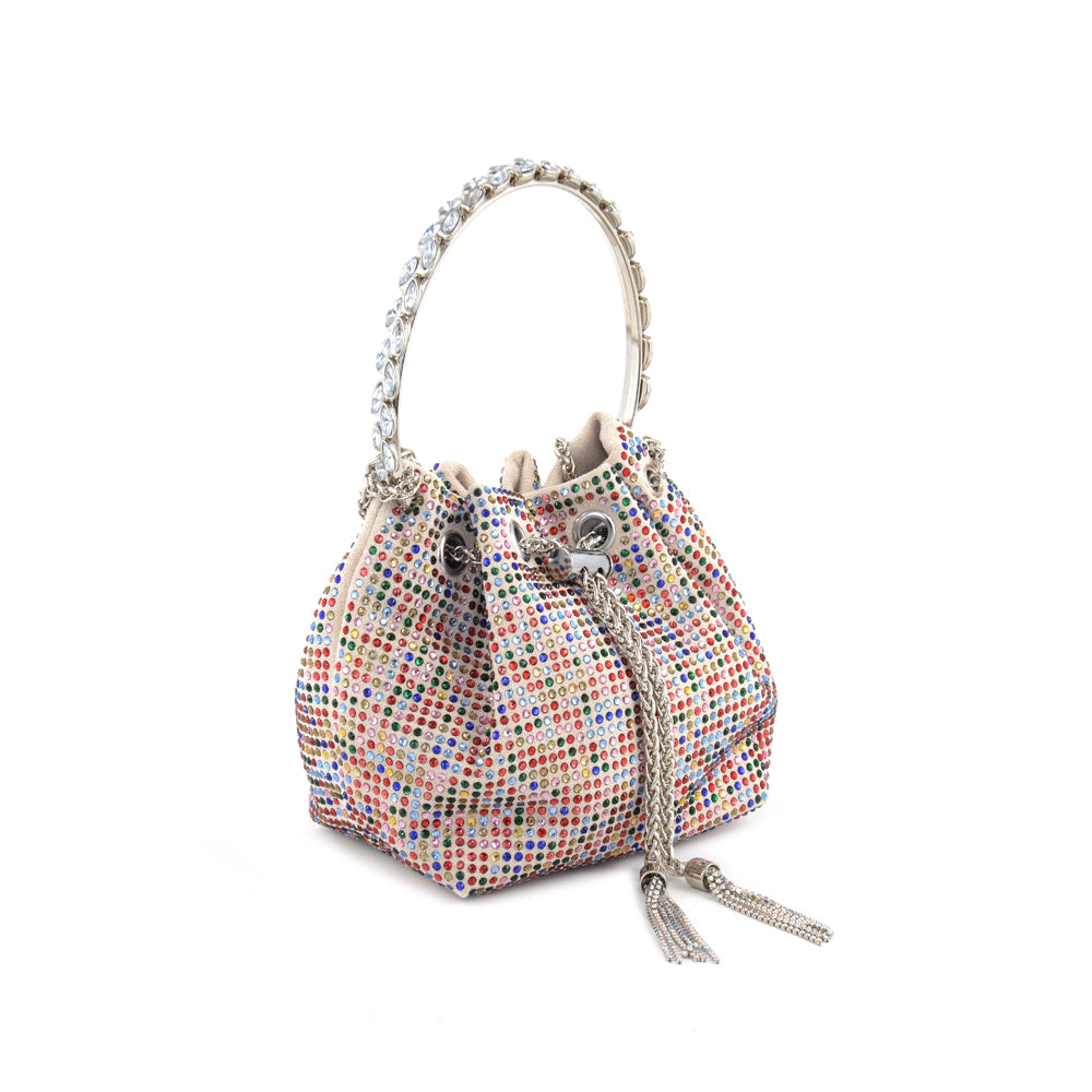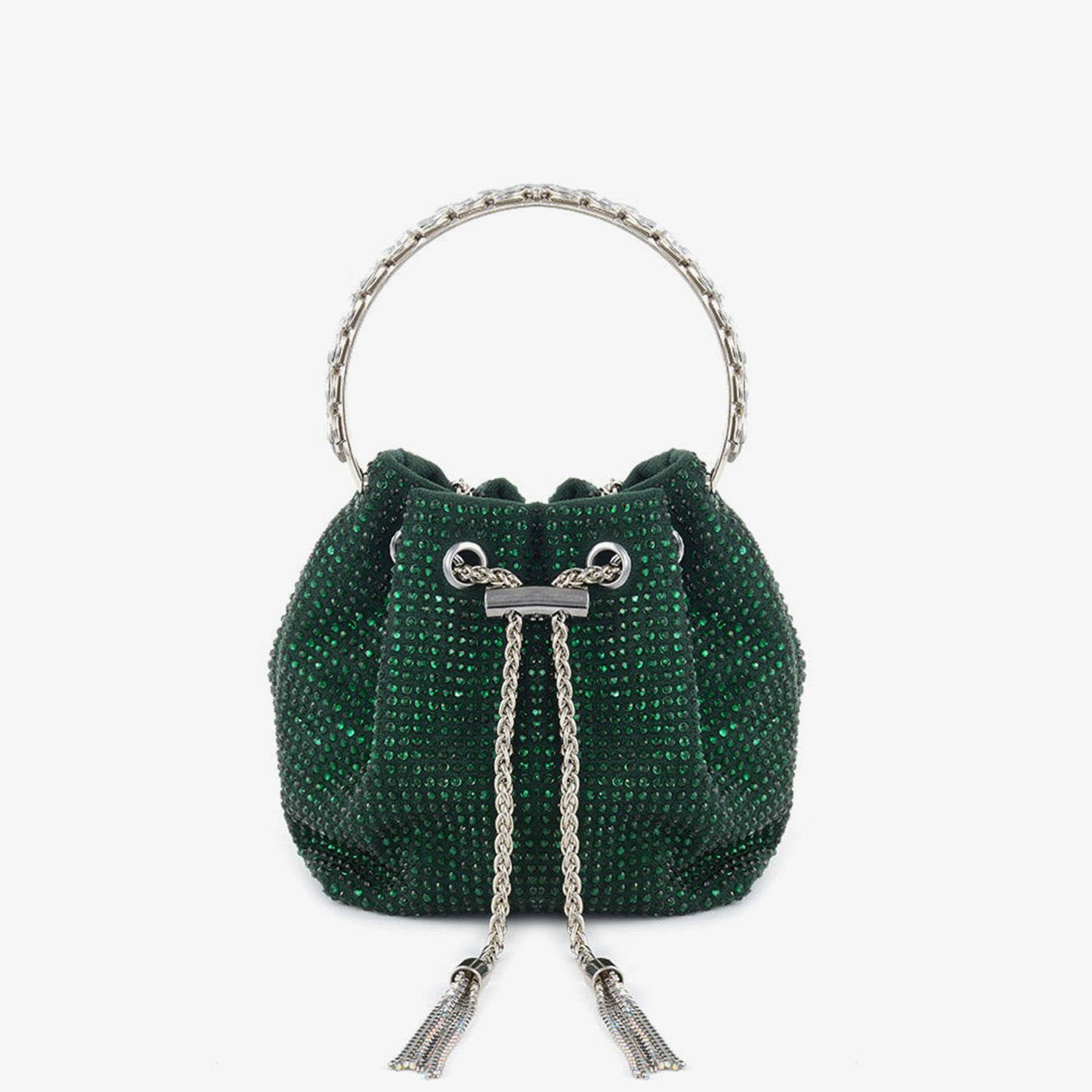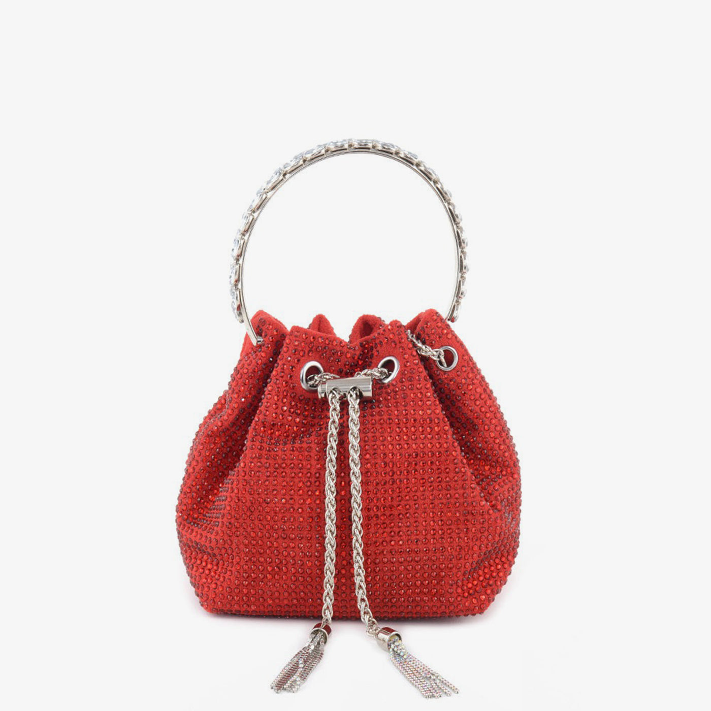 A radiant accessory, the Gleam Charm bag features a crystal-accented handle and shimmering embellishments, perfect for uplifting occasion wear with elegance and ease.