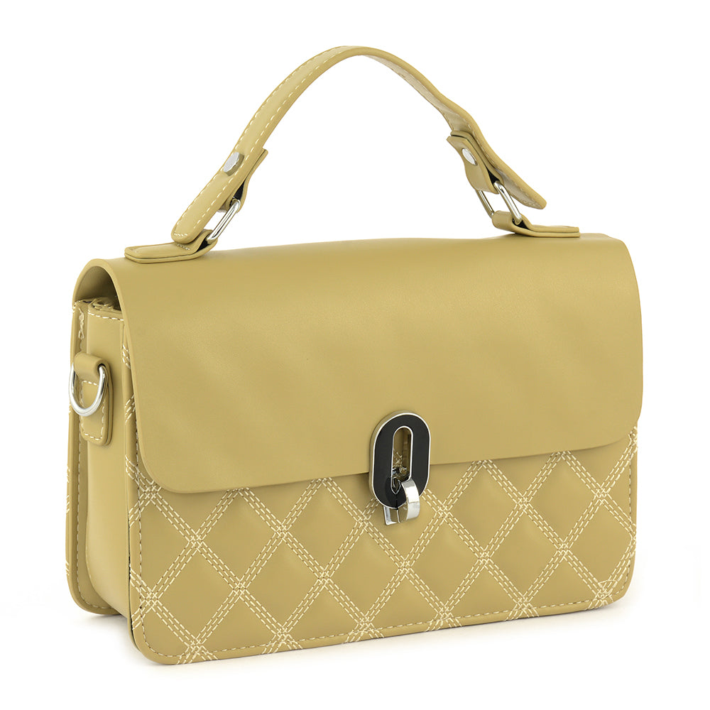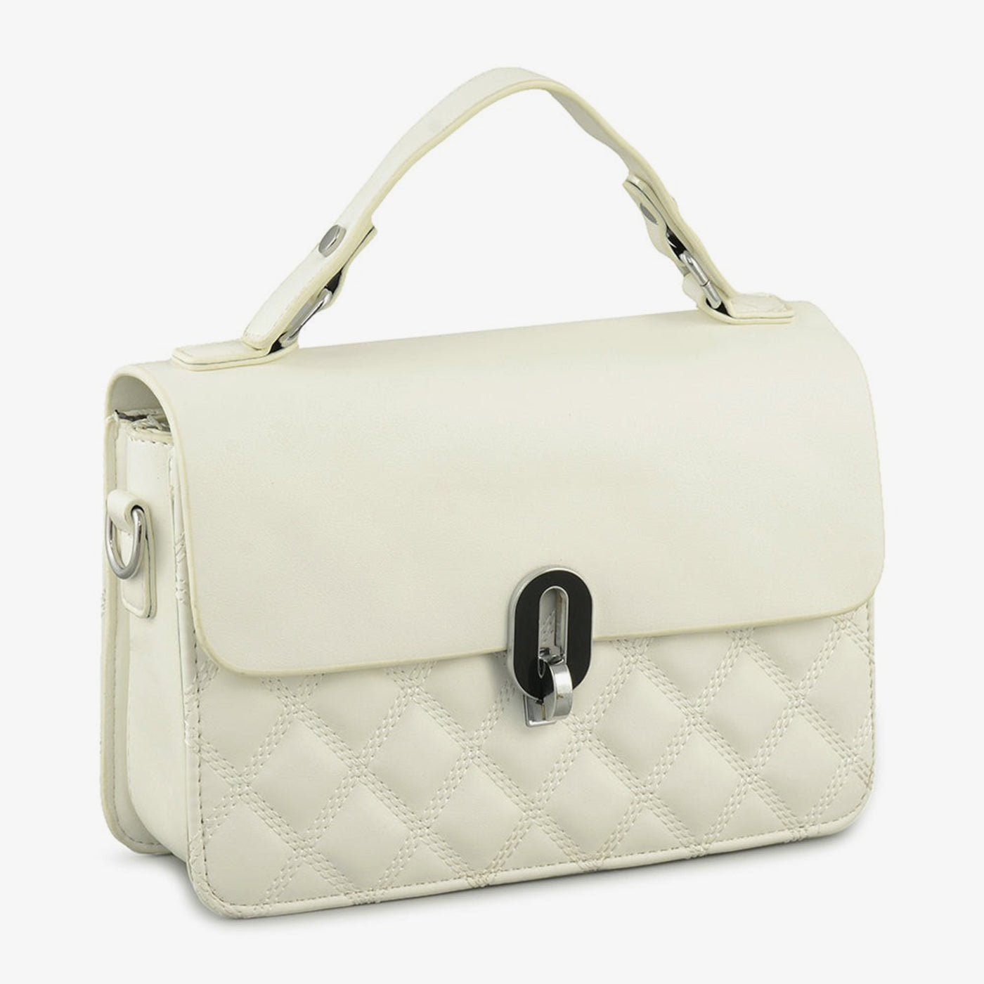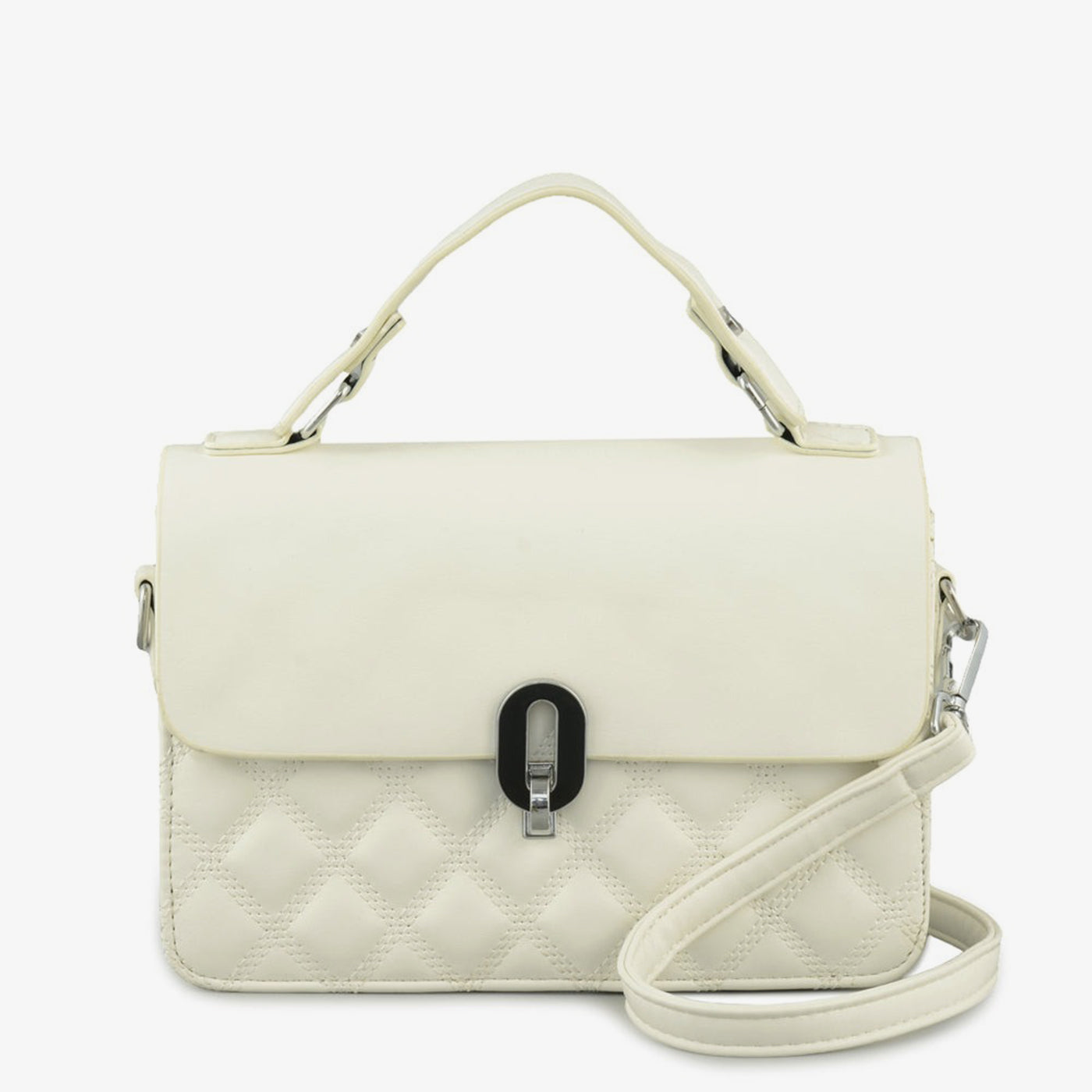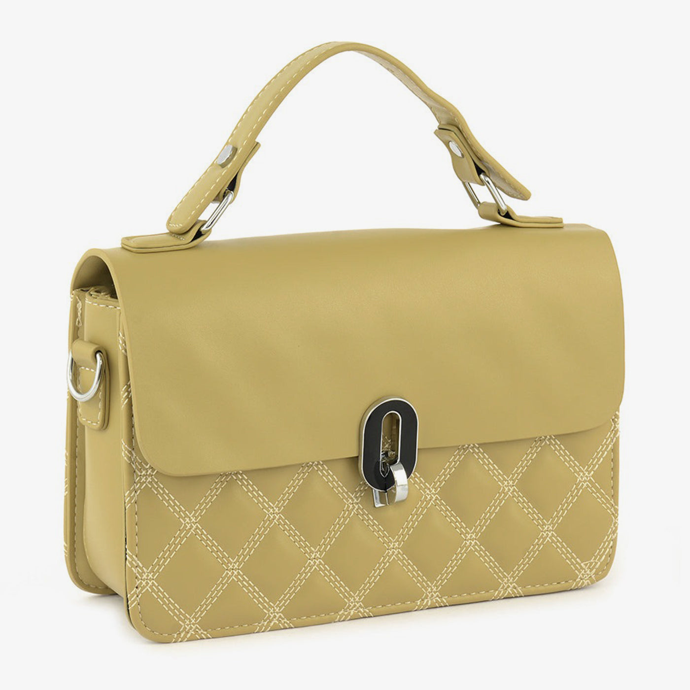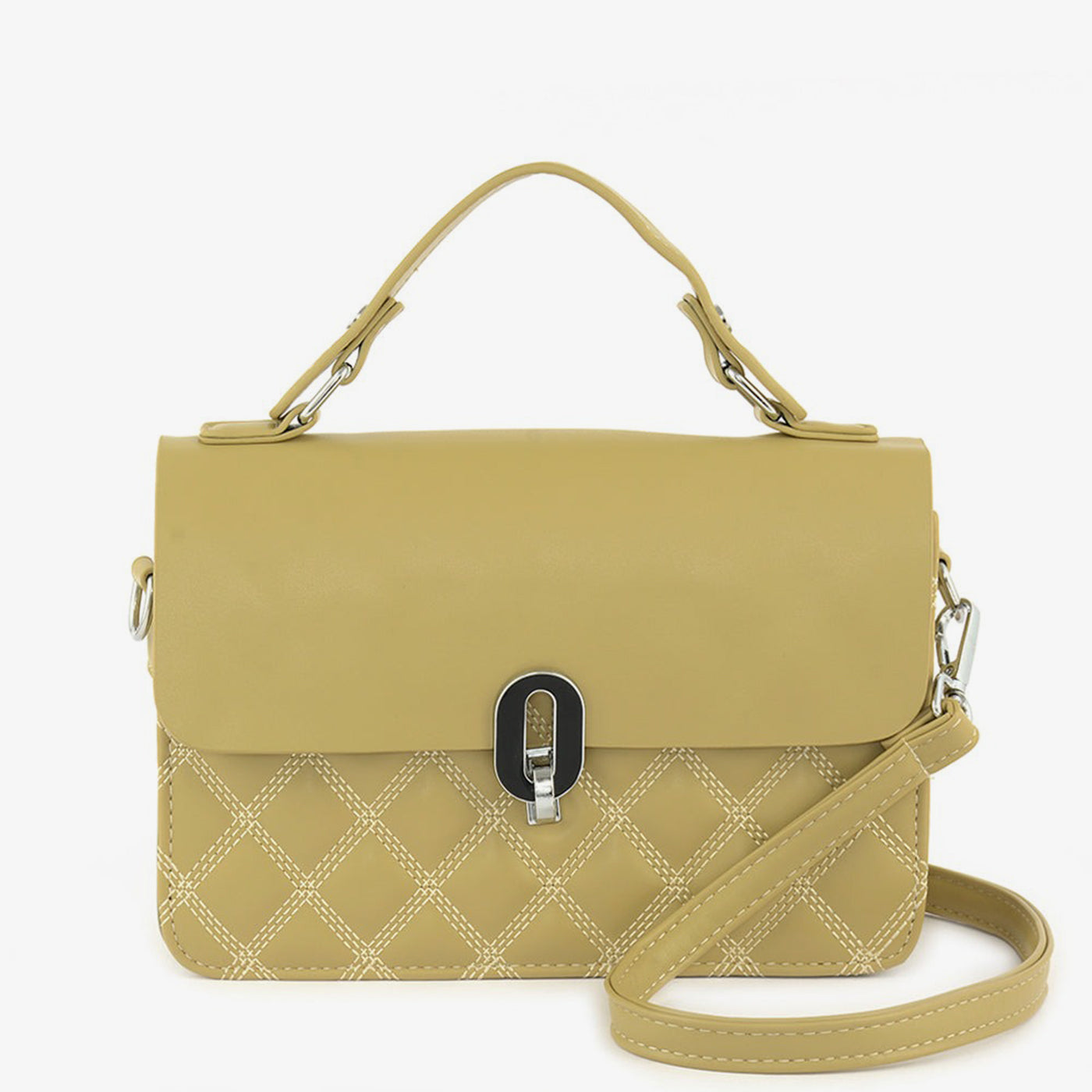 A structured carry-all that balances classic stitching with modern form. This piece is ideal for clean, understated style lovers. The central metal clasp adds a refined touch.