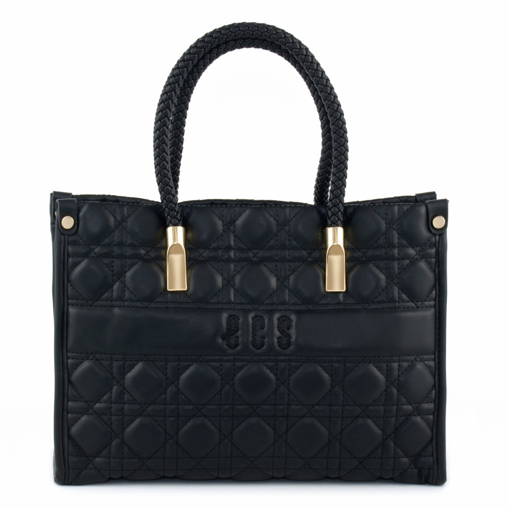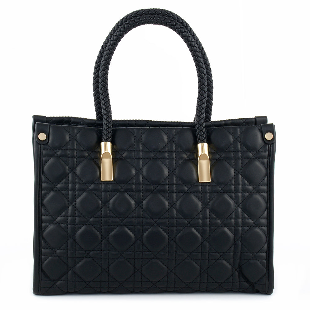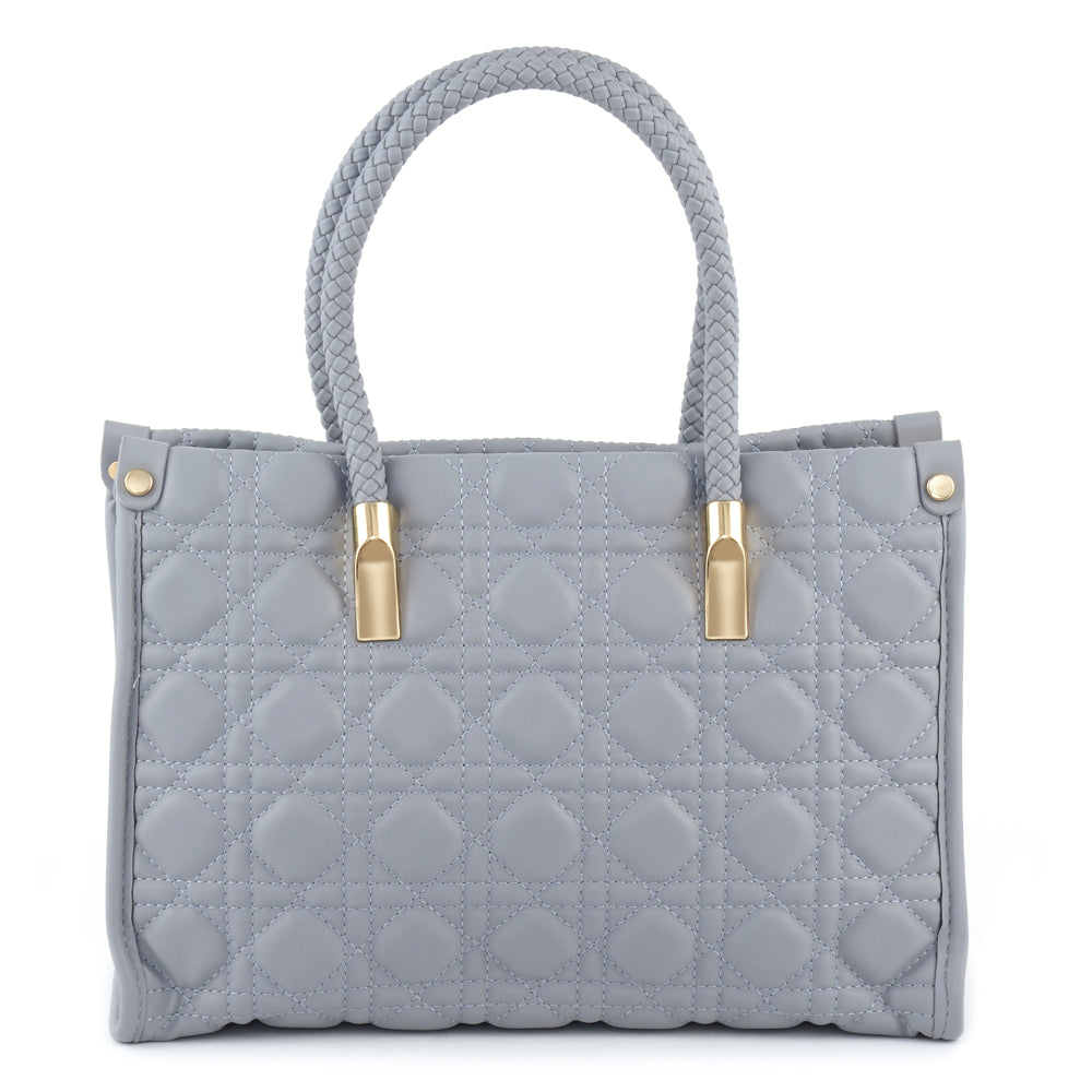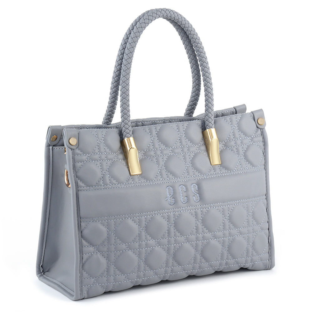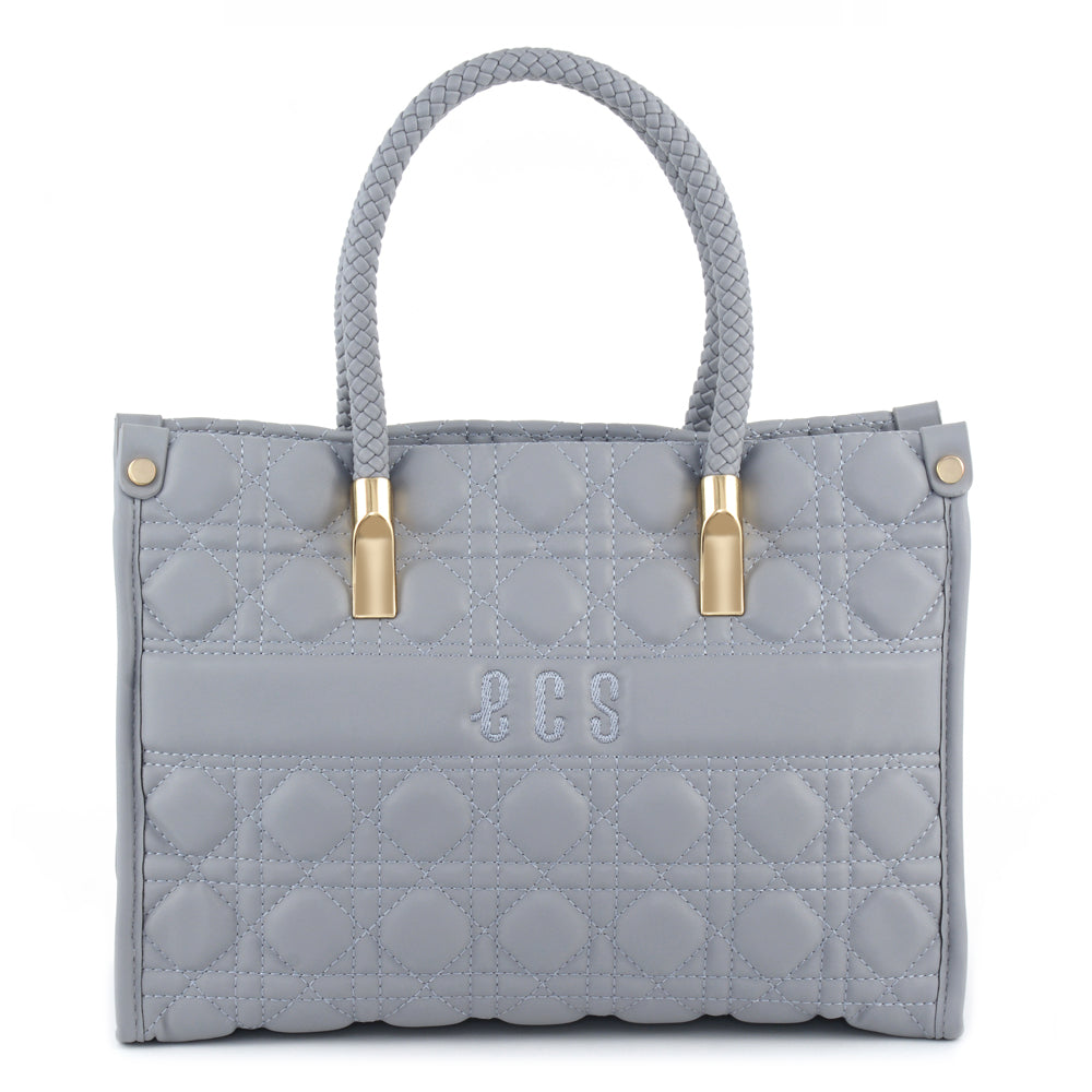 A refined take on timeless structure, this tote blends quilted detailing with luxe metallic accents for a clean, polished look.