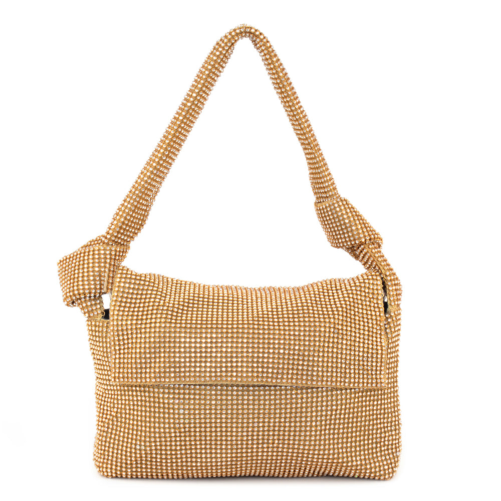 Introducing our "Radiant Glamour" Shoulder Bag — a dazzling fusion of opulence and practicality. Adorned with exquisite Rhine Stones, both as the upper material and featured embellishment, this bag exudes a shiny finish. Lined with soft Textile and fastened securely with a Magnet, its compact 10x3.5x7-inch dimensions make it an ideal accessory. The Rhine Stone Handle adds a touch of luxury, creating a statement piece that elevates any ensemble. With a single spacious Compartment, this bag effortlessly marries glamour with everyday functionality. Redefine your style with the "Radiant Glamour" Shoulder Bag, where shimmering stones meet modern elegance in a perfect blend of fashion and sophistication.