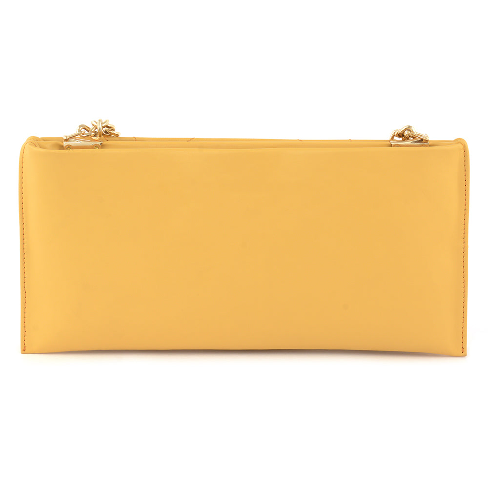 Chic and lightweight, this slim shoulder bag showcases contrast stitching over a sleek matte body. Its geometric layout and gold chain bring a playful balance to its refined...