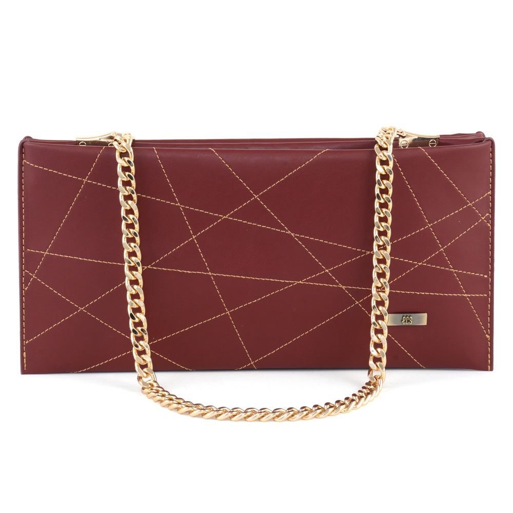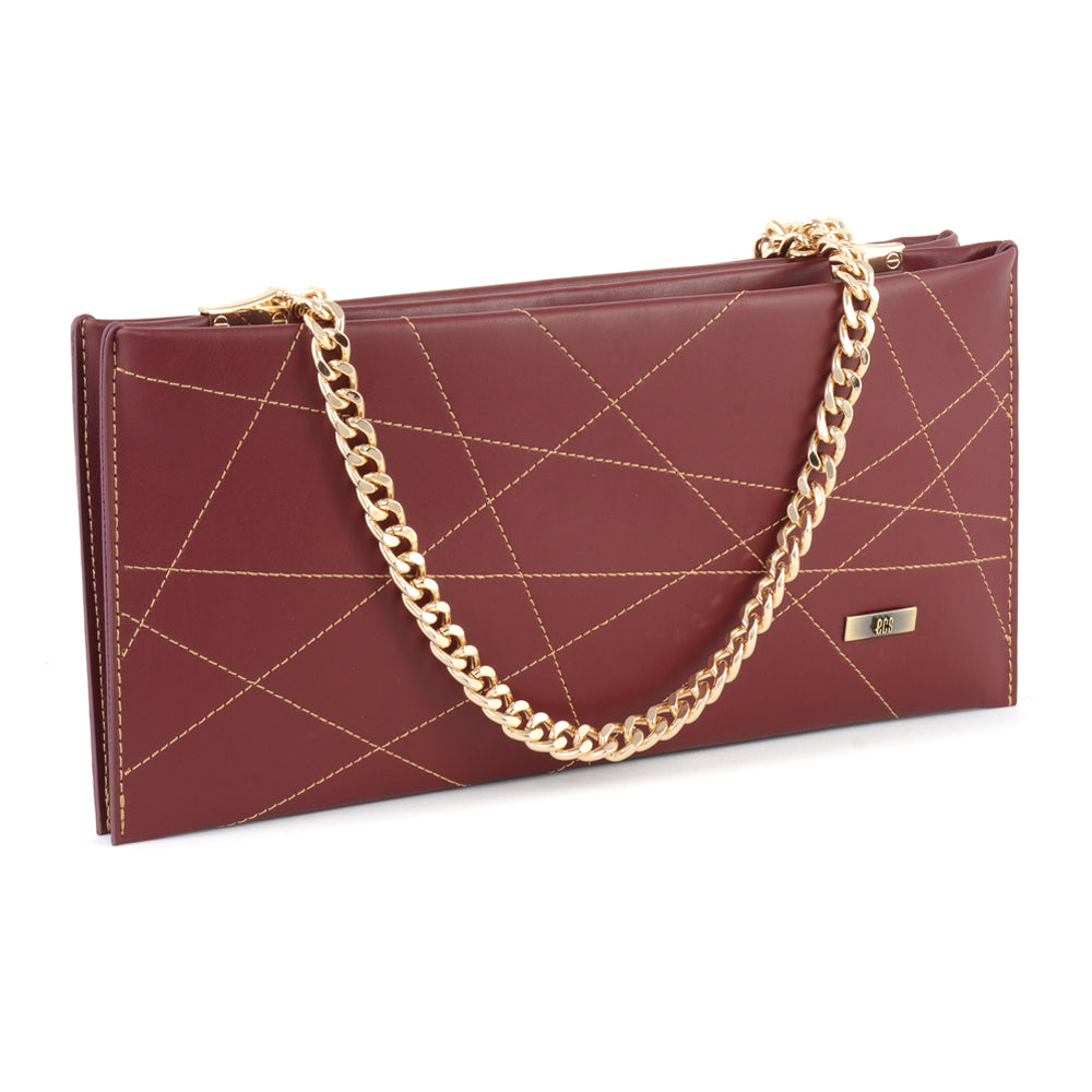 Chic and lightweight, this slim shoulder bag showcases contrast stitching over a sleek matte body. Its geometric layout and gold chain bring a playful balance to its refined look.