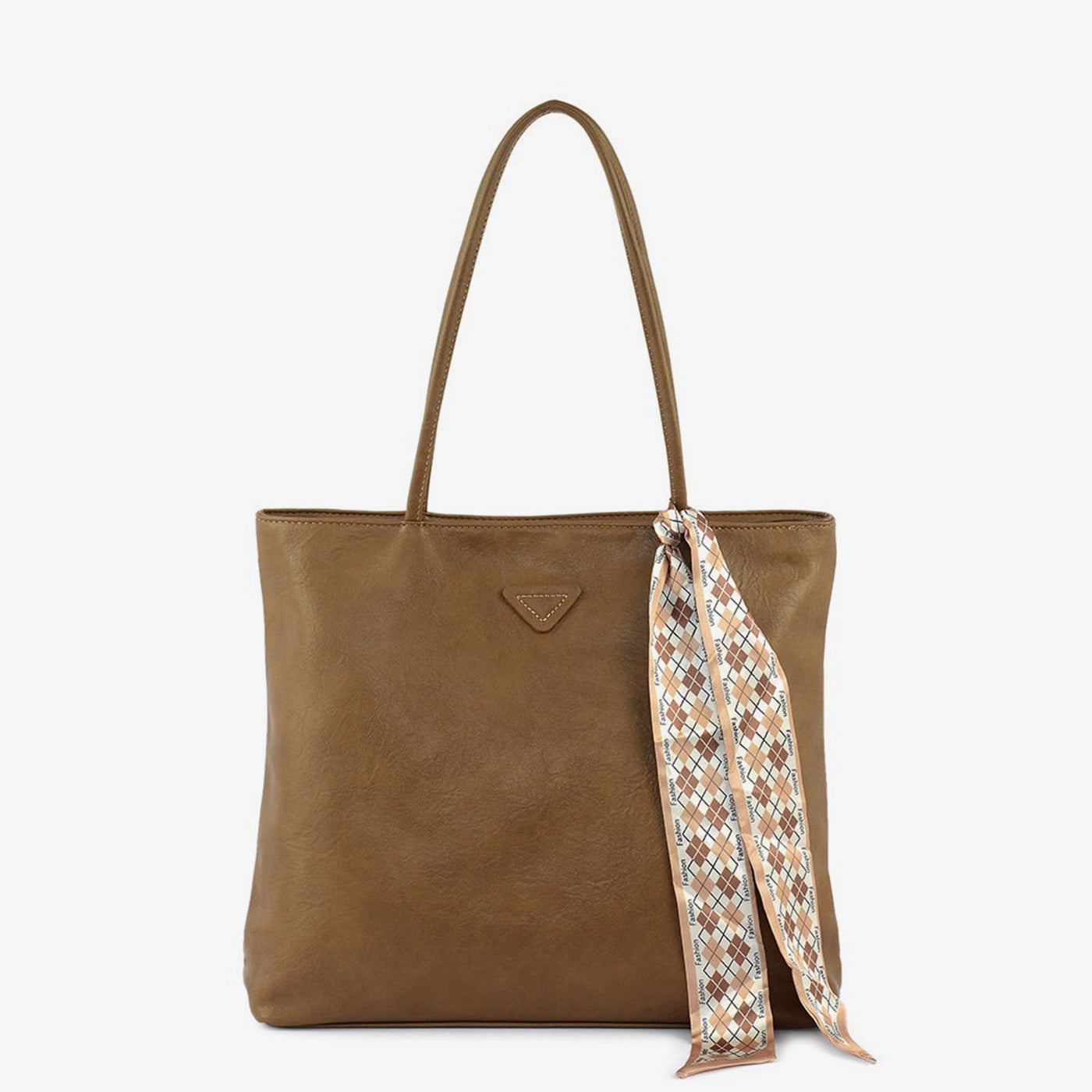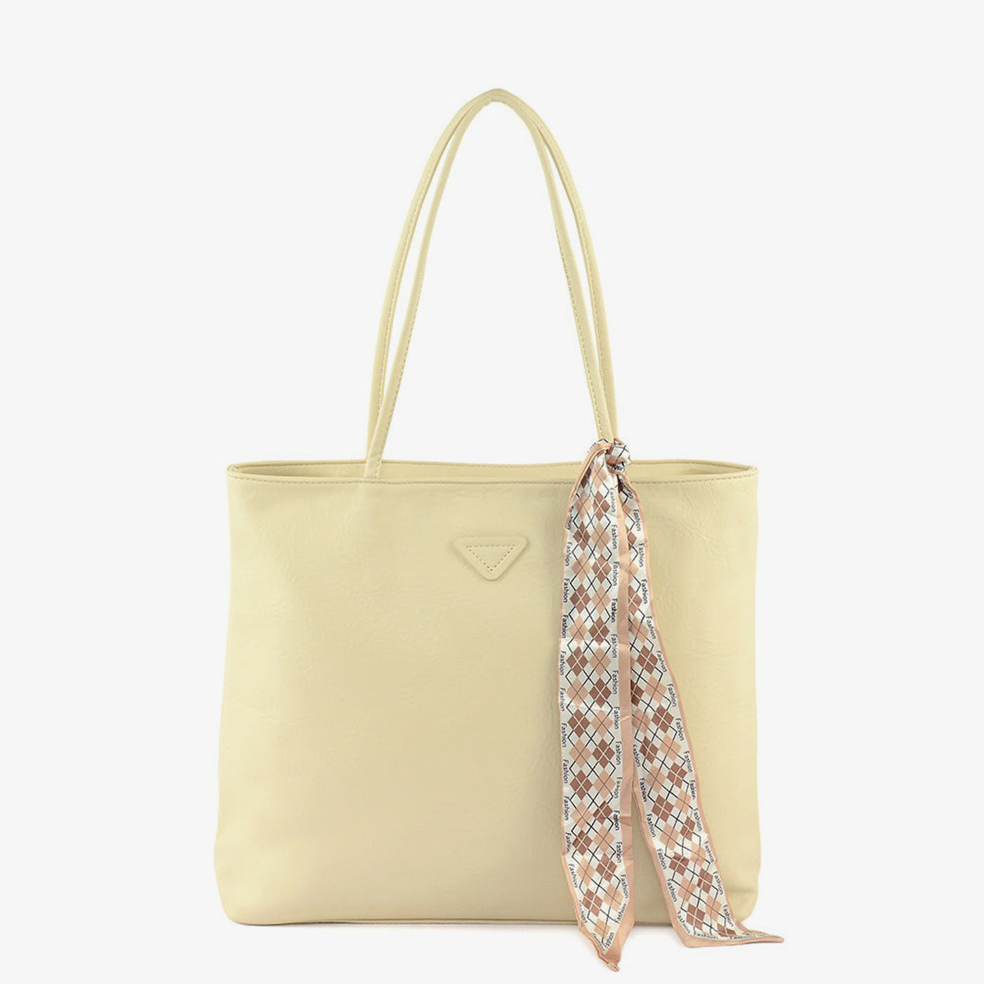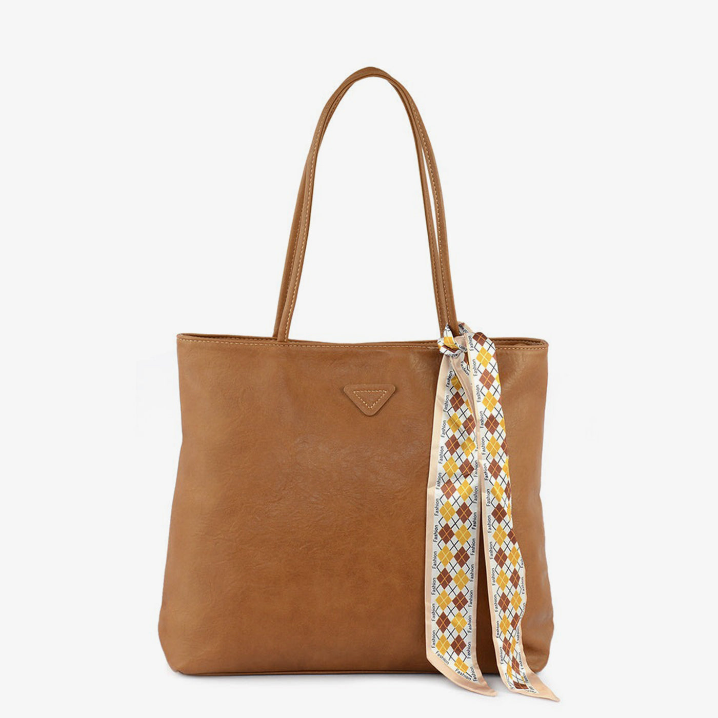 Carry your everyday essentials with a touch of elegance in this classic black tote bag, adorned with a stylish patterned scarf tied to the handle. A versatile and sophisticated...