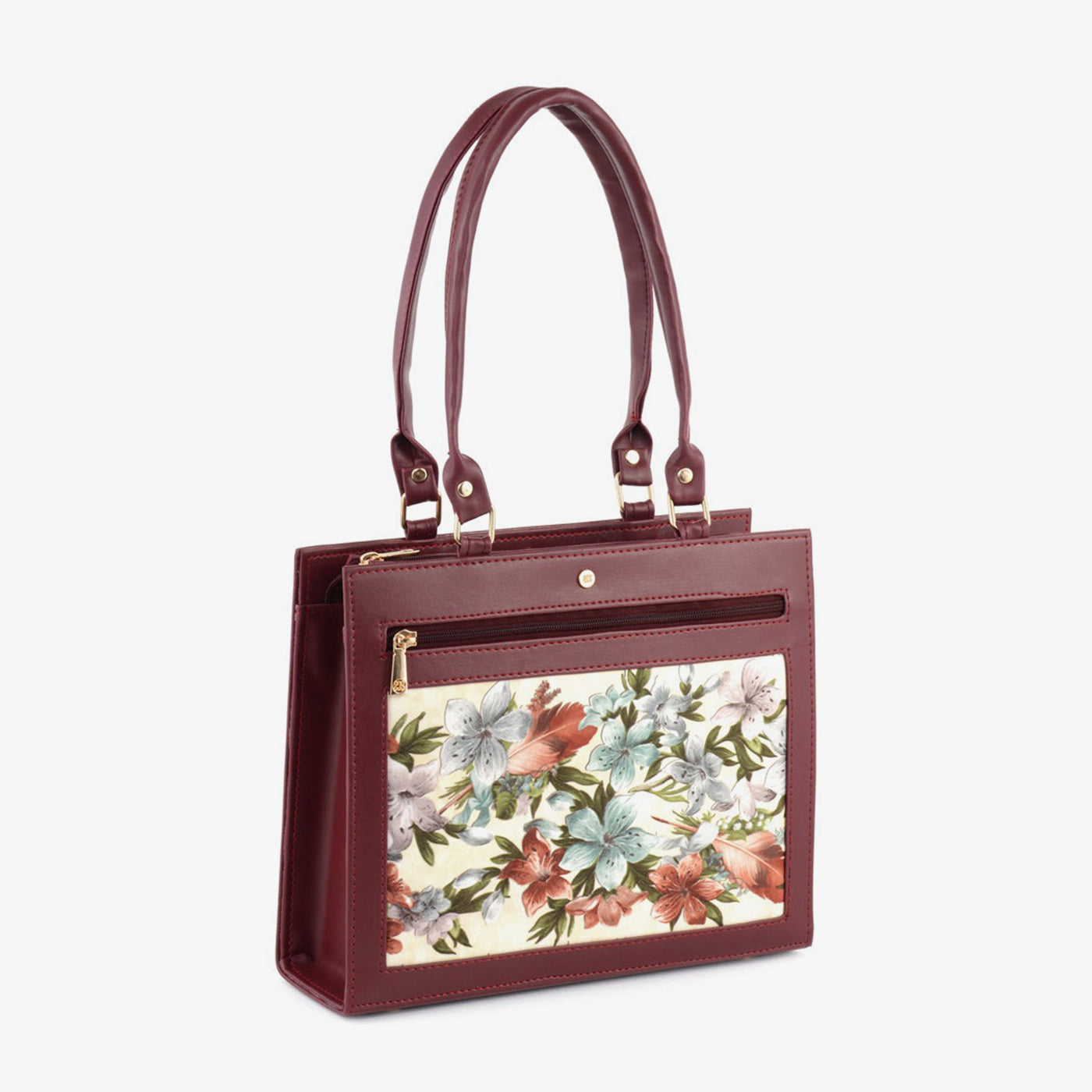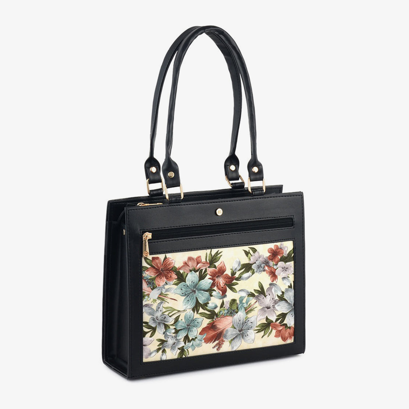Elevate your style with our Shoulder Bag featuring Synthetic PU and Textile lining. The matte finish adds a timeless touch, while the Printed Textile detailing brings a contemporary flair. With secure Zip fastening and a spacious 13x3.6x11-inch design, this bag combines fashion and functionality seamlessly. The Top Handles offer a sophisticated touch, making it versatile for any occasion. Boasting four compartments, it ensures organized convenience for your essentials. Embrace modern prints and classic design with our Shoulder Bag — a chic accessory for urban elegance.