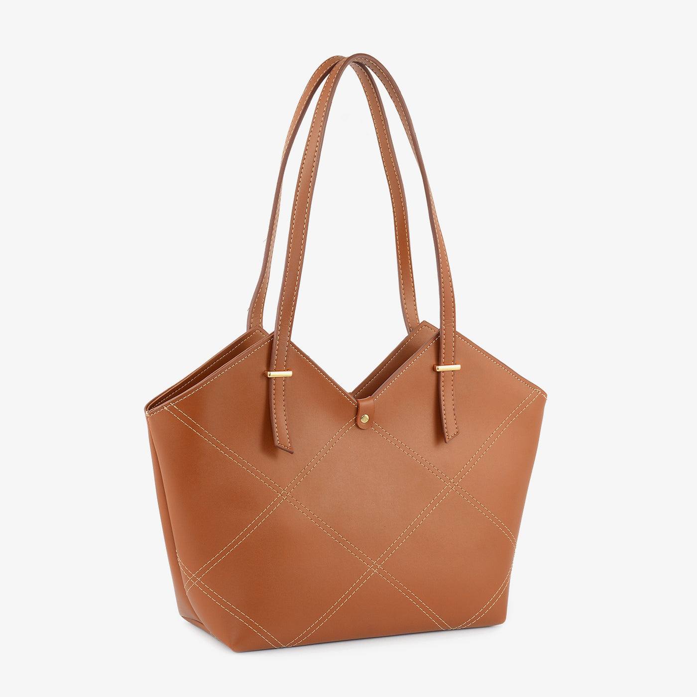 Elevate your everyday style with our Modern Minimalist Tote. Crafted from premium synthetic leather, this bag exudes sophistication with its clean lines, geometric stitching, and sleek design. The spacious interior and comfortable handles make it perfect for carrying your essentials.