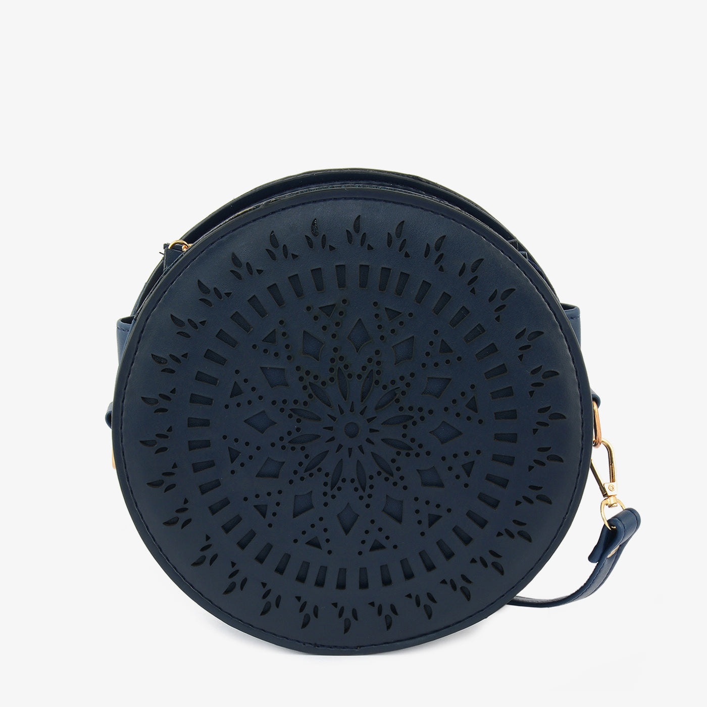 Indulge in bohemian style with this unique circular bag. Crafted with a durable synthetic leather and featuring an intricate laser-cut design, this bag exudes a free-spirited vibe. The adjustable strap and spacious interior offer both style and functionality.