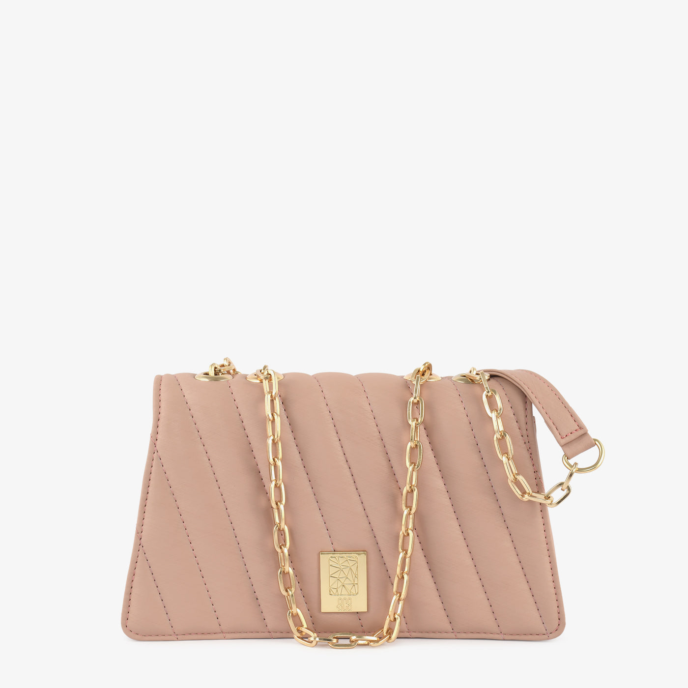 Classic quilted design with luxurious gold-tone chain handles. This spacious shoulder bag offers both elegance and functionality for daily wear.