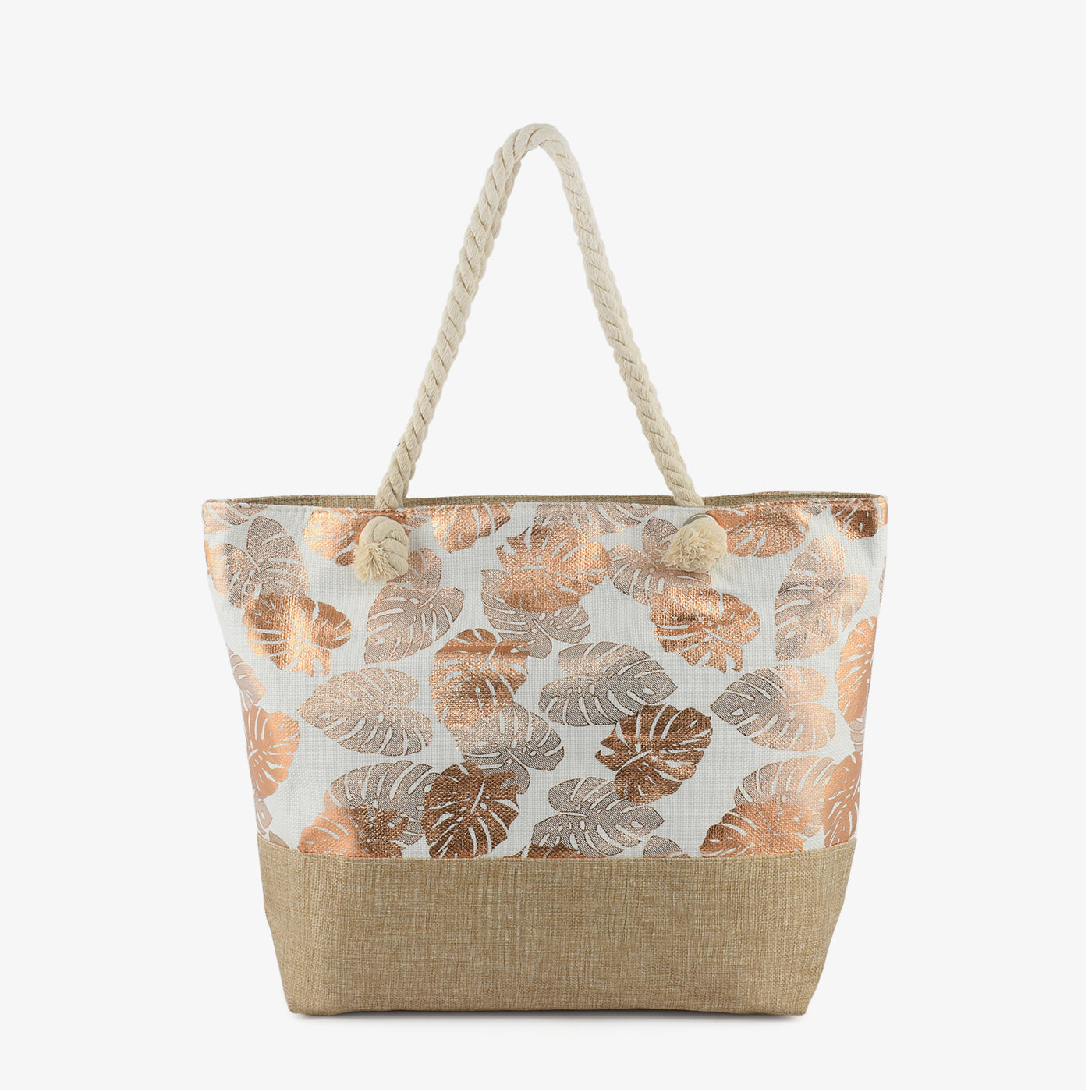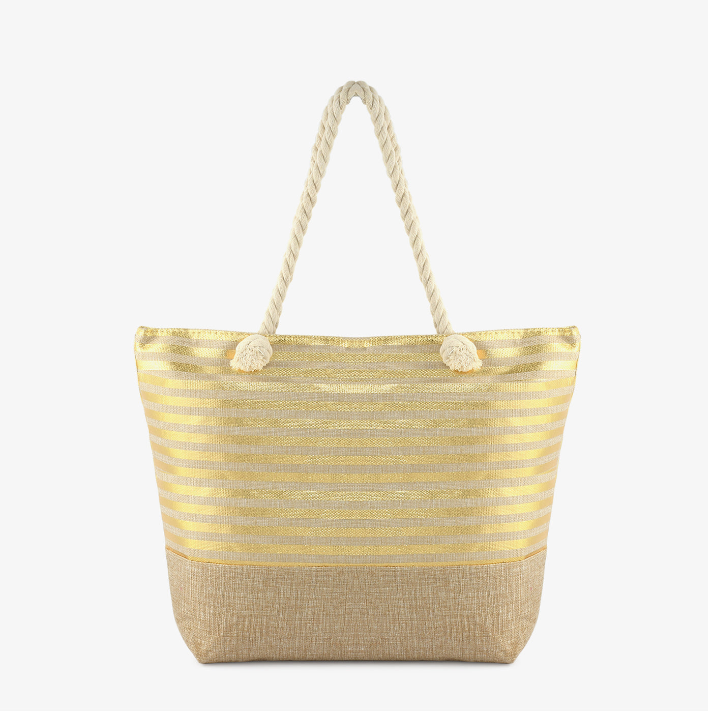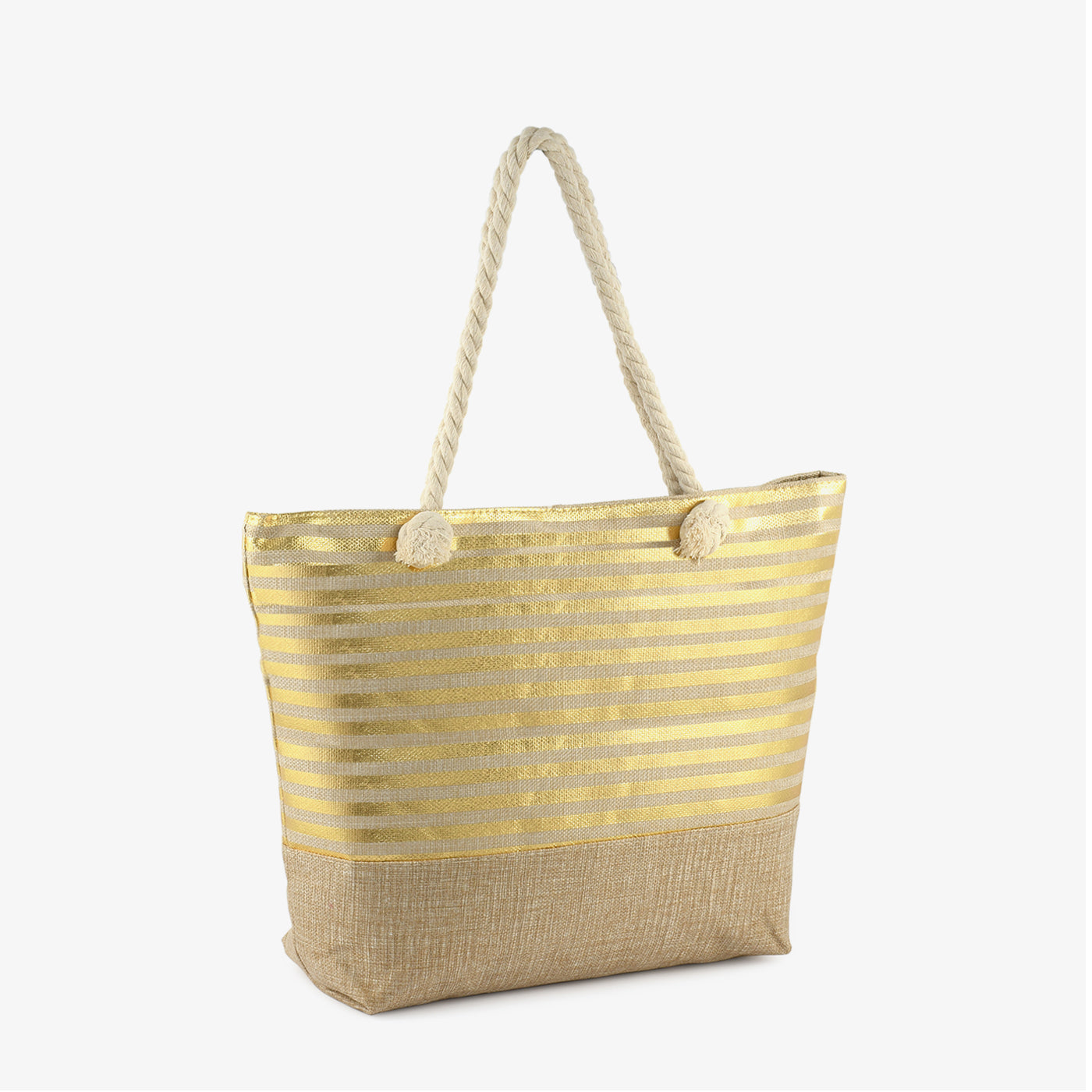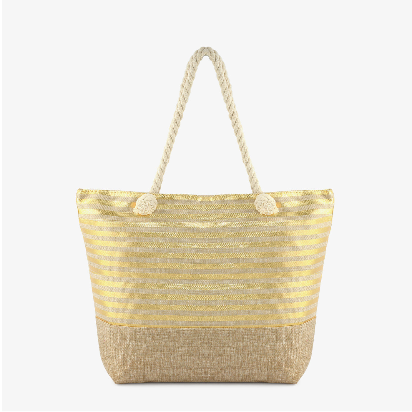 A breezy shoulder bag crafted with a striped shimmer finish, perfect for weekend outings and beach-day styling. Lightweight yet spacious, it offers ample room for daily essentials while keeping a chic, relaxed vibe. The rope handles add a casual touch that fits effortlessly into summer wardrobes.