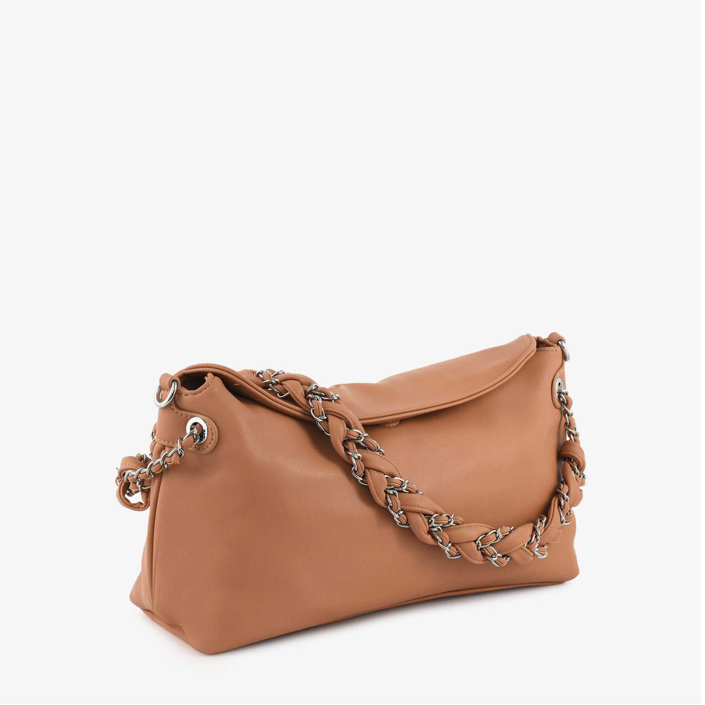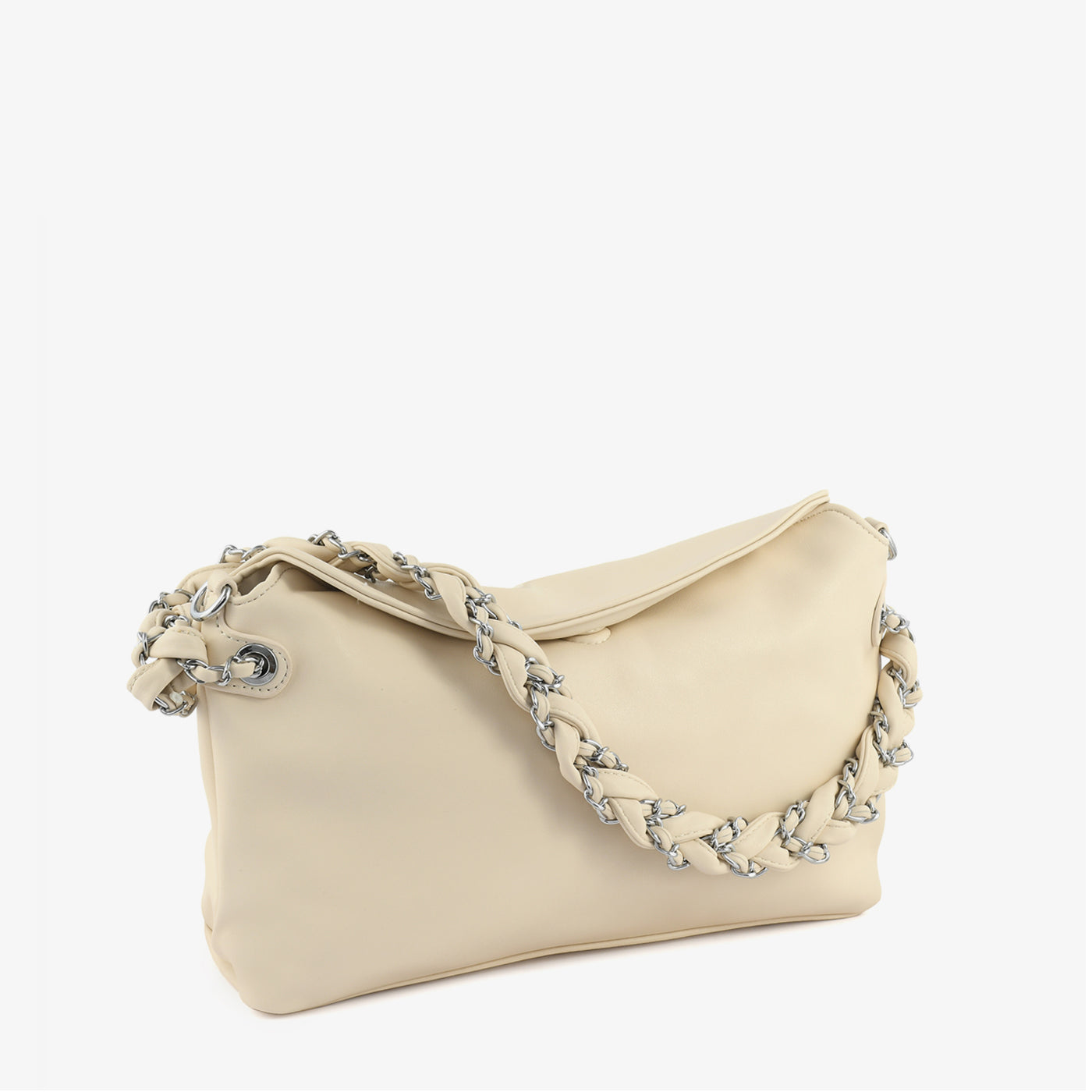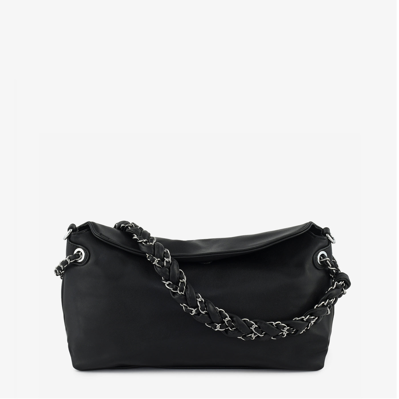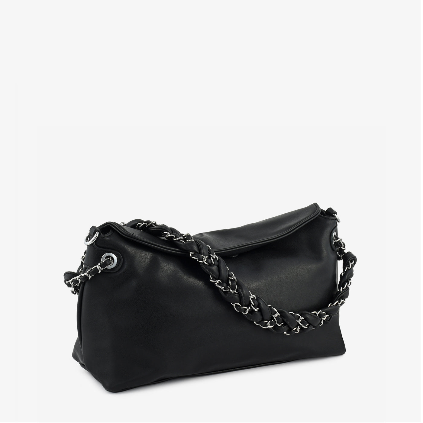 A modern shoulder bag featuring a trending chain-woven strap that adds bold sophistication. The smooth exterior and structured shape make it versatile for both work and outings. With ample space...