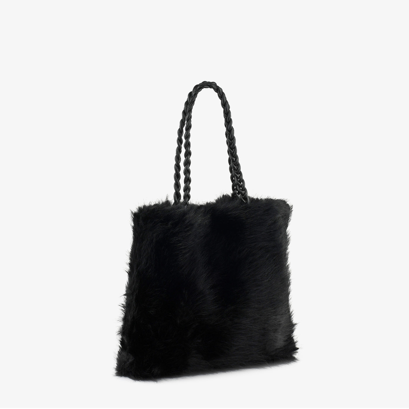- Design: Structured tote with all-over plush faux fur body and dual braided chain handle construction