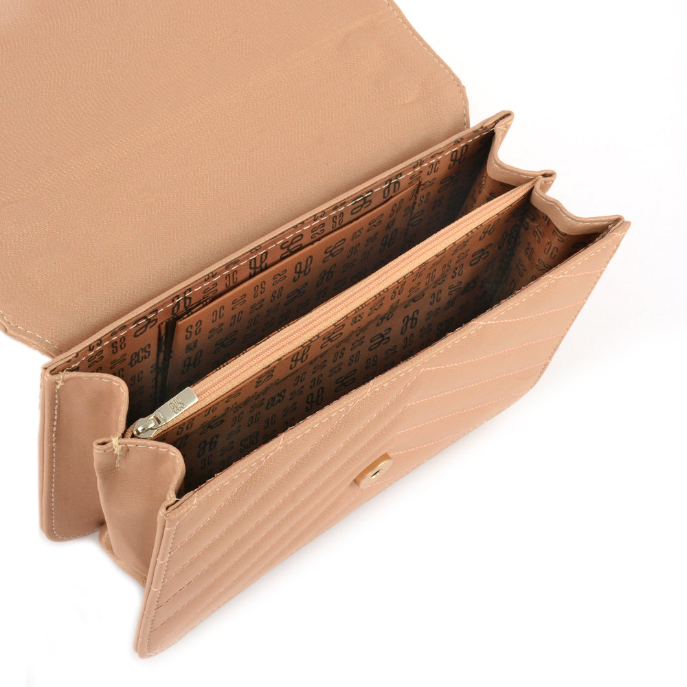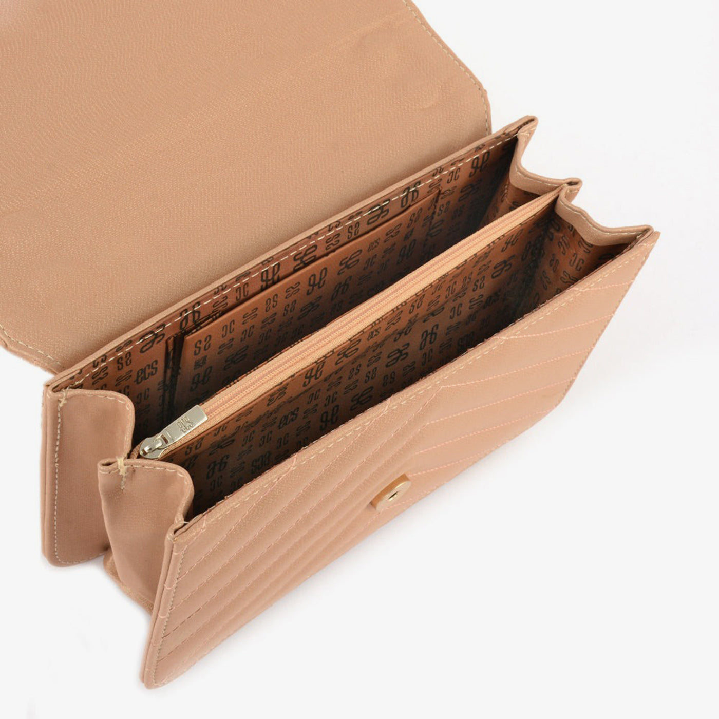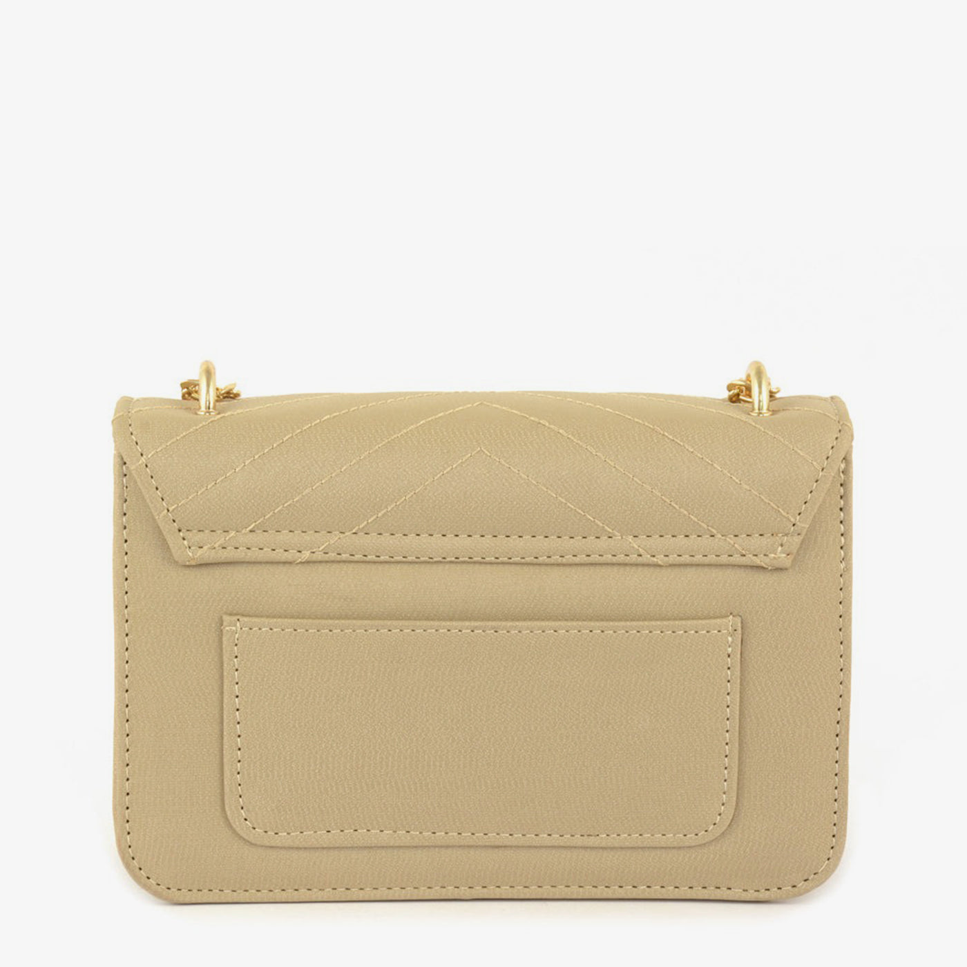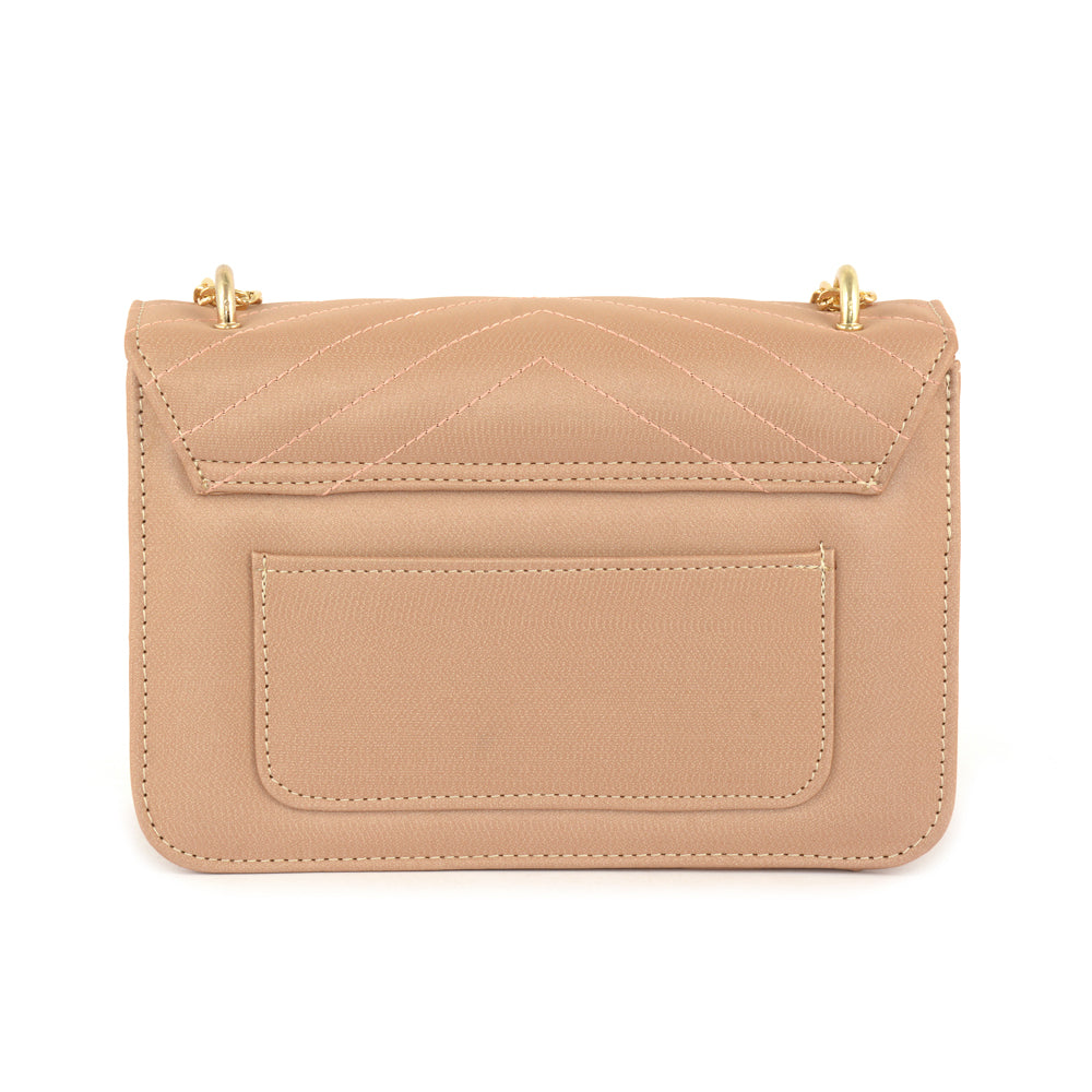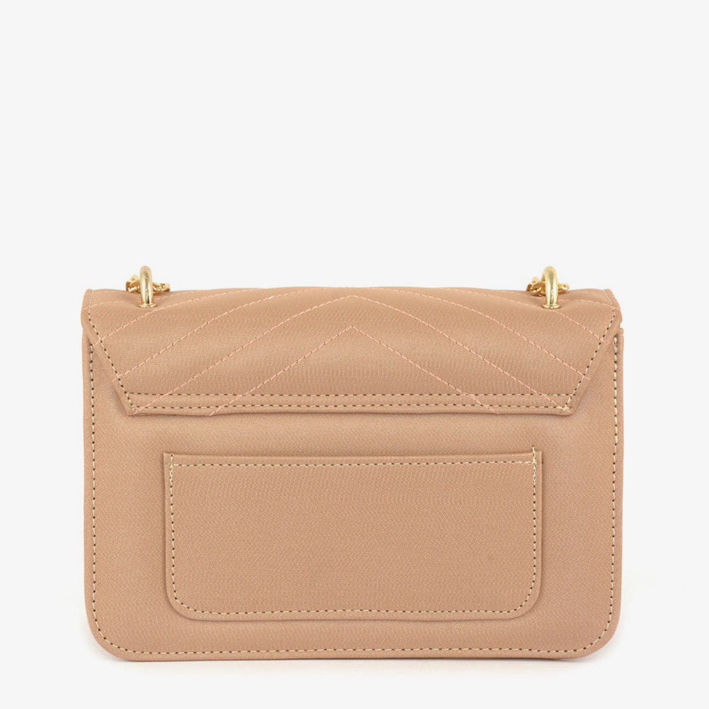 This sleek shoulder bag features a chevron-quilted flap and slim silhouette for a clean, elevated look. The gold-tone chain adds a touch of polish, perfect for refined daytime dressing.