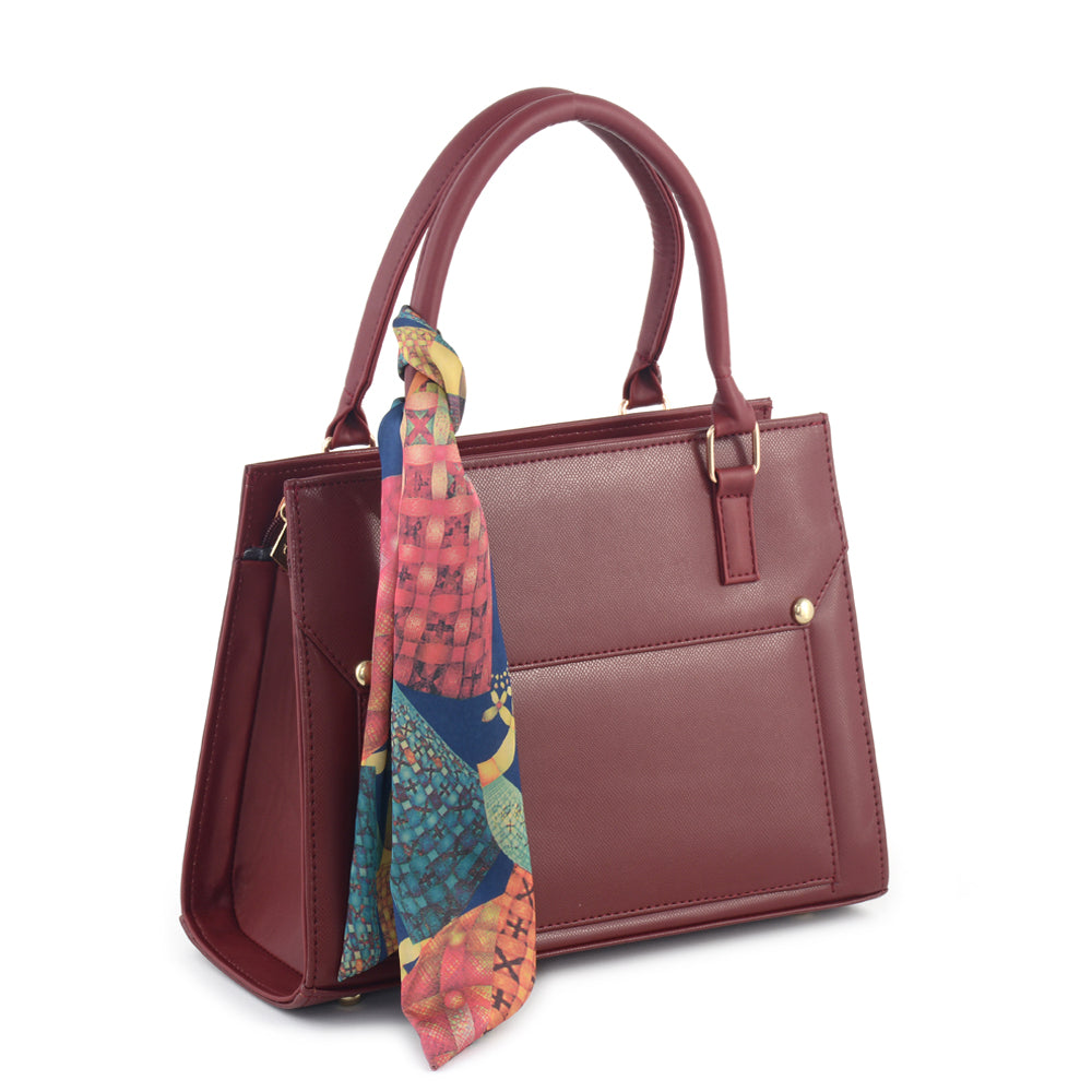 Indulge in contemporary style with our shoulder bag, meticulously crafted from durable Synthetic PU. The fabric-lined interior features three well-organized compartments, providing ample space for your essentials. With a generous width of 16 inches, depth of 4.5 inches, and a height of 10 inches, this bag effortlessly combines fashion with functionality. The chic handles offer comfortable carrying, while the added scarf feature enhances its unique charm. Elevate your ensemble with this versatile shoulder bag, designed for both practicality and trendsetting design. Experience the perfect blend of fashion and convenience with our thoughtfully crafted accessory.