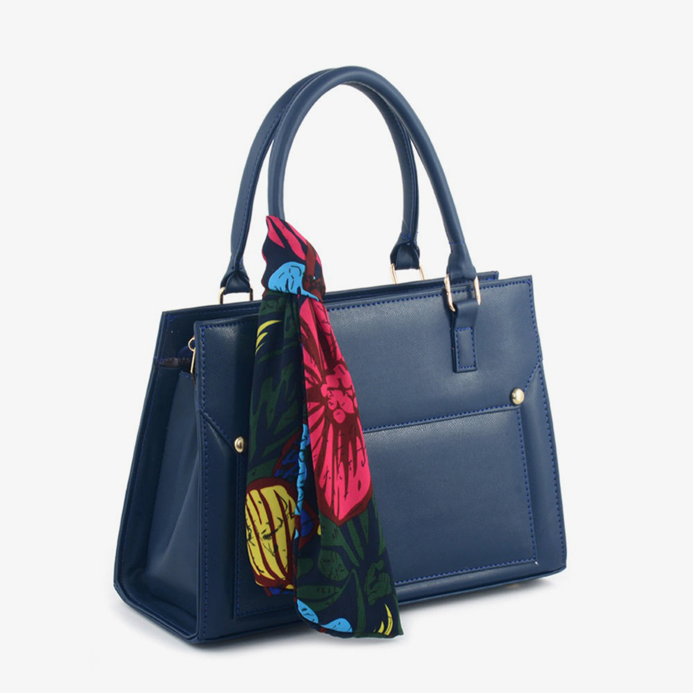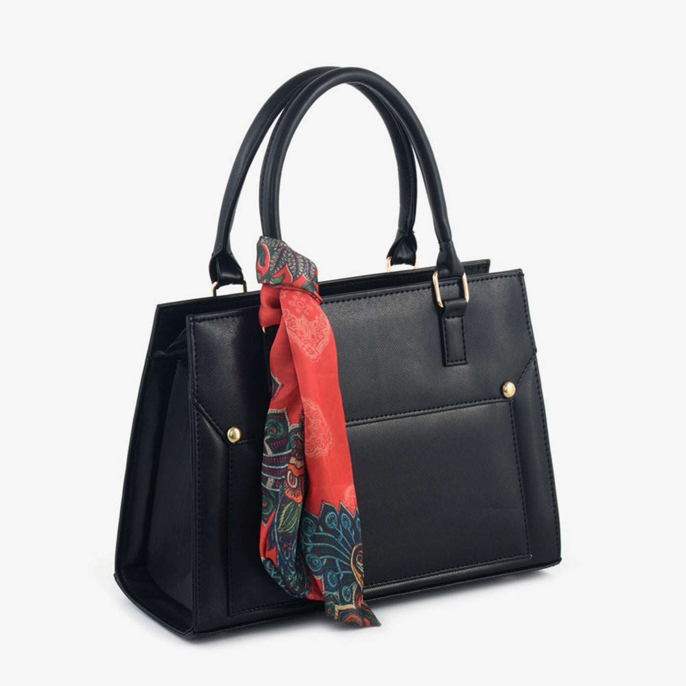Indulge in contemporary style with our shoulder bag, meticulously crafted from durable Synthetic PU. The fabric-lined interior features three well-organized compartments, providing ample space for your essentials. With a generous width of 16 inches, depth of 4.5 inches, and a height of 10 inches, this bag effortlessly combines fashion with functionality. The chic handles offer comfortable carrying, while the added scarf feature enhances its unique charm. Elevate your ensemble with this versatile shoulder bag, designed for both practicality and trendsetting design. Experience the perfect blend of fashion and convenience with our thoughtfully crafted accessory.