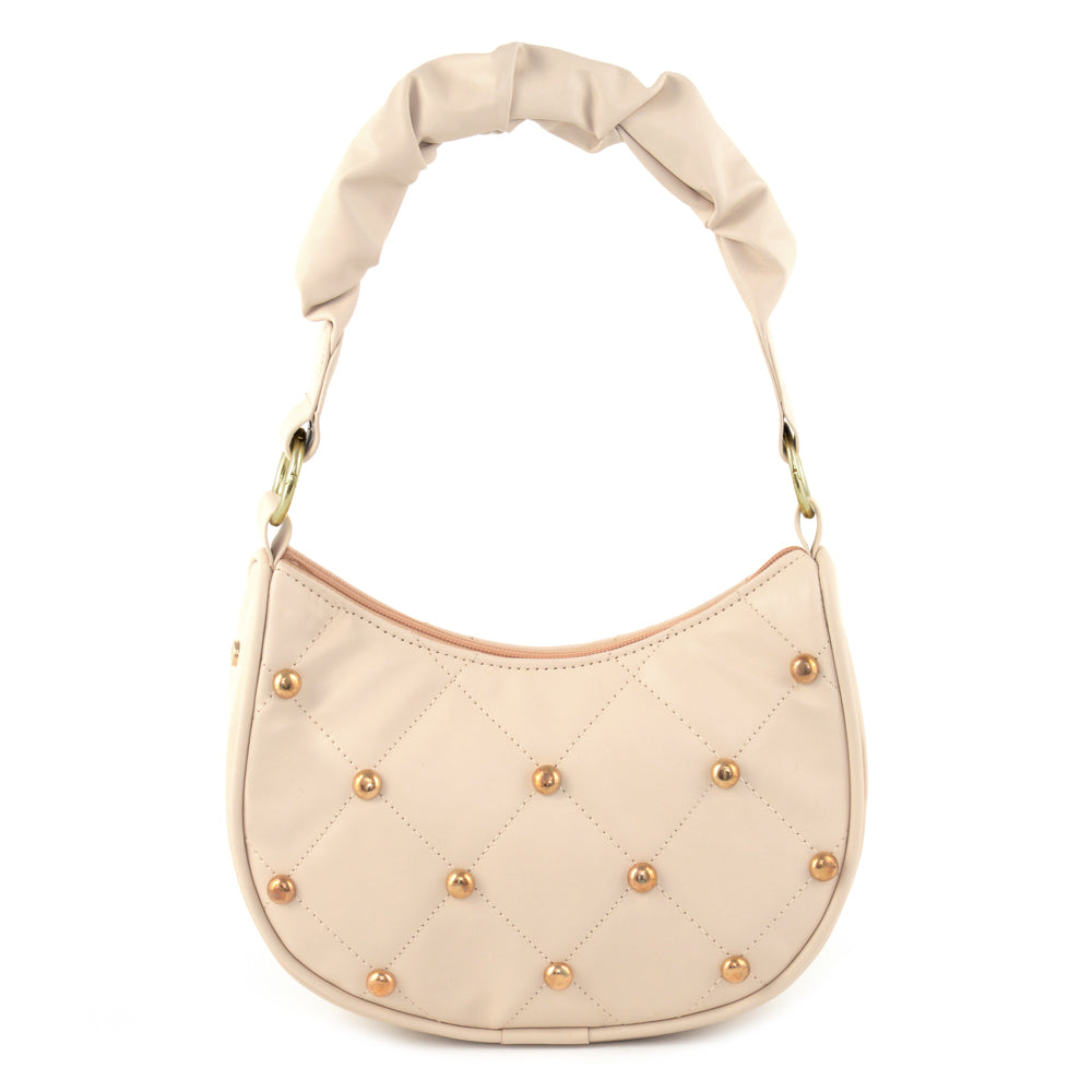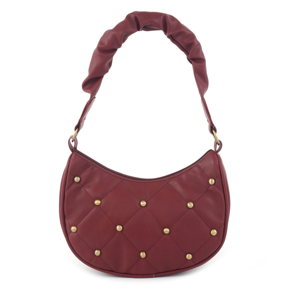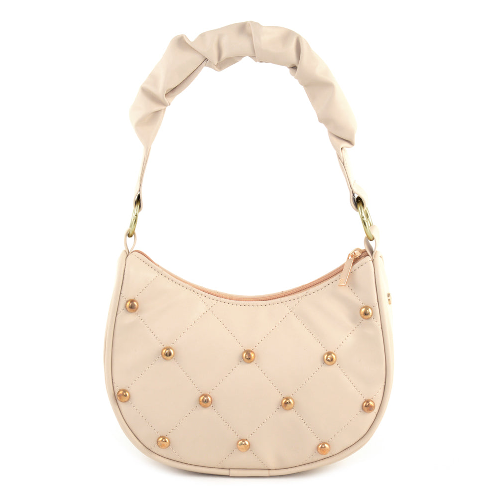 Step into contemporary elegance with our Synthetic PU shoulder bag, featuring a fabric-lined interior and two well-organized compartments. Meticulously crafted, this bag boasts dimensions of 12 inches in width, 4.5 inches in depth, and 10 inches in height. The pleated handle strap adds a touch of sophistication, while the studs feature enhances its unique charm. Elevate your ensemble effortlessly with this versatile shoulder bag, designed for both practicality and trendsetting design. Immerse yourself in the perfect fusion of fashion and convenience with our thoughtfully crafted accessory, a must-have for the modern, stylish individual.
