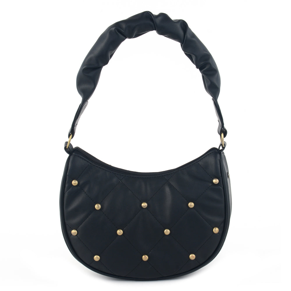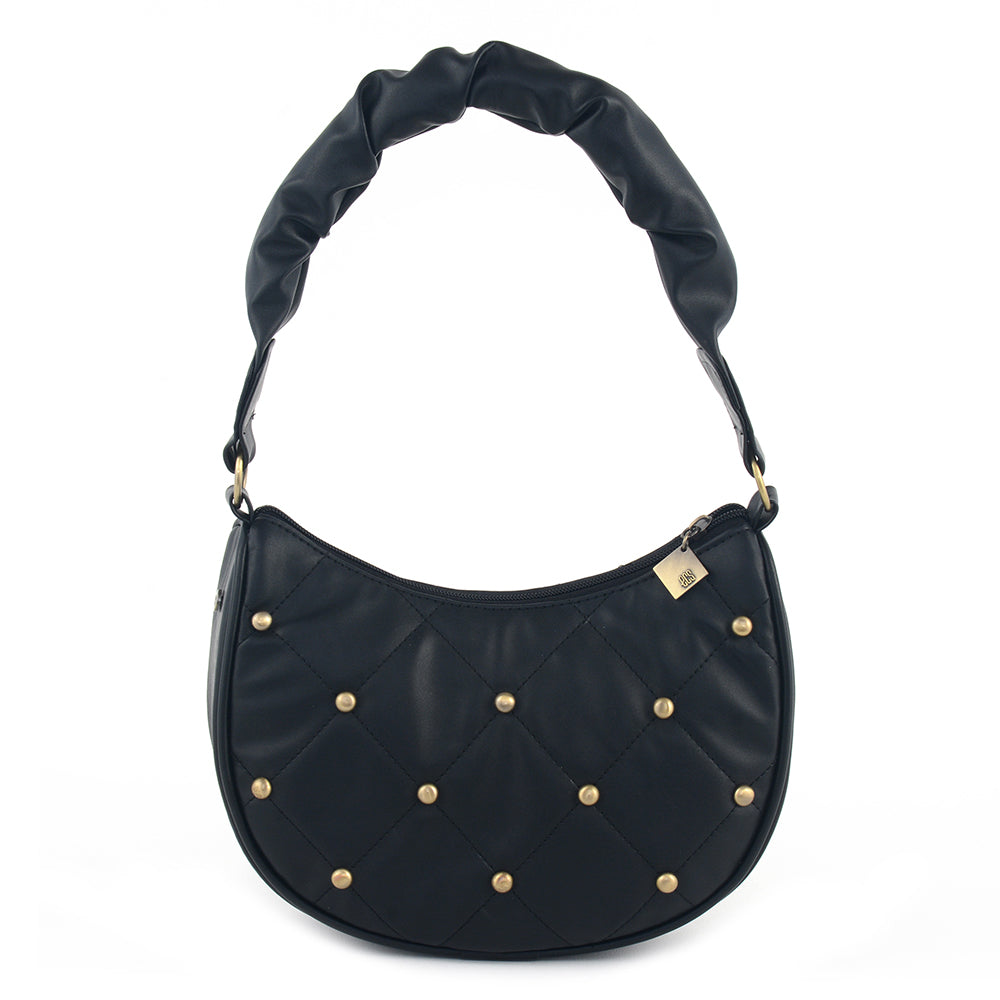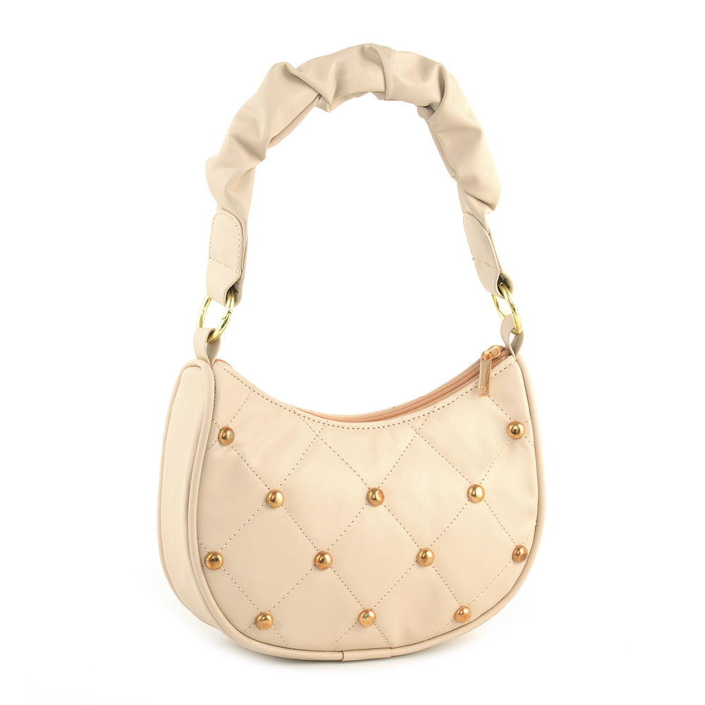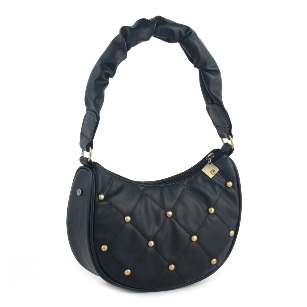 Step into contemporary elegance with our Synthetic PU shoulder bag, featuring a fabric-lined interior and two well-organized compartments. Meticulously crafted, this bag boasts dimensions of 12 inches in width, 4.5 inches in depth, and 10 inches in height. The pleated handle strap adds a touch of sophistication, while the studs feature enhances its unique charm. Elevate your ensemble effortlessly with this versatile shoulder bag, designed for both practicality and trendsetting design. Immerse yourself in the perfect fusion of fashion and convenience with our thoughtfully crafted accessory, a must-have for the modern, stylish individual.