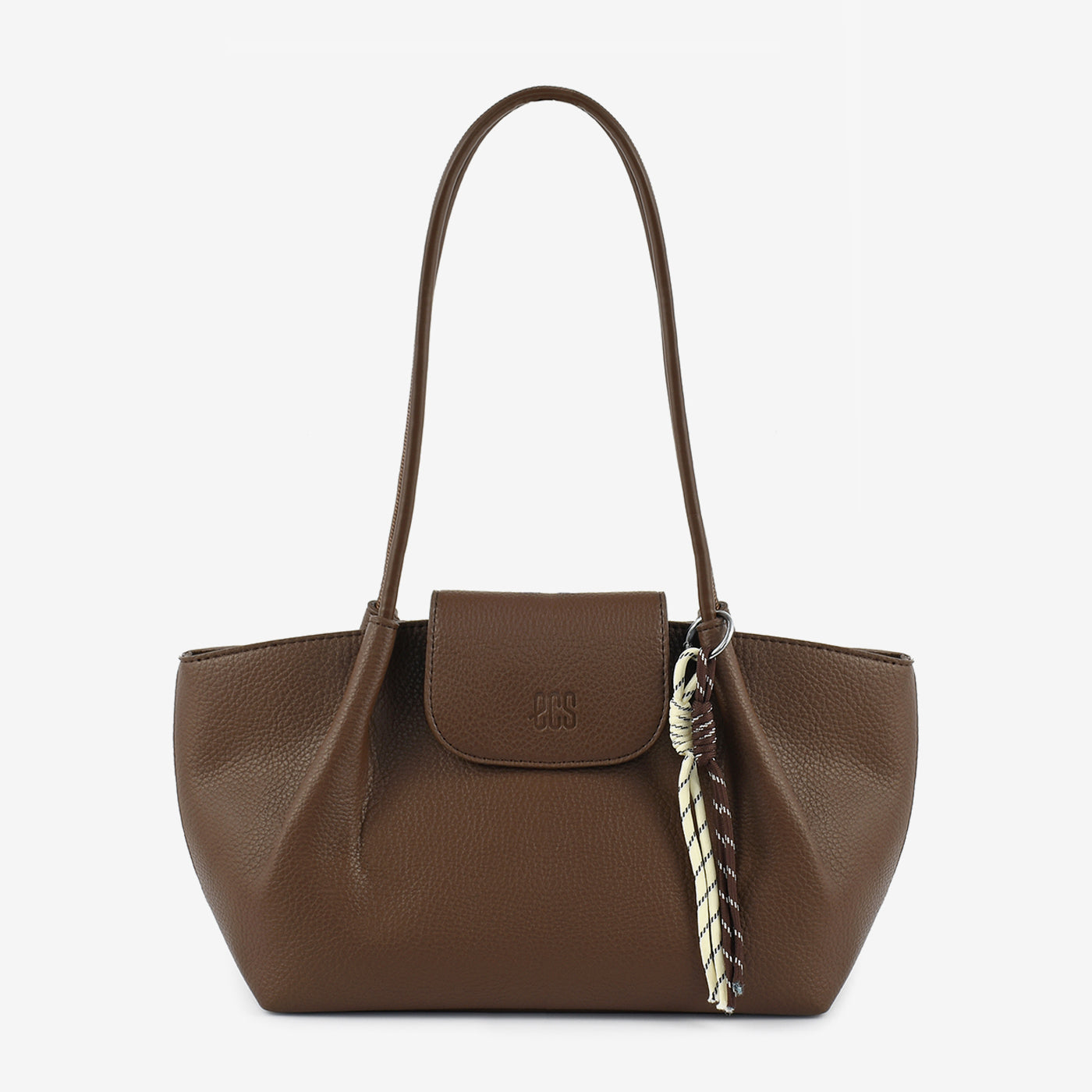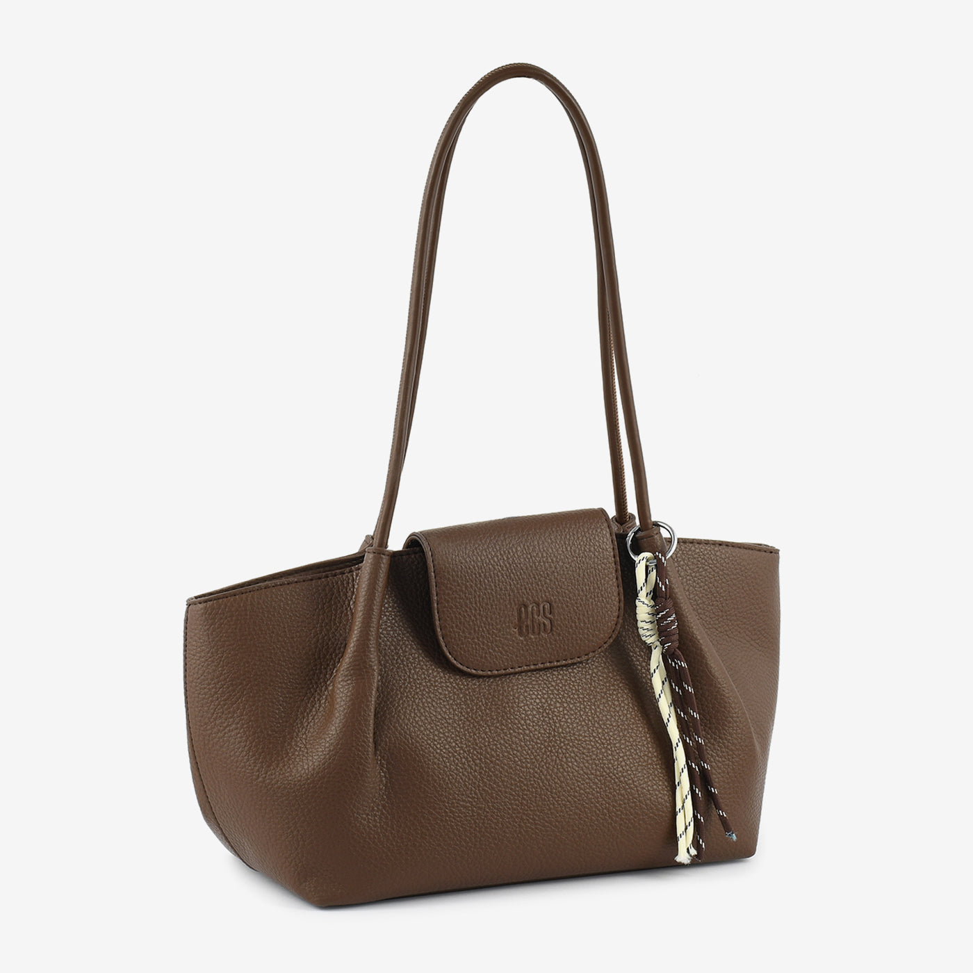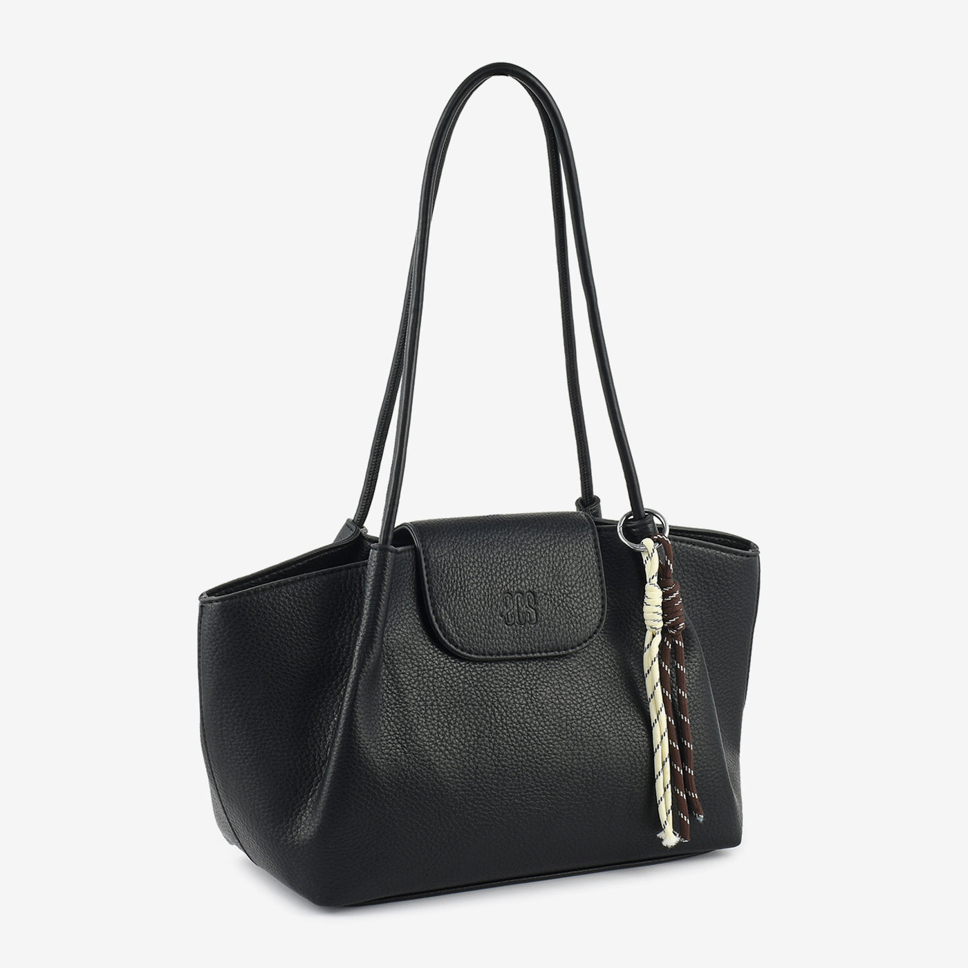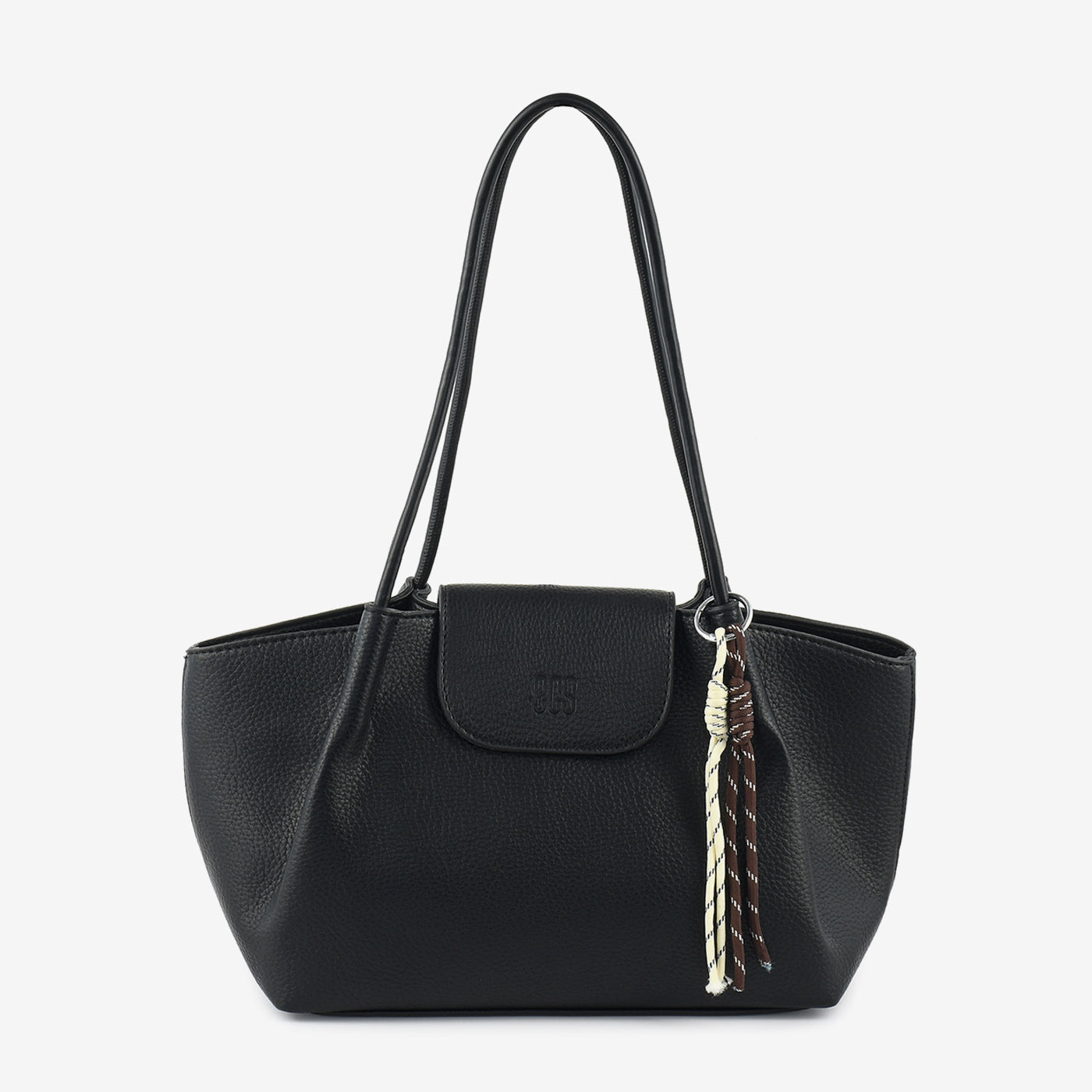 • Design: Structured shoulder bag with front flap closure and decorative tassel detail