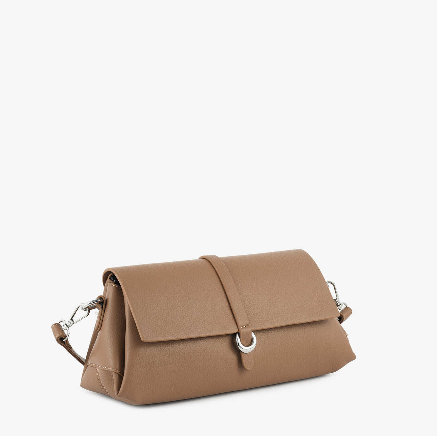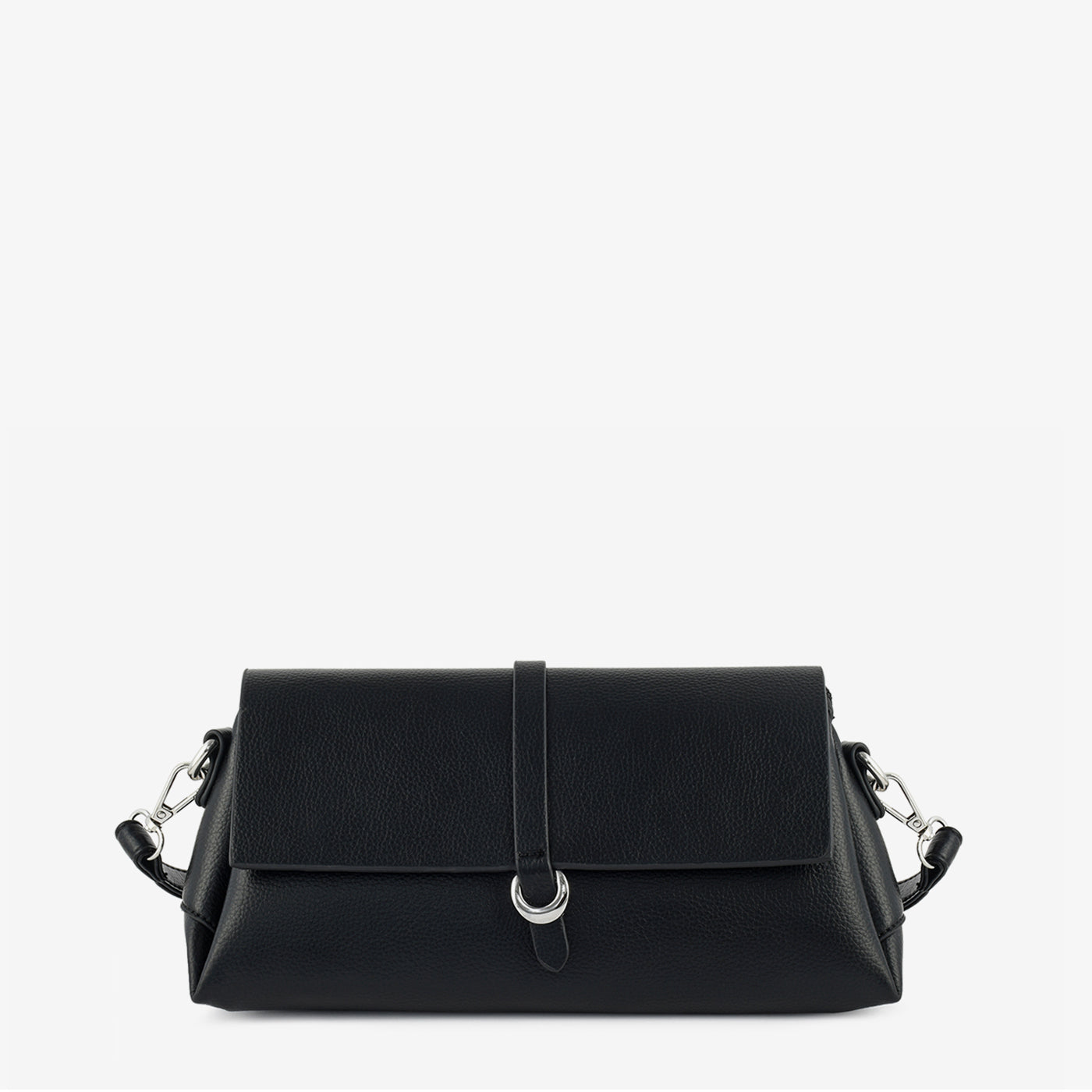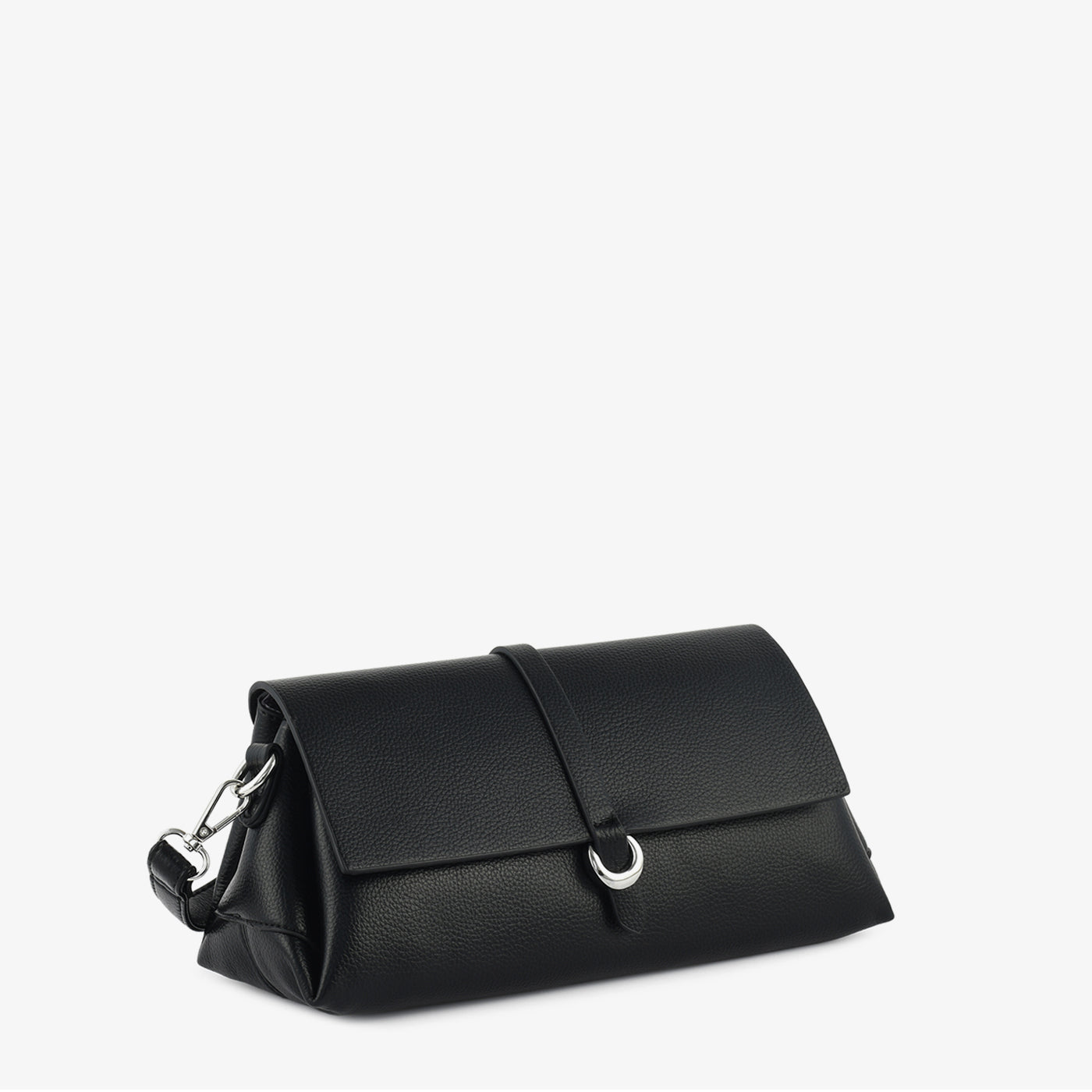 This shoulder bag showcases a refined structured silhouette with a modern flap design. Crafted with a smooth textured exterior, it delivers both durability and timeless elegance. The front strap detail with metallic ring accent adds a subtle statement to its minimal look. Its spacious interior offers room for your daily essentials while maintaining a sleek profile. The detachable strap allows versatile styling for shoulder or crossbody wear. Secure closure ensures your belongings stay organized and protected throughout the day. Perfect for work meetings, casual outings, or evening gatherings with effortless charm.
