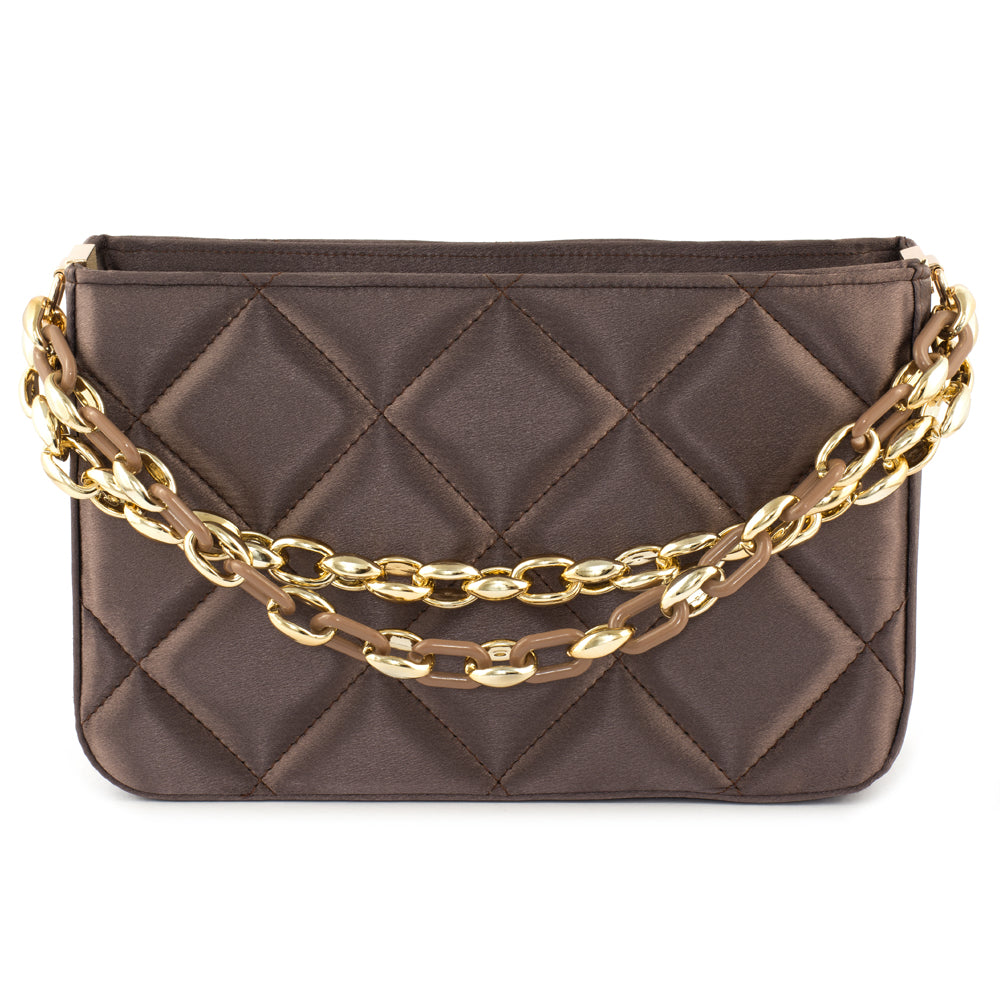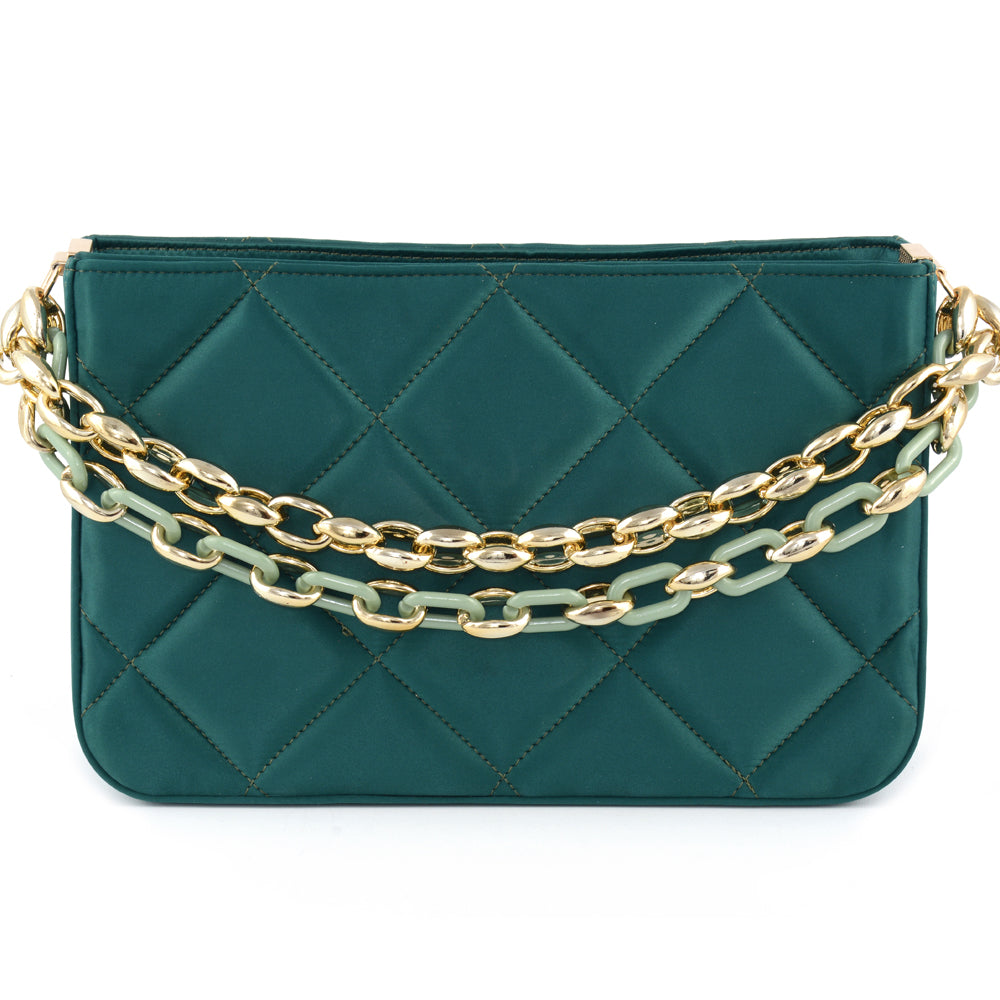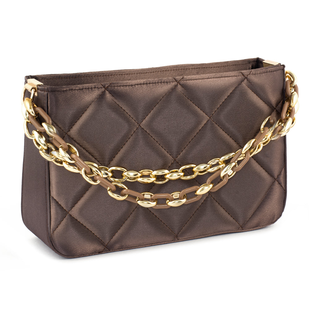 Featuring oversized quilted panels and a chunky double-chain handle, this bag exudes confident sophistication. The soft silhouette balances its strong detailing for everyday impact.