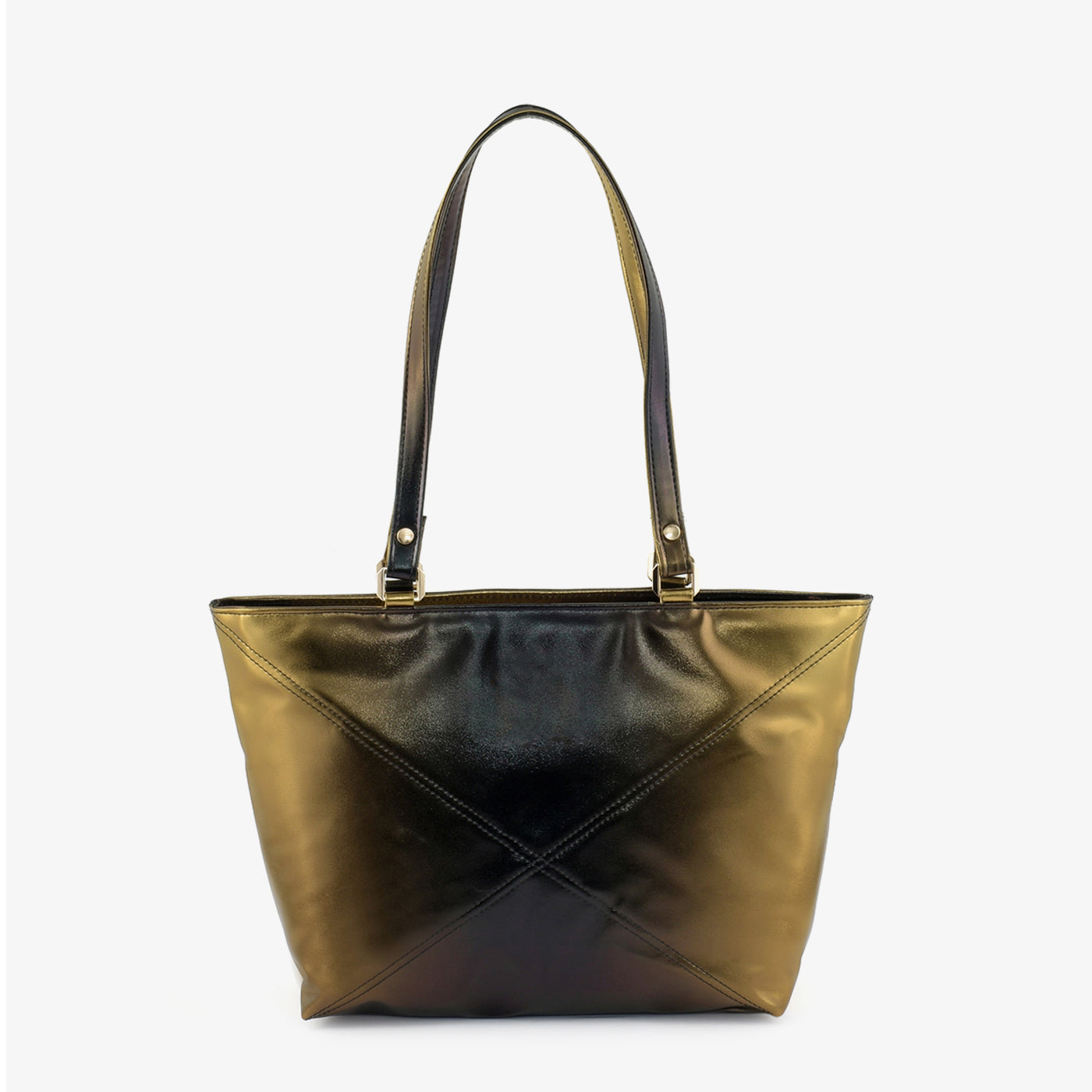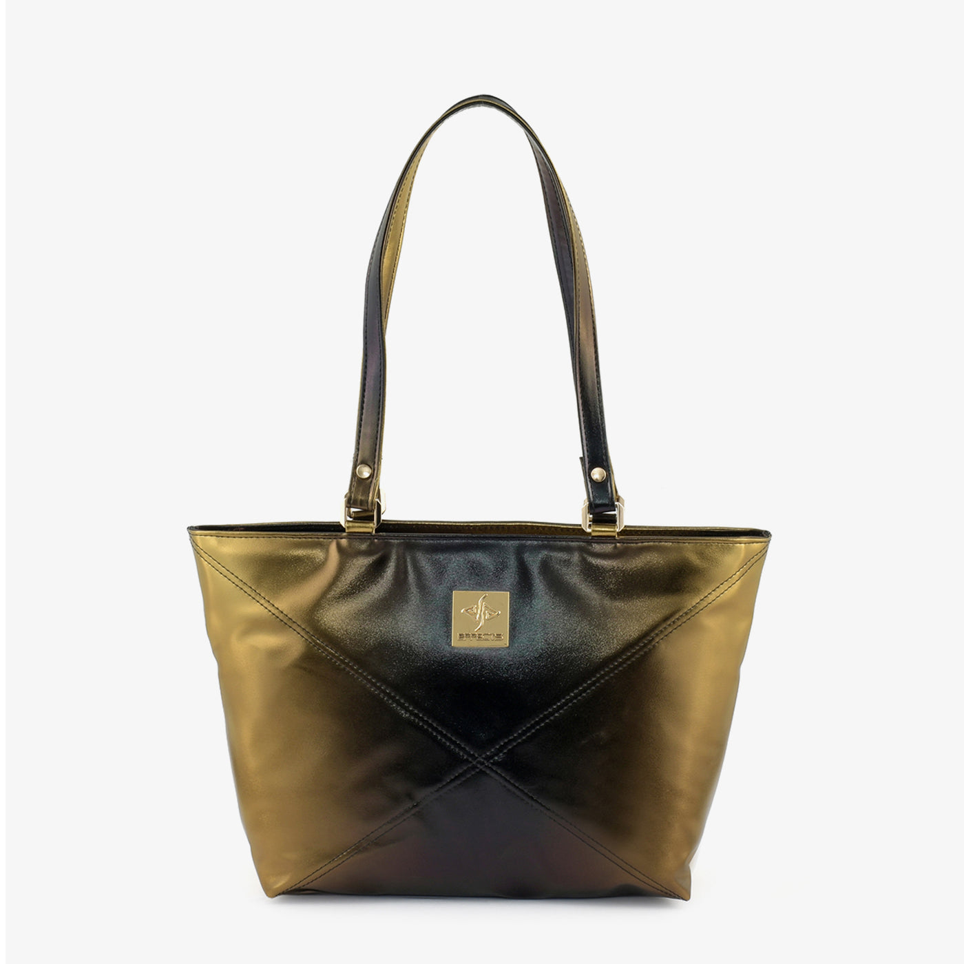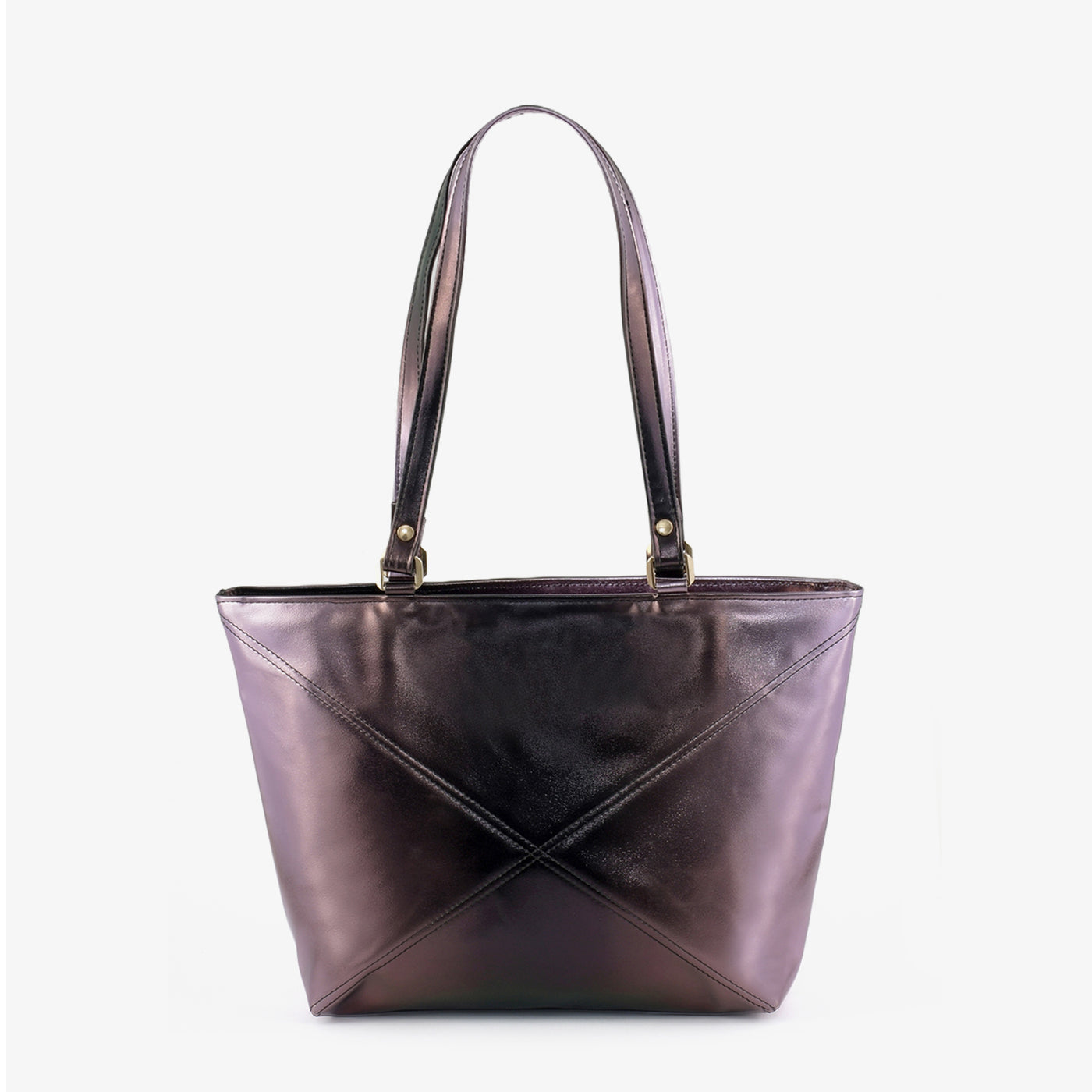 Carry your essentials in style with the "Geometric Gleam Tote". This striking metallic brown tote features a unique geometric design, adding a touch of modern sophistication to any outfit. The sturdy top handles and spacious interior make it perfect for everyday use.