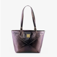 Carry your essentials in style with the "Geometric Gleam Tote". This striking metallic brown tote features a unique geometric design, adding a touch of modern sophistication to any outfit....