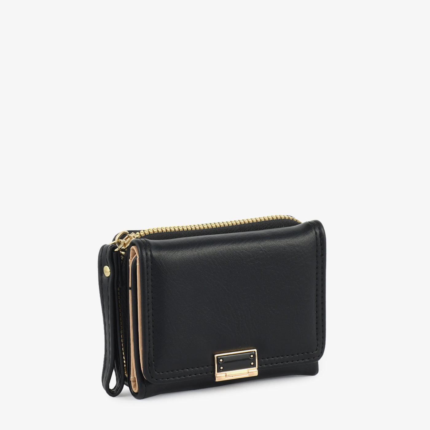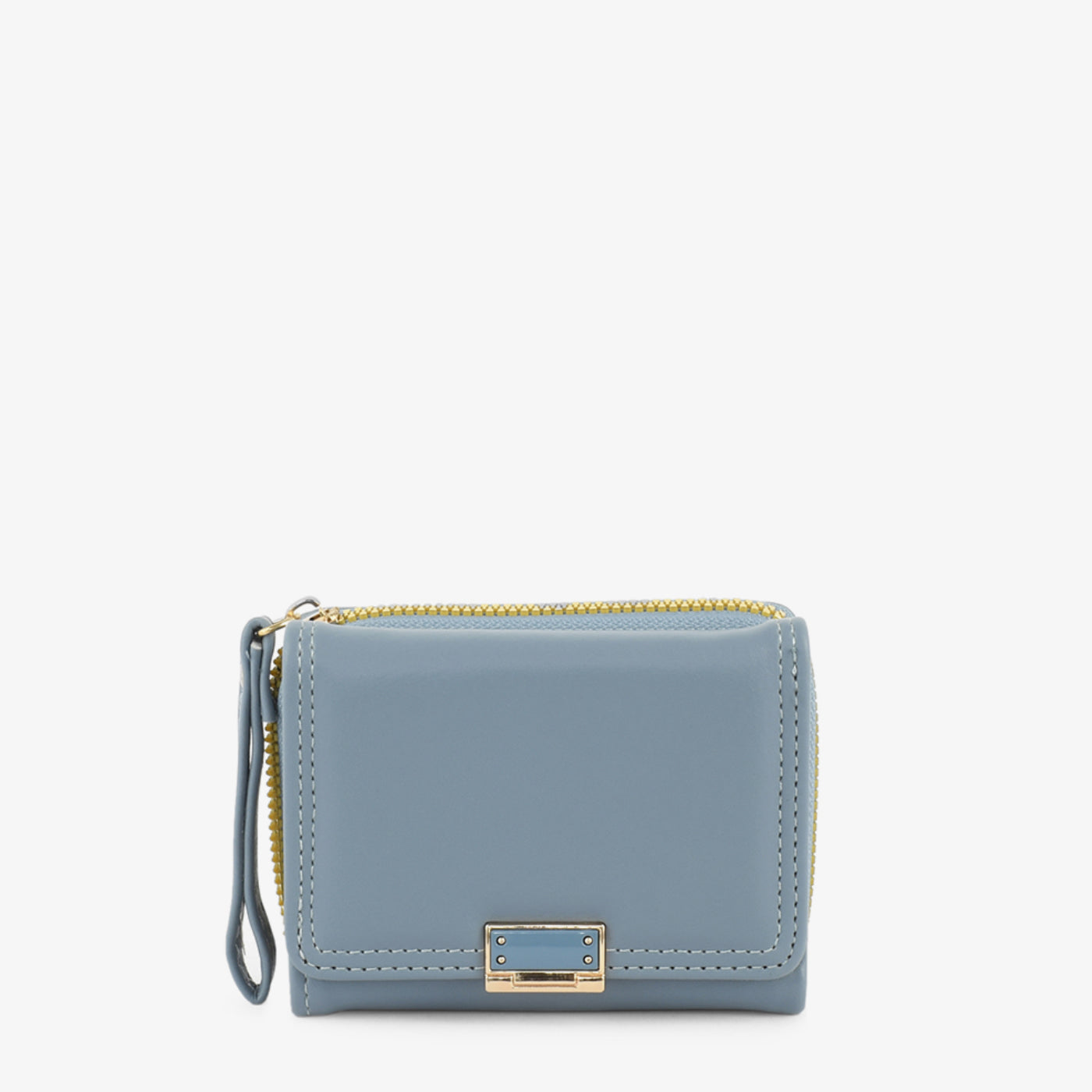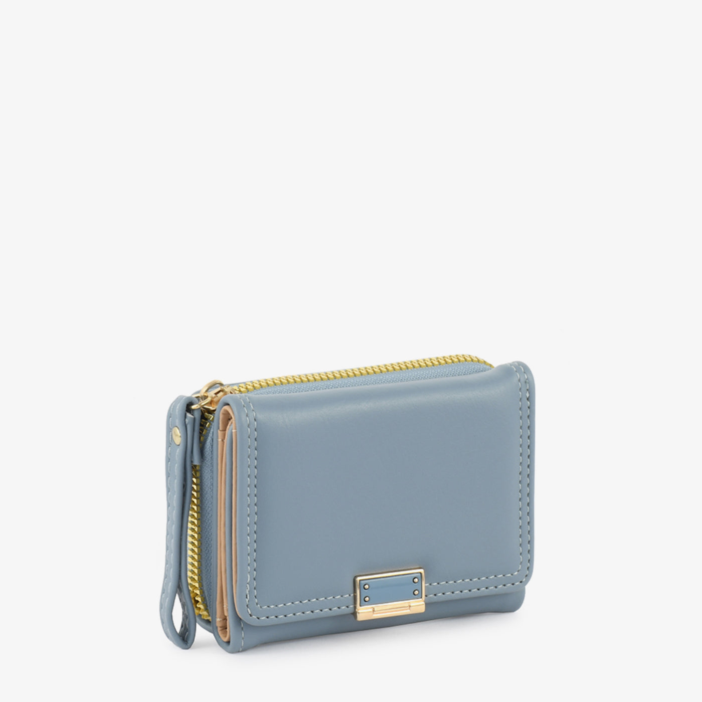 Defined by its clean flap design and striking metallic clasp, this wallet balances boldness with sophistication. Compact, durable, and designed for daily utility.