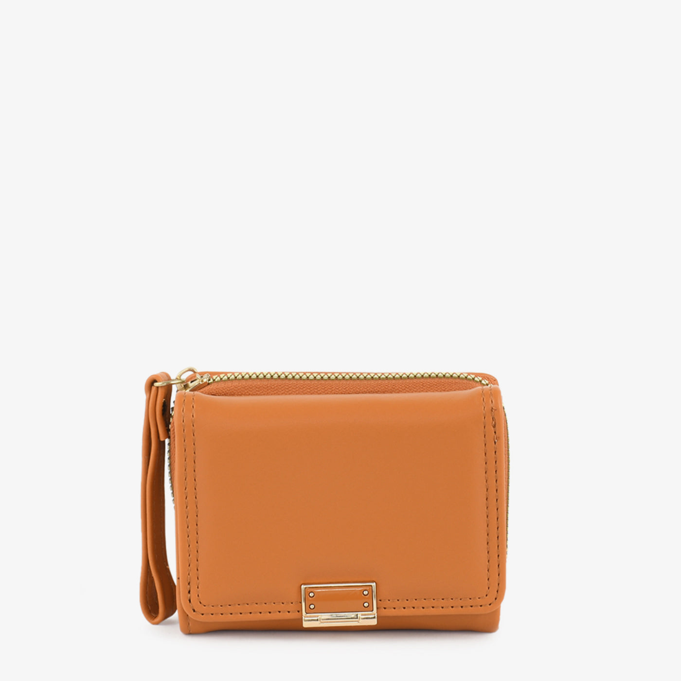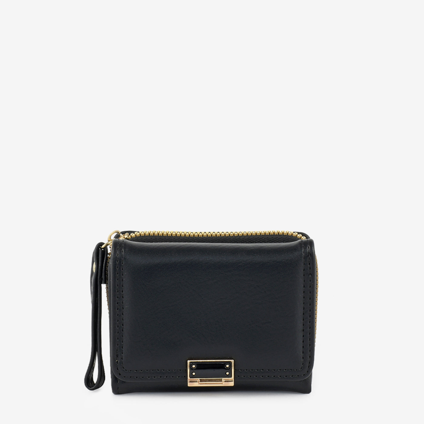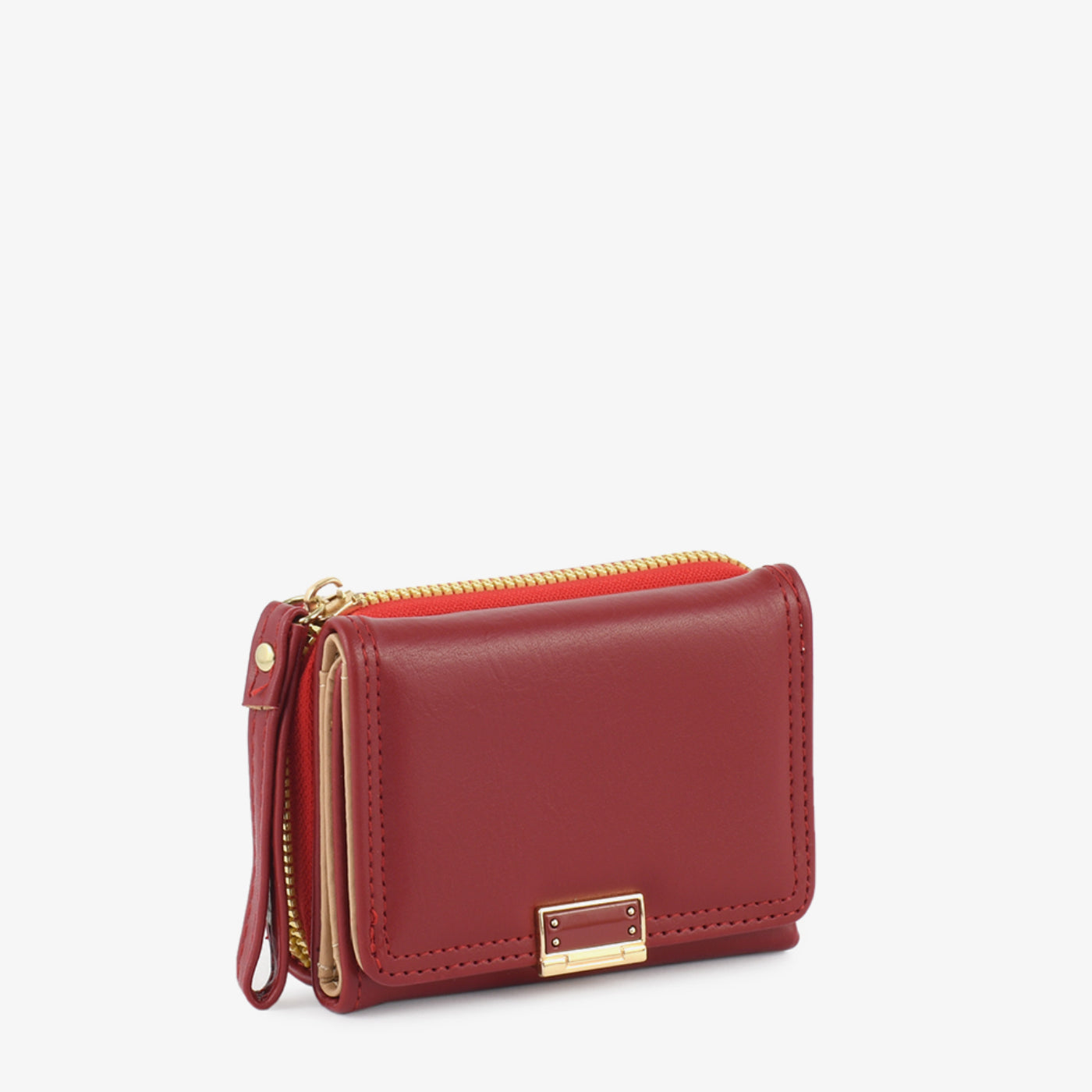Defined by its clean flap design and striking metallic clasp, this wallet balances boldness with sophistication. Compact, durable, and designed for daily utility.
