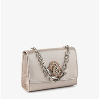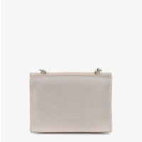 Carry a touch of modern glamour with the "Twilight Sparkle Chain Bag." This chic silver-toned bag features a subtle shimmer and a striking, jeweled heart-shaped embellishment at the center. The bold silver chain strap adds an edgy yet elegant touch, perfect for adding flair to your look.