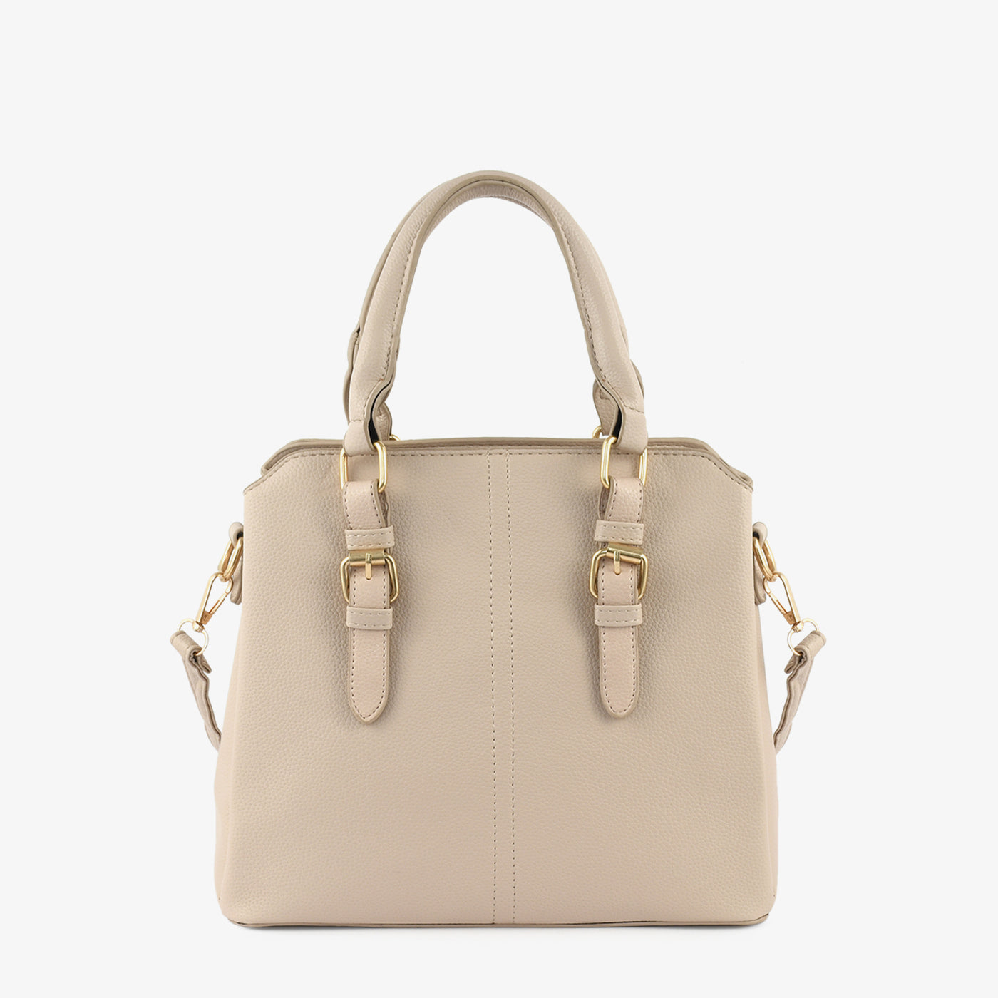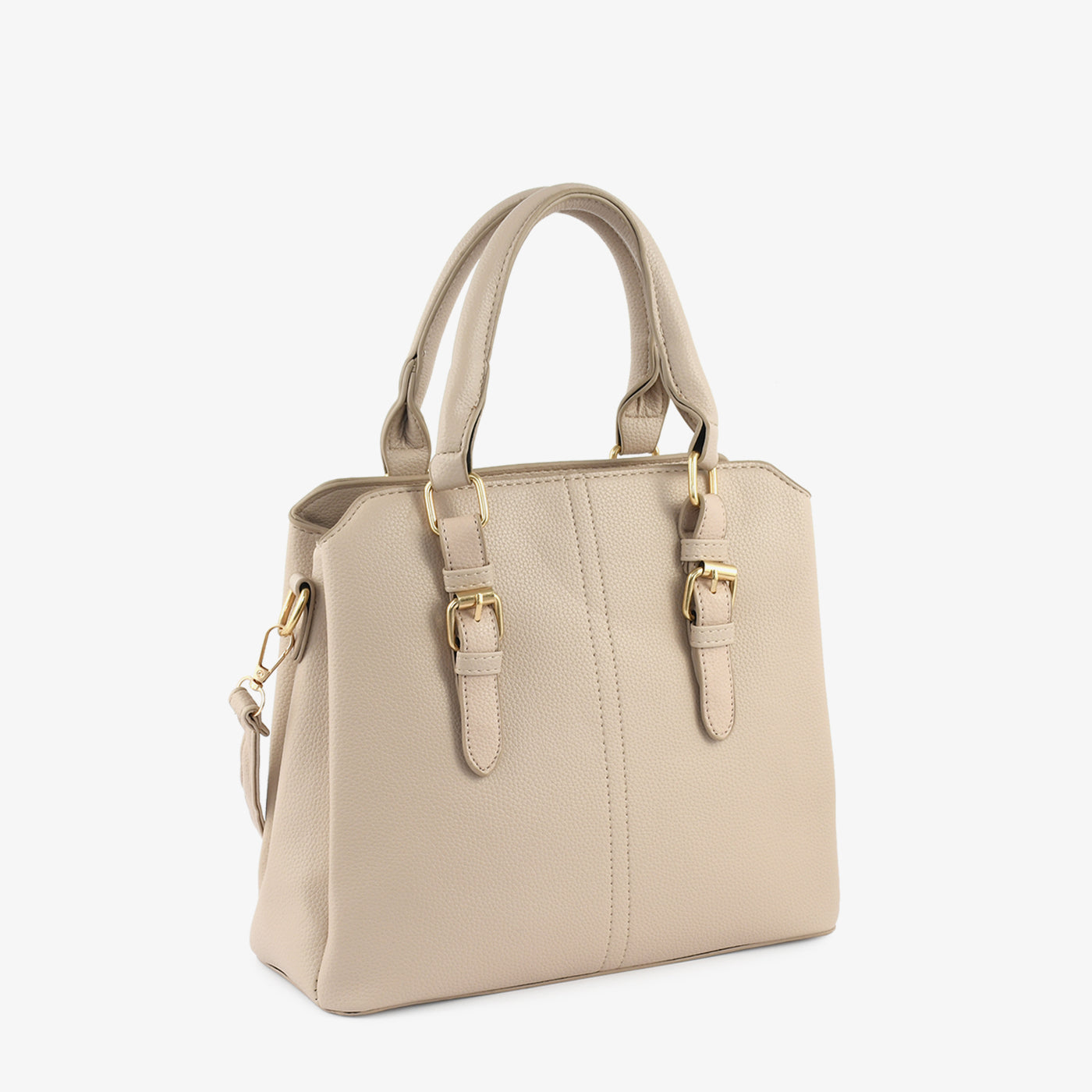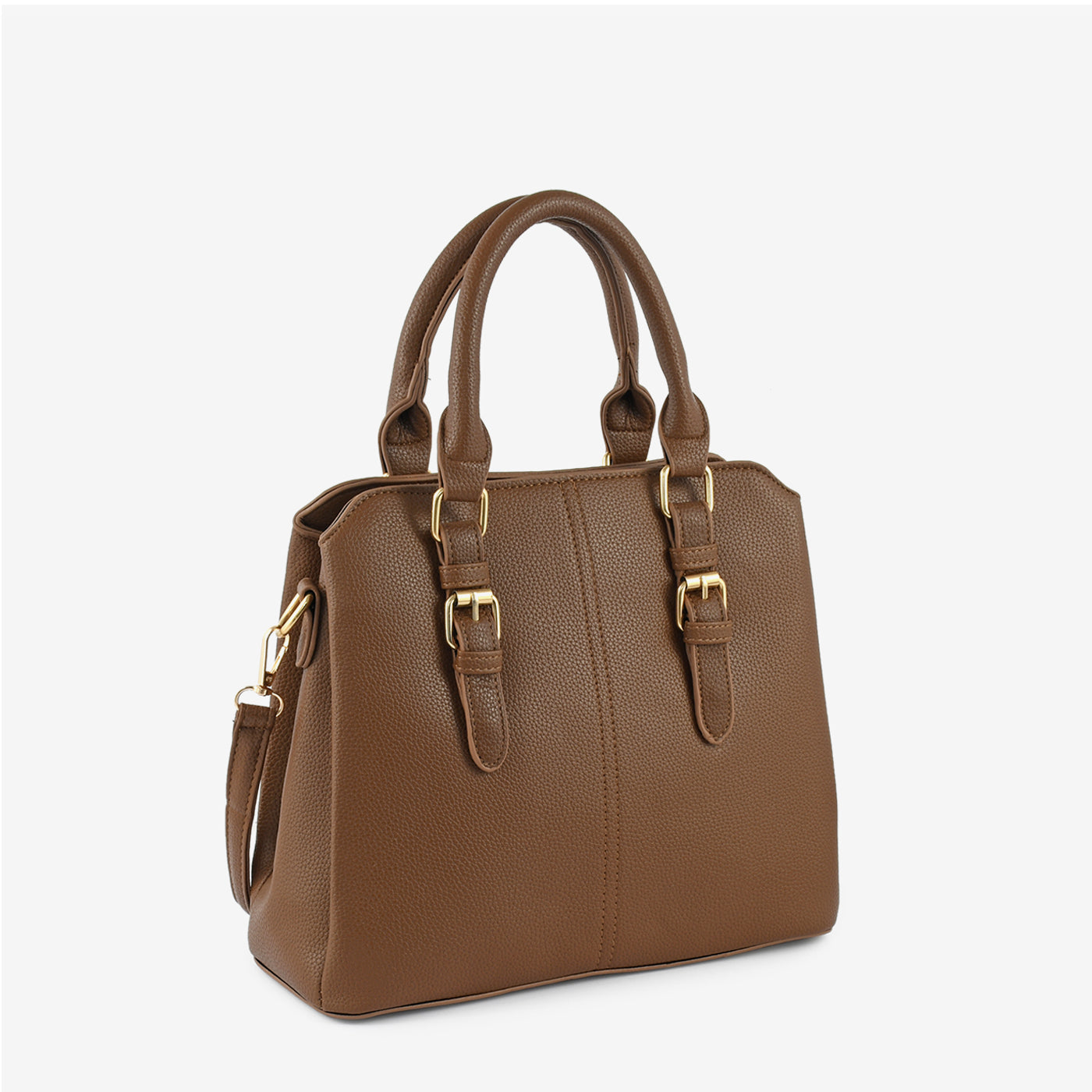 Elevate your everyday style with this Classic Structured Handbag. Crafted from premium textured faux leather, this timeless piece combines practicality with sophistication. The gold-tone buckle accents add a polished touch, while the detachable strap offers versatile carrying options.