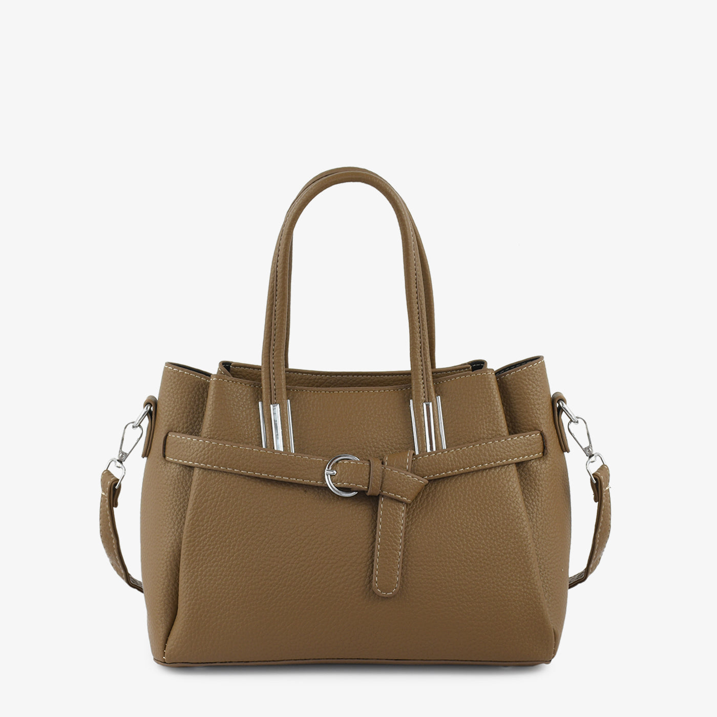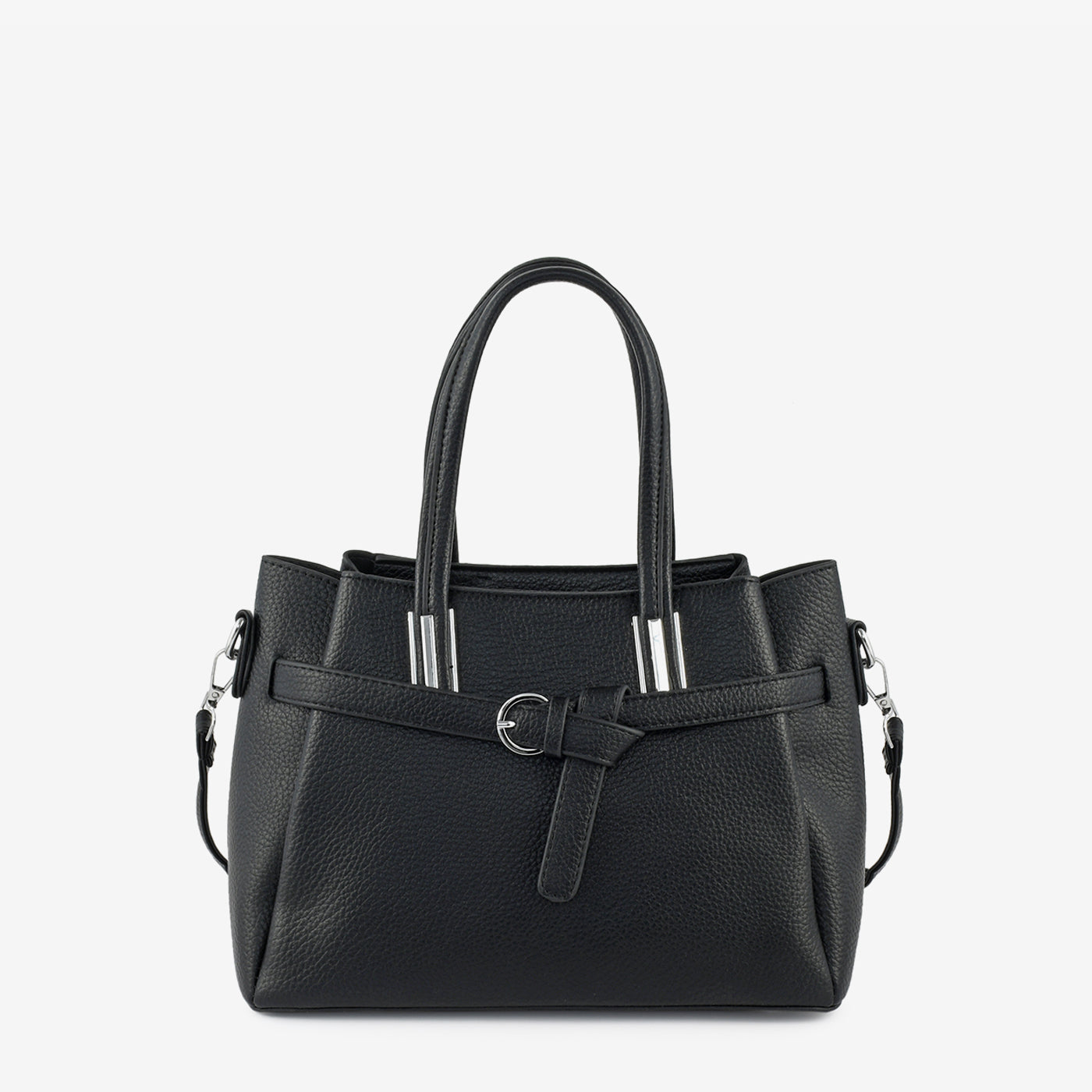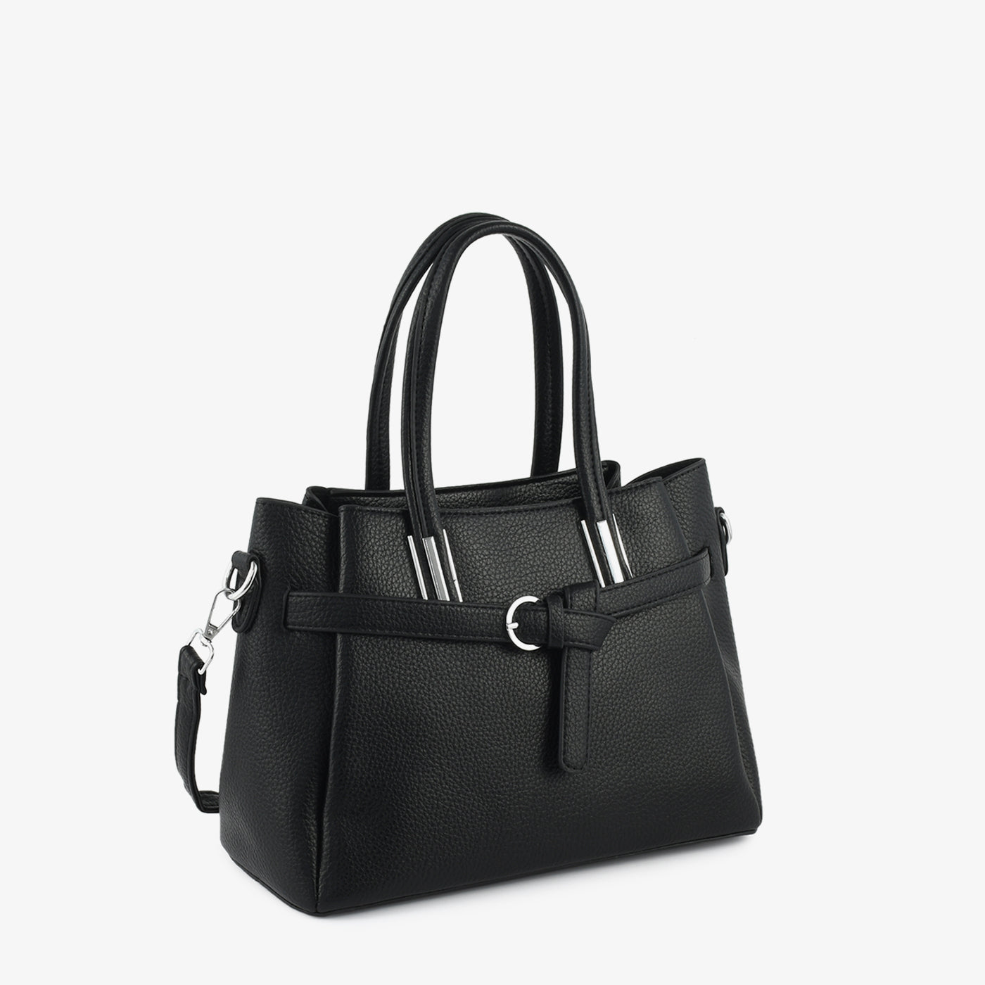 Add a touch of sophistication to your look with this Elegant Textured Handbag. Designed with a sleek silhouette and subtle silver-tone accents, this bag is the perfect companion for work or casual outings. The decorative front belt detail enhances its refined appeal, while the structured shape ensures it keeps its form beautifully.