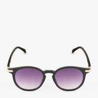 These retro-inspired round sunglasses blend classic and modern elements with a bold top bar.