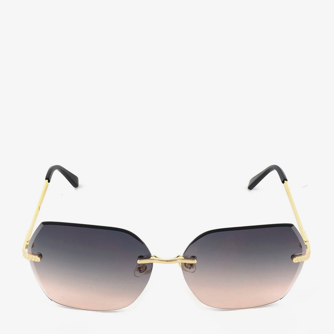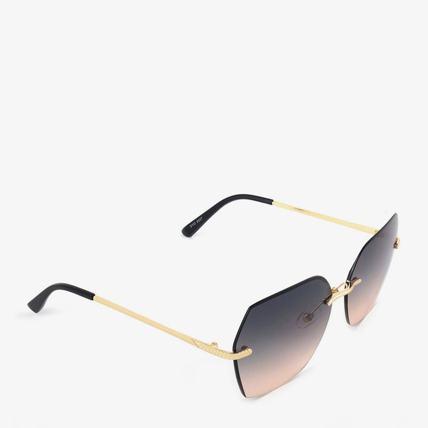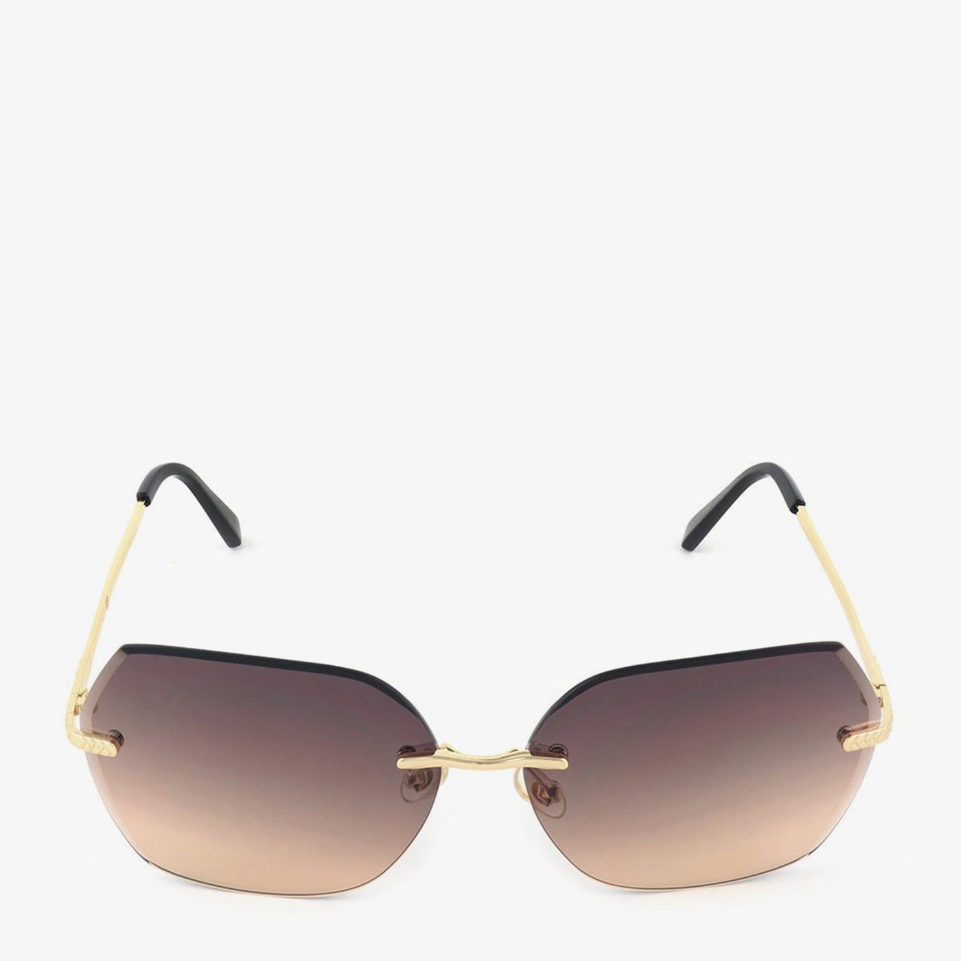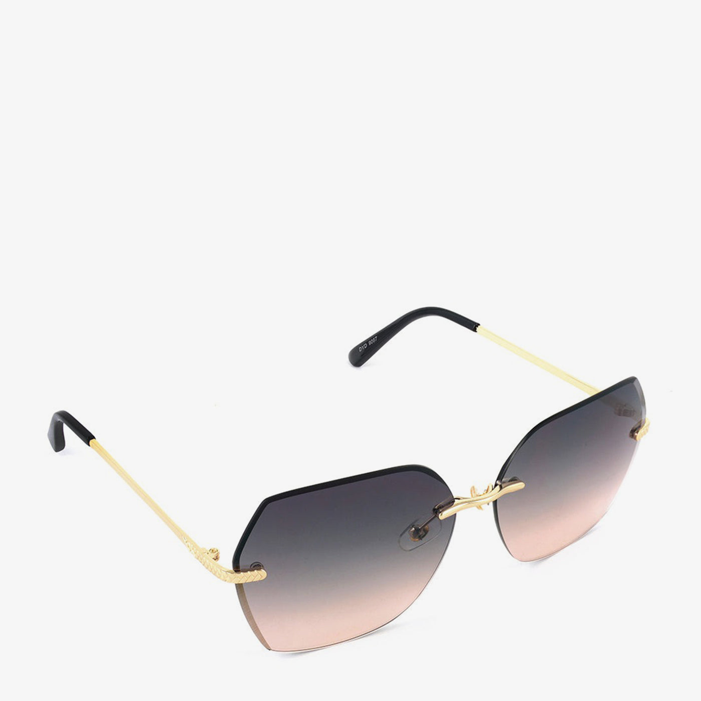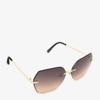 These oversized gradient-lens sunglasses bring a bold statement with a sleek, rimless frame and gold-toned temples. The curved silhouette offers a contemporary touch, perfect for elevating casual or semi-formal outfits.