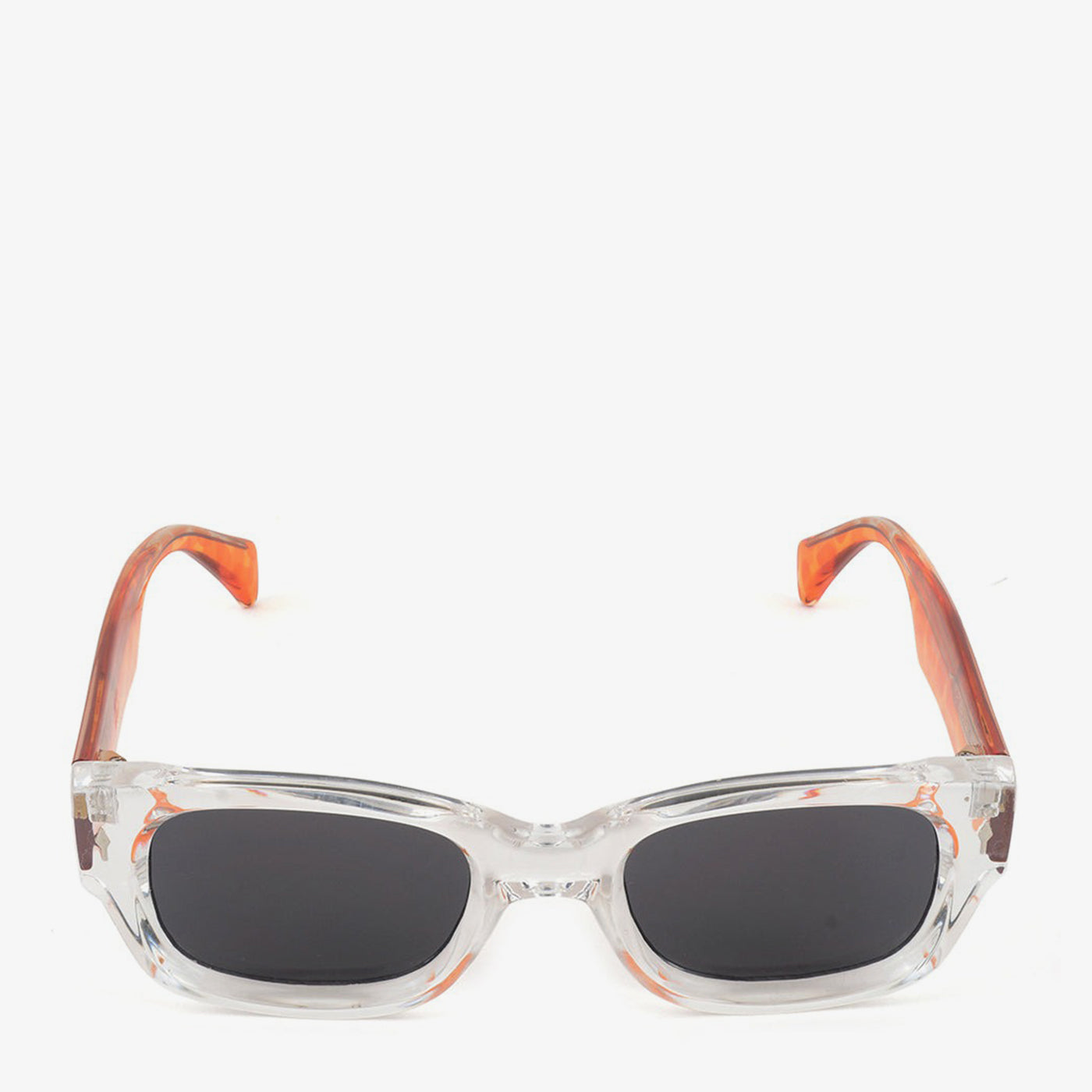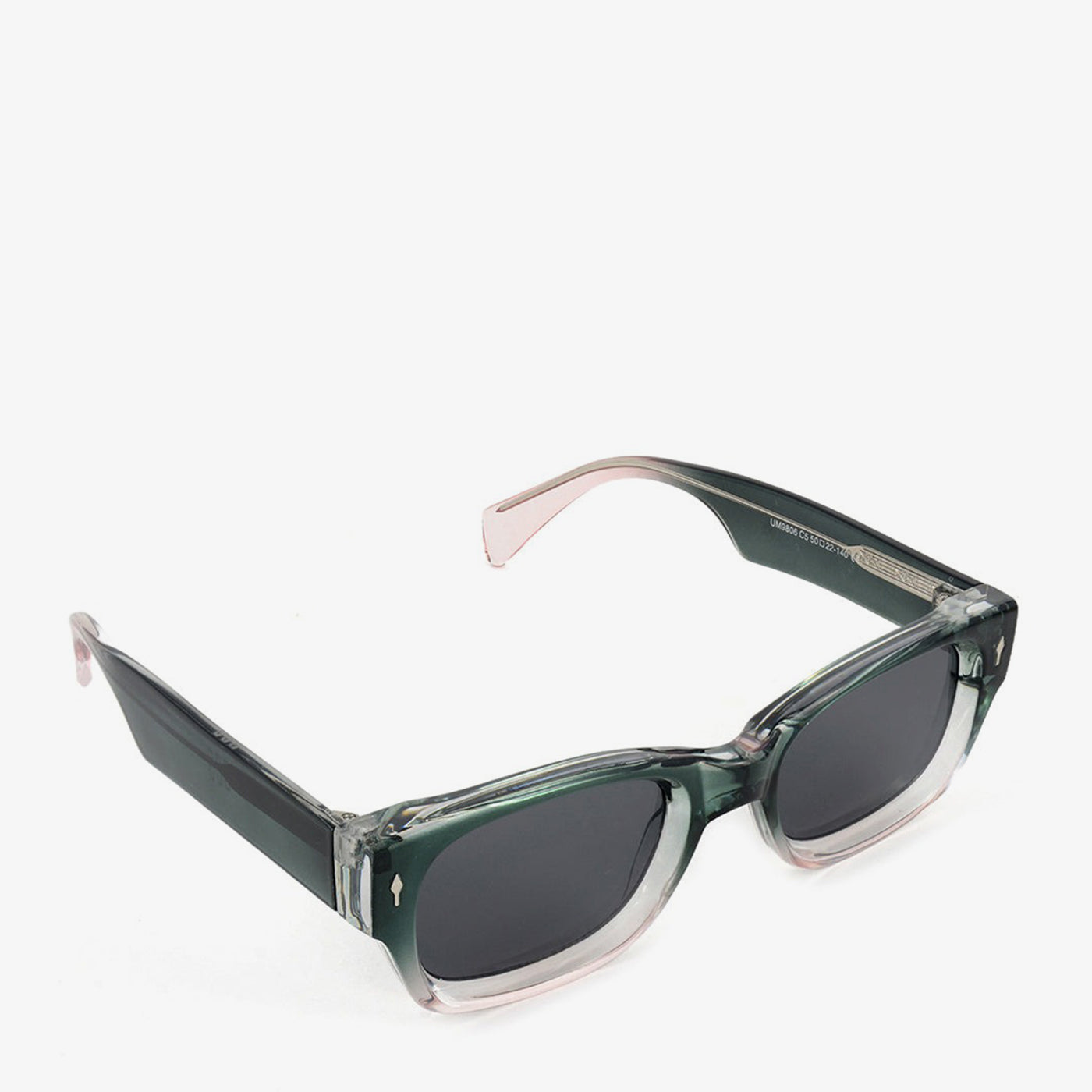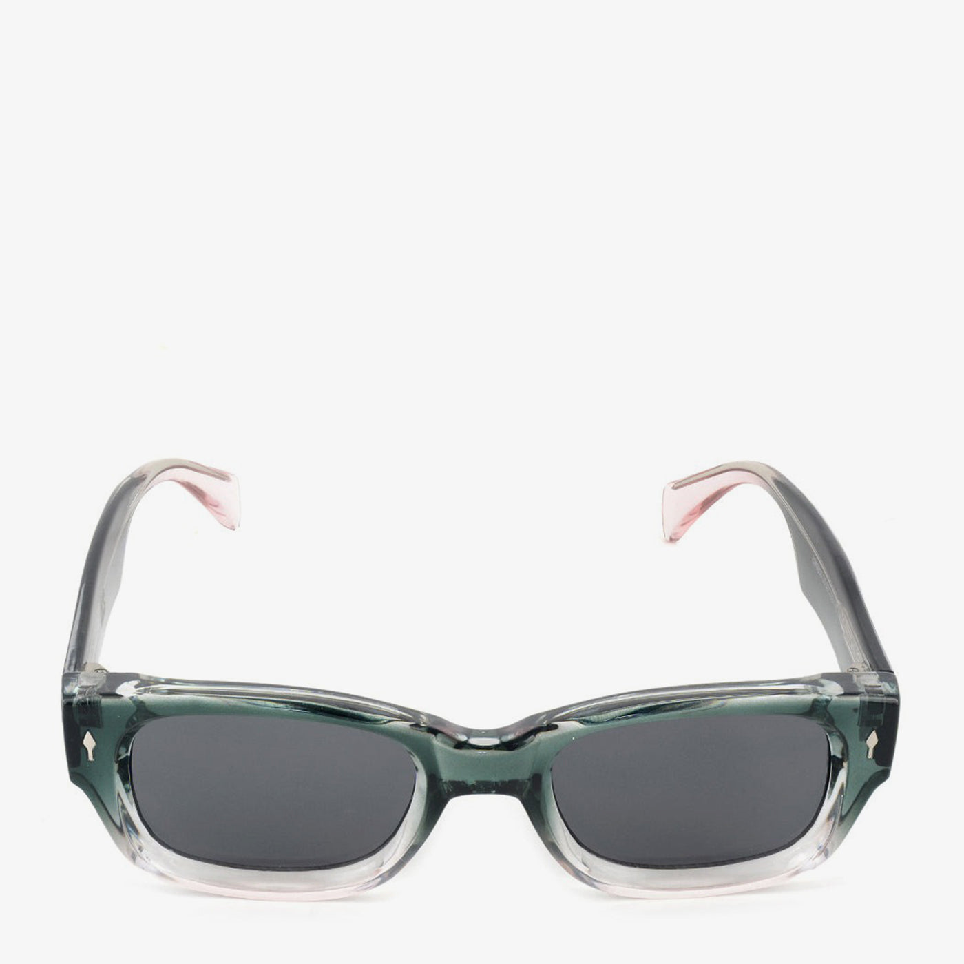 This compact design features a transparent gradient frame with soft green fading into pink edges. The narrow rectangular lenses offer a trendy, retro vibe with a playful color...