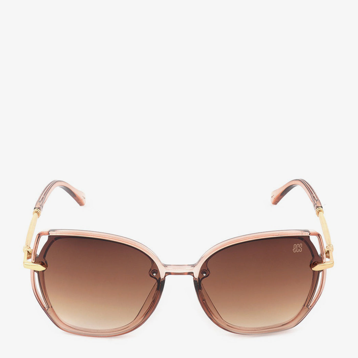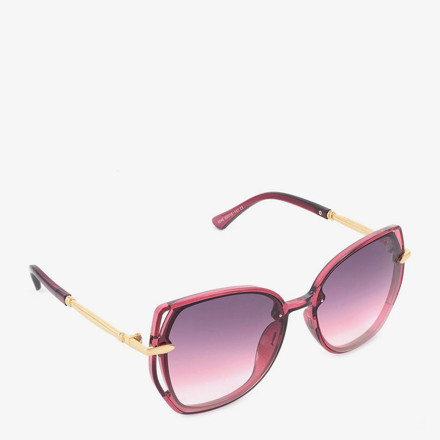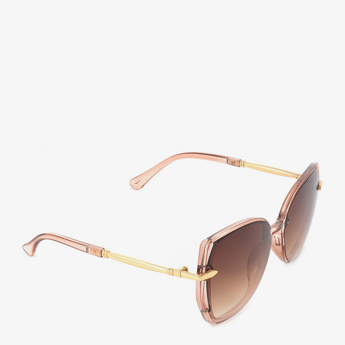 These stylish sunglasses feature a unique angular frame. The lenses have a warm gradient. A fashionable accessory to add a modern touch to your look.