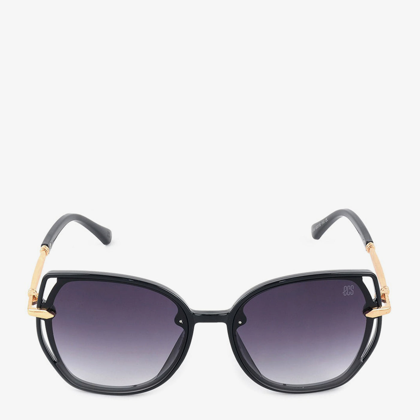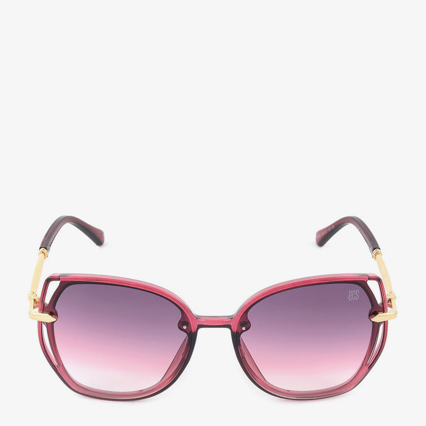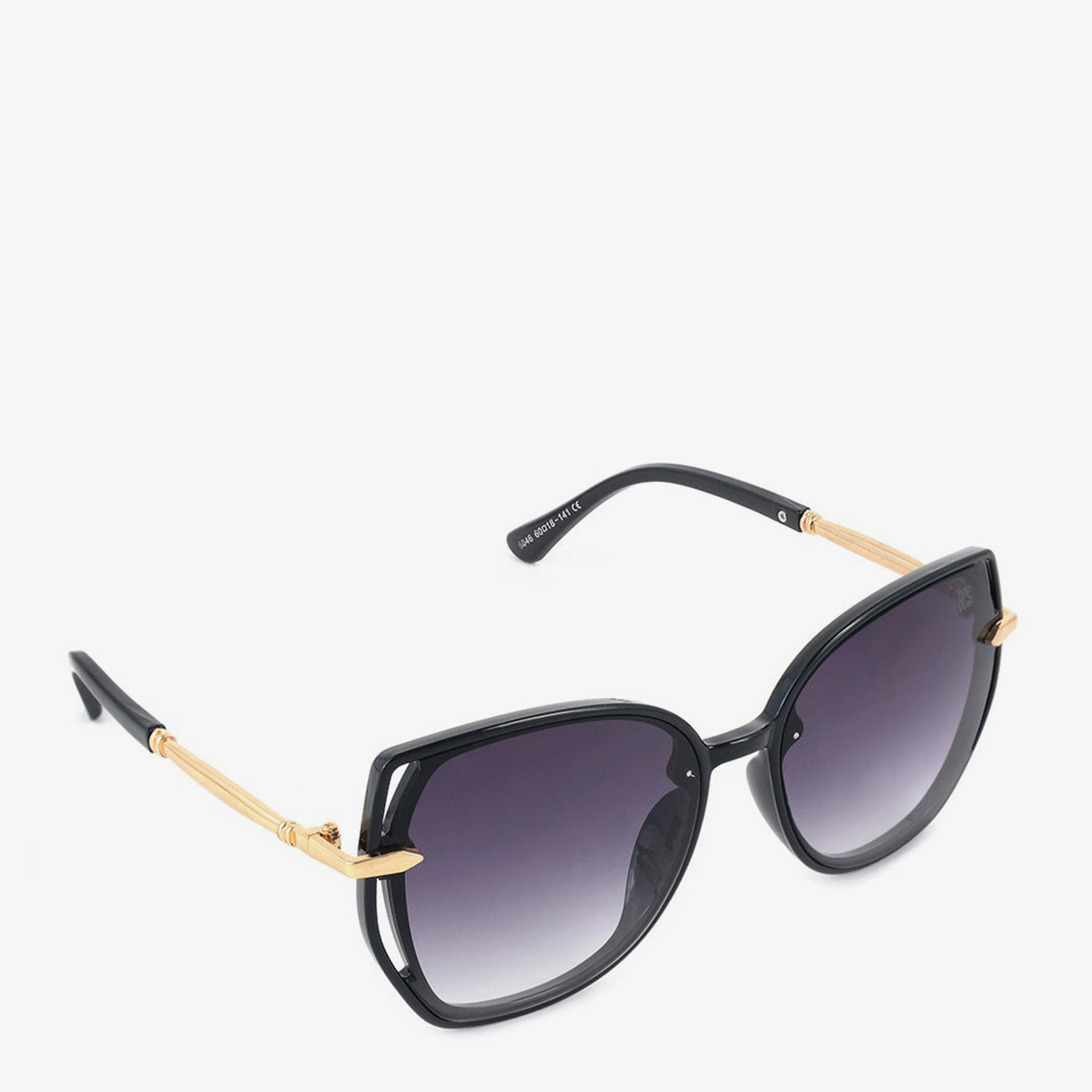 These stylish sunglasses feature a unique angular frame. The lenses have a warm gradient. A fashionable accessory to add a modern touch to your look.