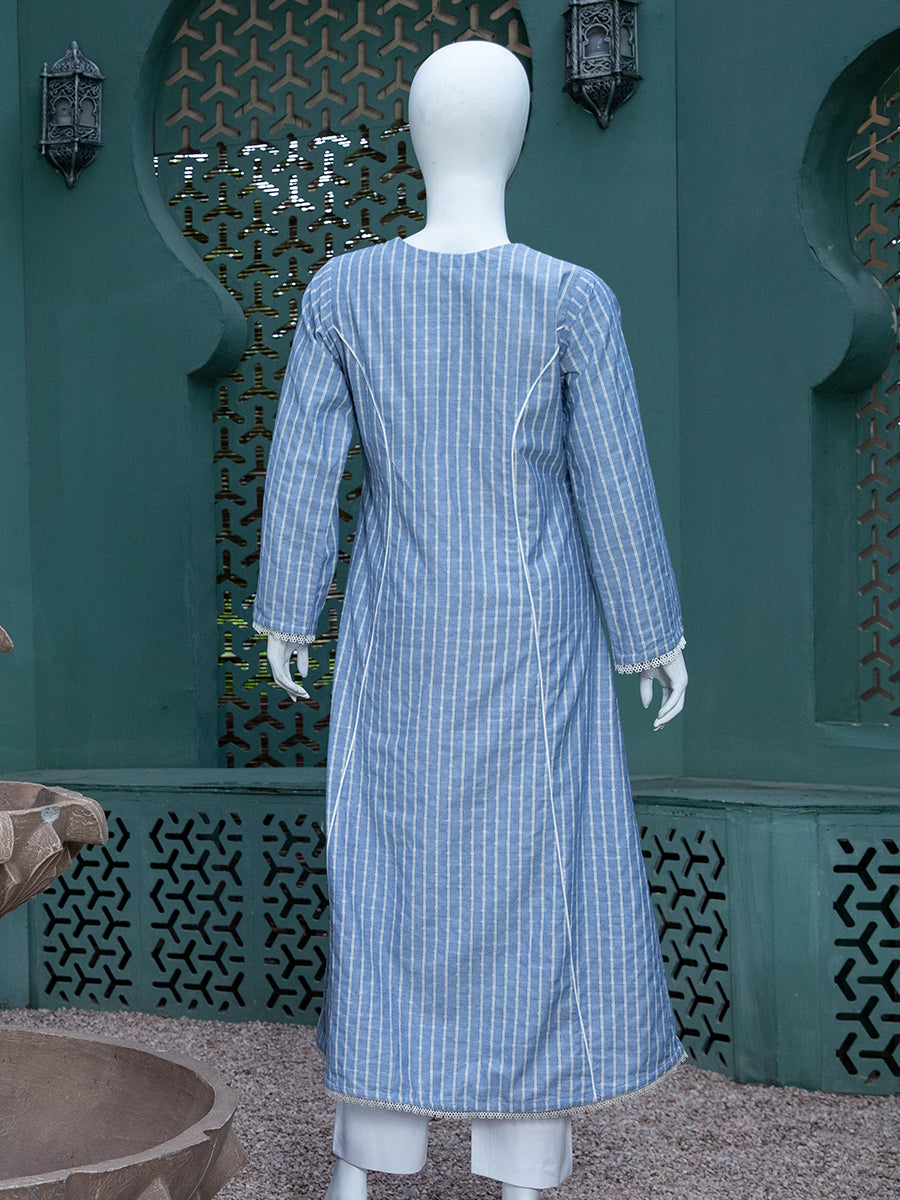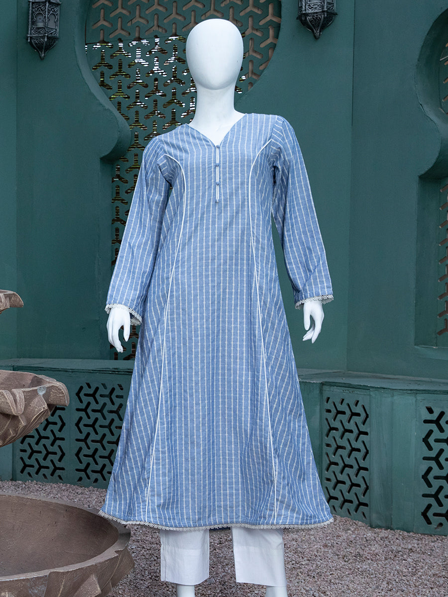 This single piece of summers collection is one of its own kinds, always adding the sober look you need for a perfect daily look. The buttons and lace is adds into the minimal design that radiates calmness in hot summers. Shop this shirt piece and upgrade your living style.