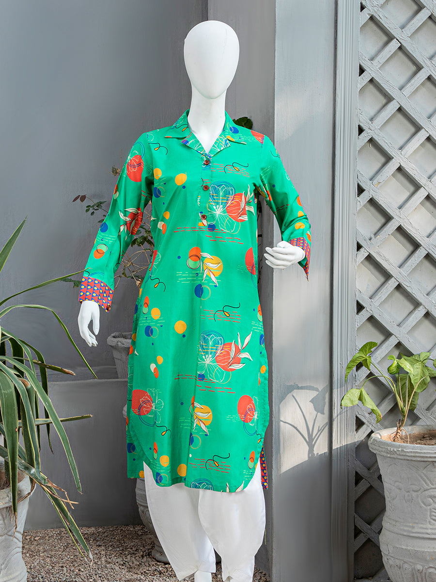 Add funky colors to your wardrobe and make your summers fun and exciting. ECS brings you just the right long shirt with bright colors to make your daily wear exceptional this season. With soft fabric and pretty design, this is shirt is a must, so buy now and let summers be amusing.