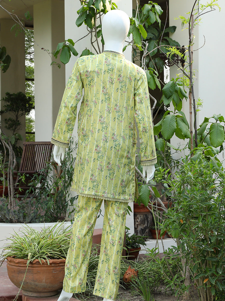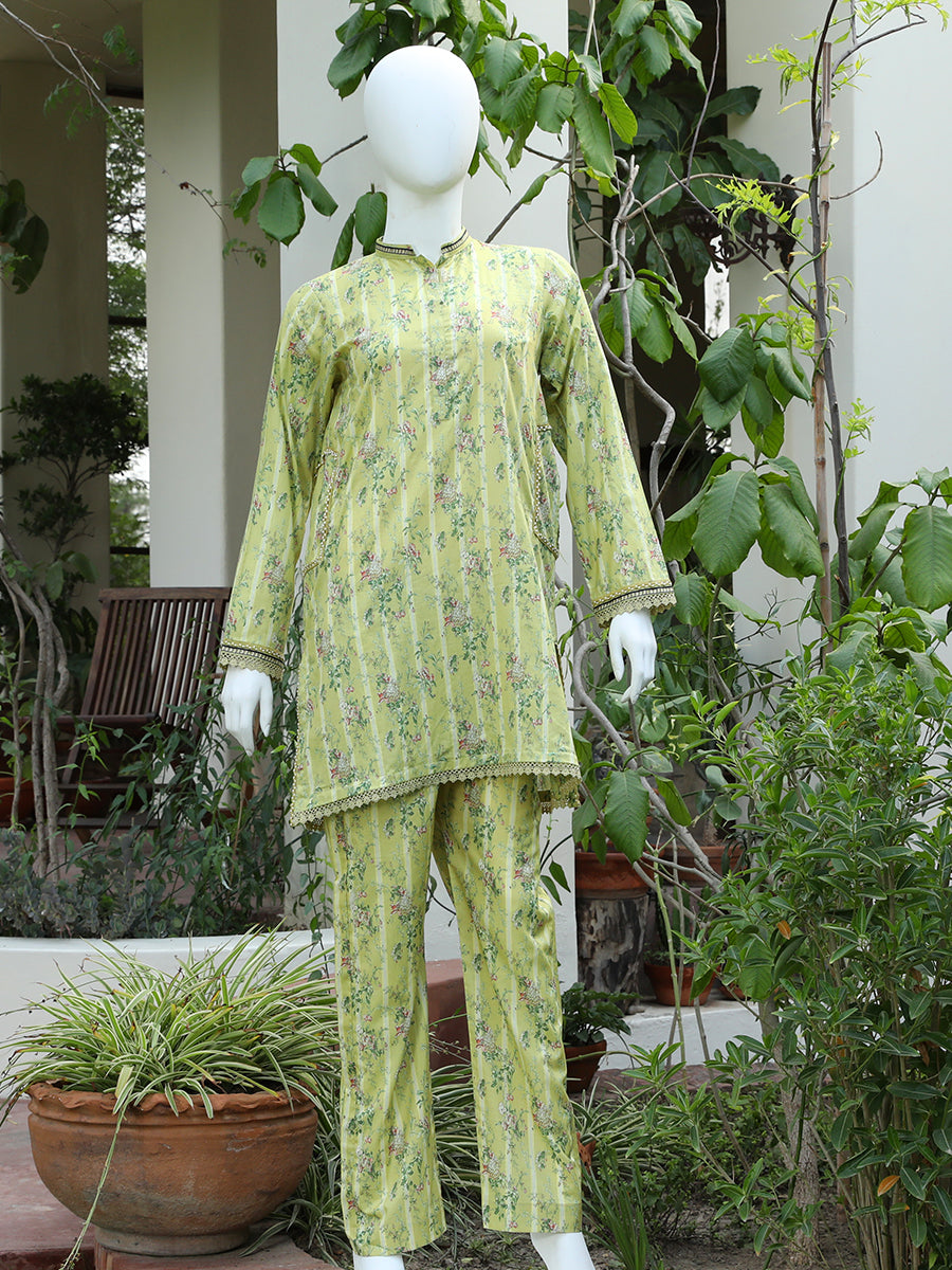 Elevate your casual and daily wear collection with our stylish two-piece set. The short-length kurta, crafted from lightweight and breathable lawn fabric, offers a comfortable and trendy fit. The trousers, tailored from high-quality cambric fabric, ensure a flattering look. Both pieces feature a beautiful floral design in captivating digital prints, adding a touch of elegance and modernity to your ensemble. Embrace the effortless charm of our digital printed two-piece set, perfect for enhancing your casual wardrobe with a fashionable flair. Experience comfort and style with our versatile collection.