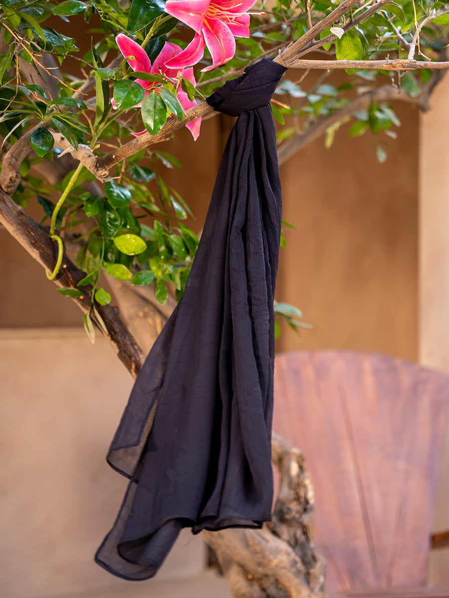 This elegant black head covering offers timeless sophistication and versatile appeal. Its lightweight fabric drapes beautifully, providing a delicate and refined finish to any outfit. A quintessential accessory, it's perfect for adding a touch of classic grace, ensuring you're comfortably chic for both formal and casual occasions.