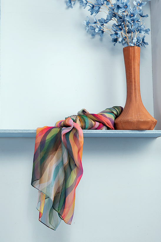 Rainbow colors have spilled over the fabric, lightening up the golden autumn with vibrant colors. You can wear it with your winter outfits and enjoy the changing sky....